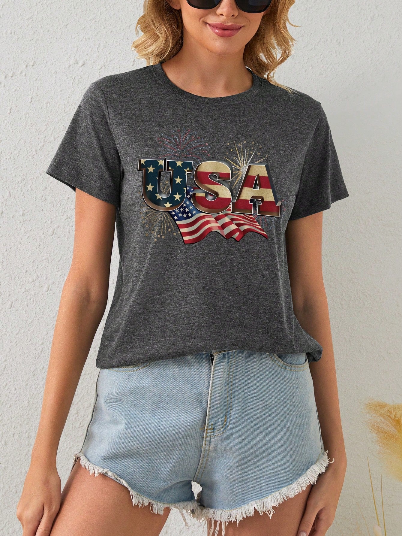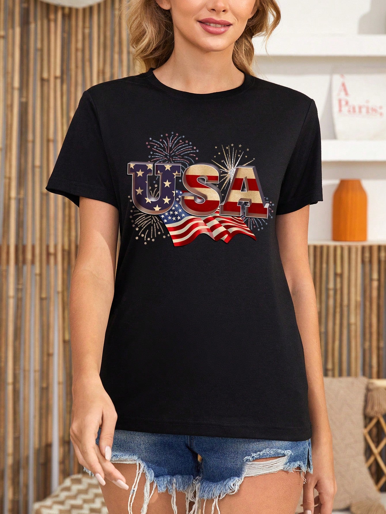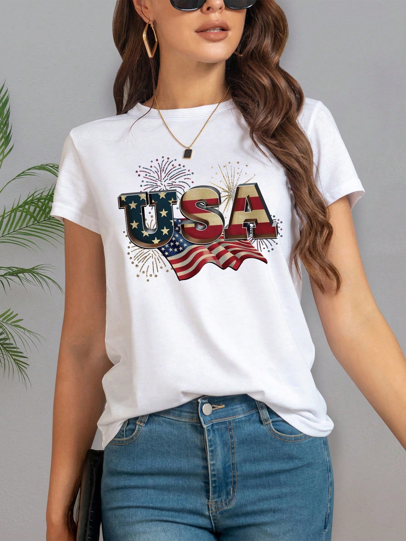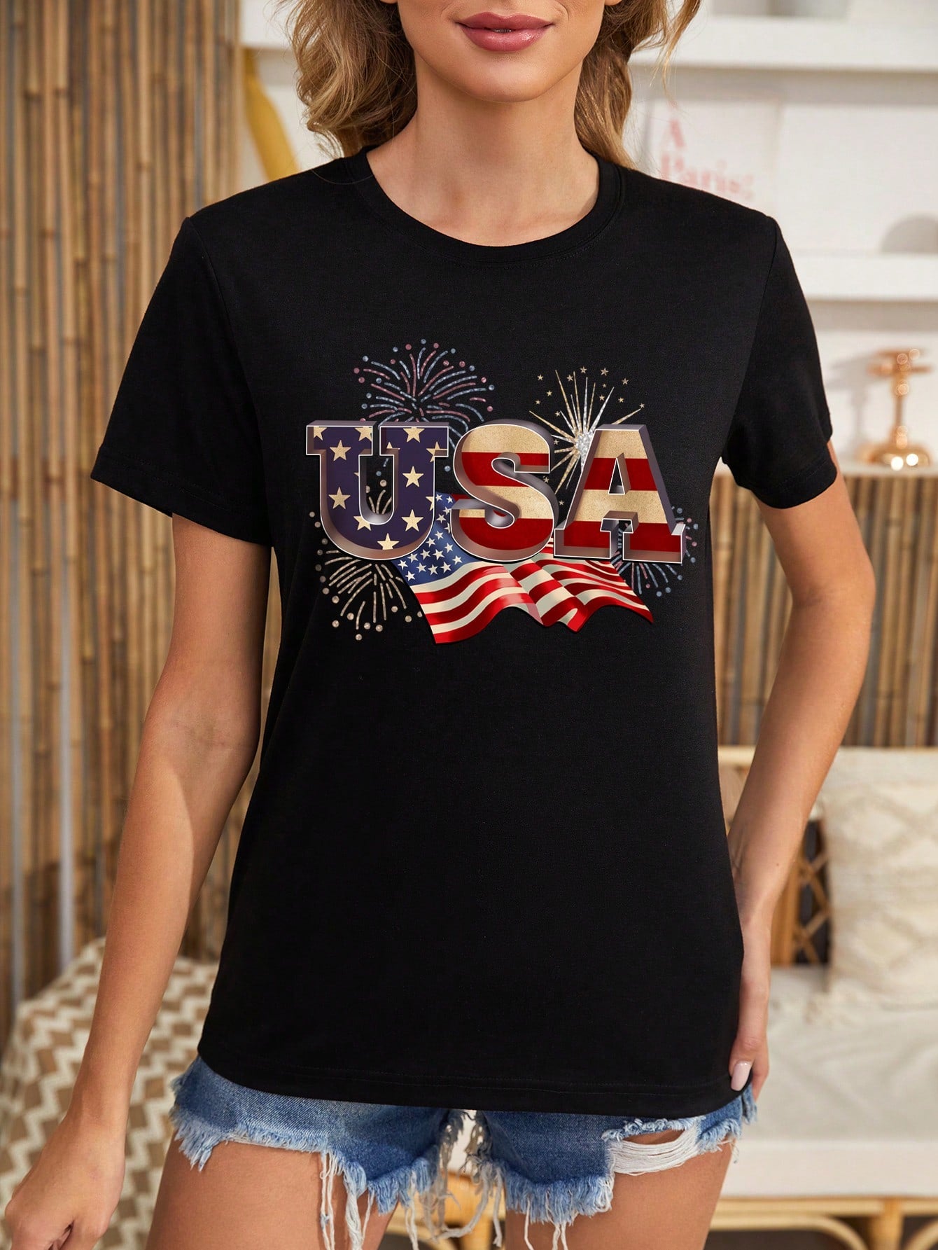 USA Pride: Fashionable Summer Short Sleeve T-Shirt for Women