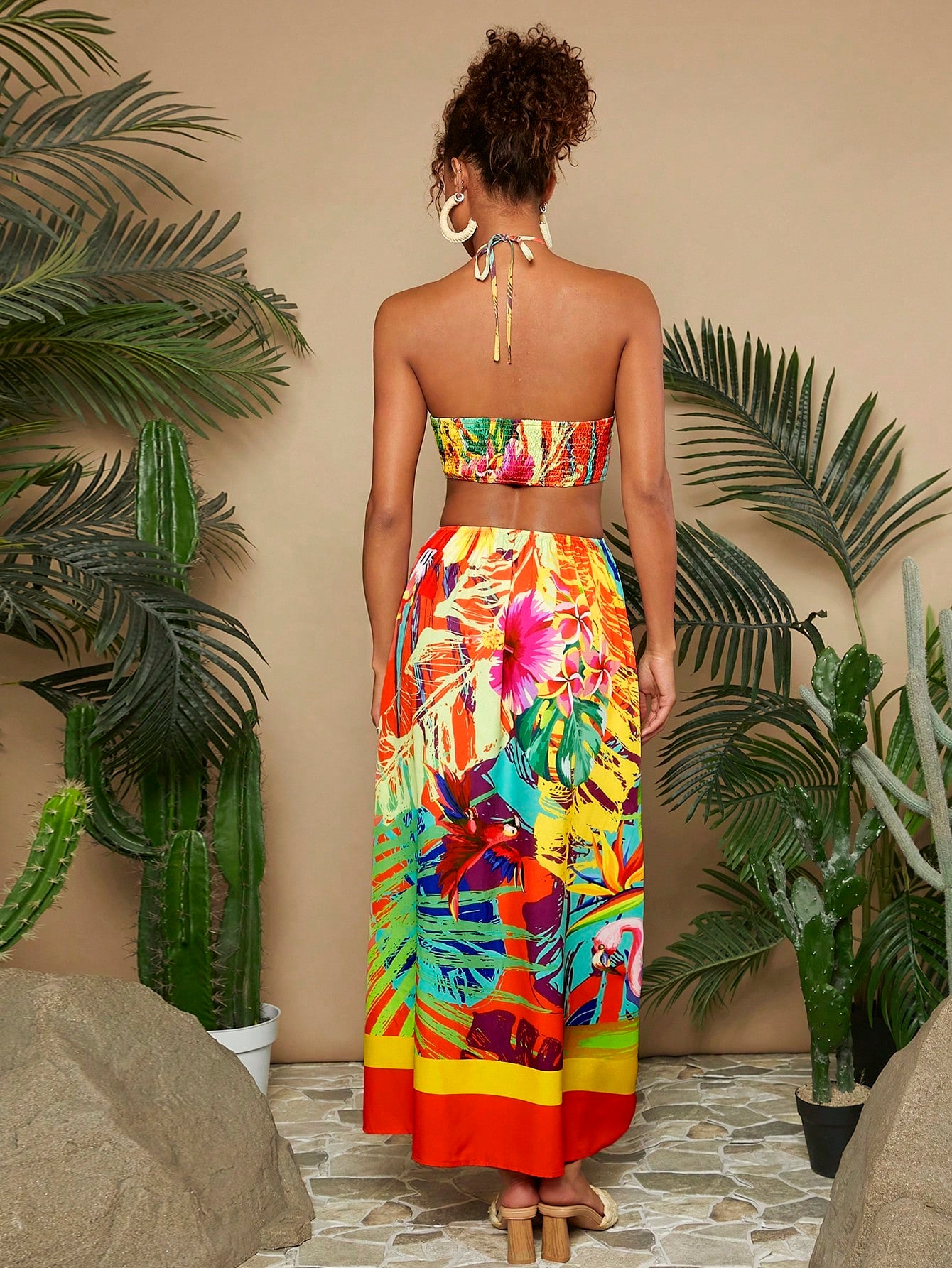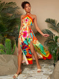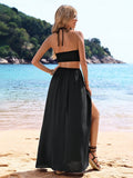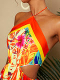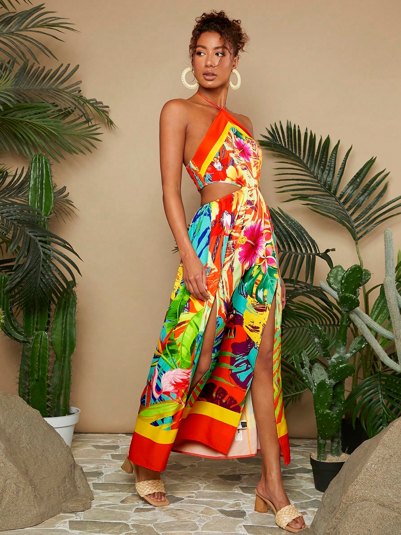 Vacation Chic: Hollow Out Halter Neck Waist Cut Dress for Women