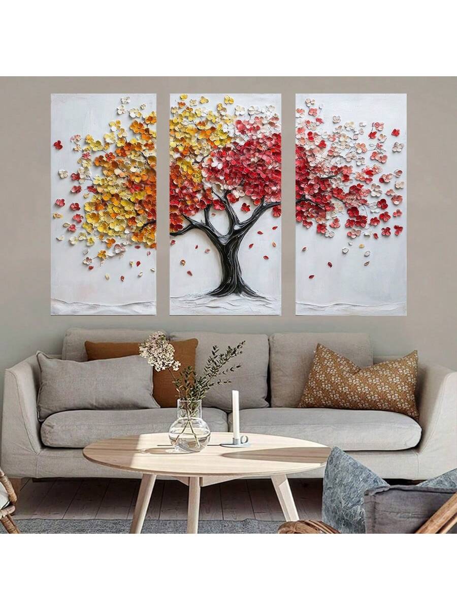 Enhance your home decor with this vibrant 3-piece tree landscape wall art set. Featuring modern knife painting techniques, this set adds a touch of elegance to any room. Transform your walls into a beautiful landscape and create a calming atmosphere with this expertly crafted set.