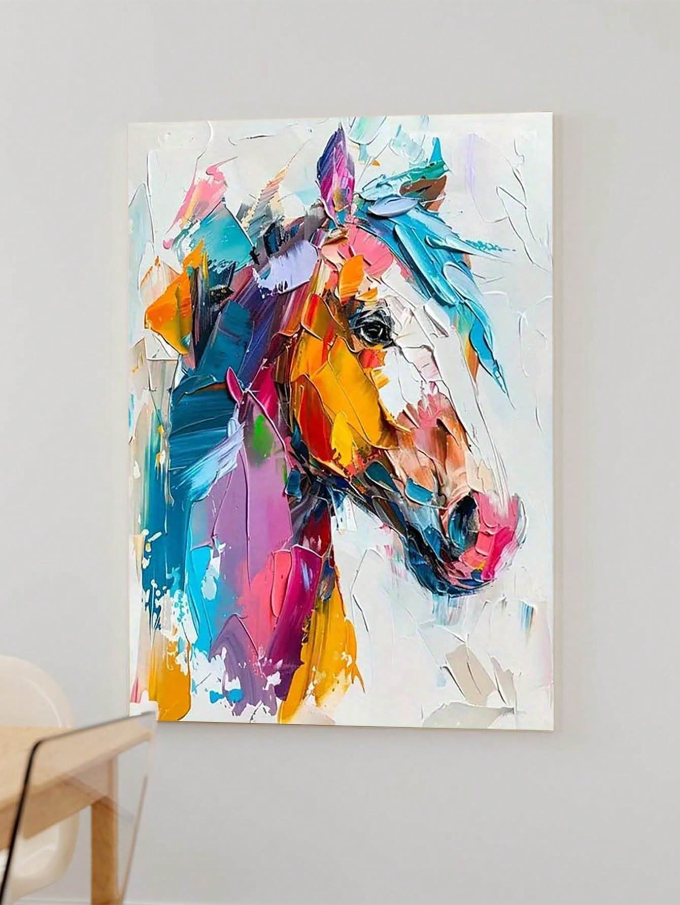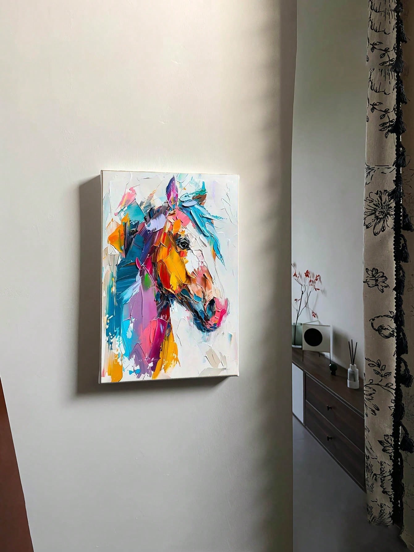 Vibrant Abstract Horse Portrait Canvas Art - Energize Your Space with Colorful Brushstrokes (No Frame)