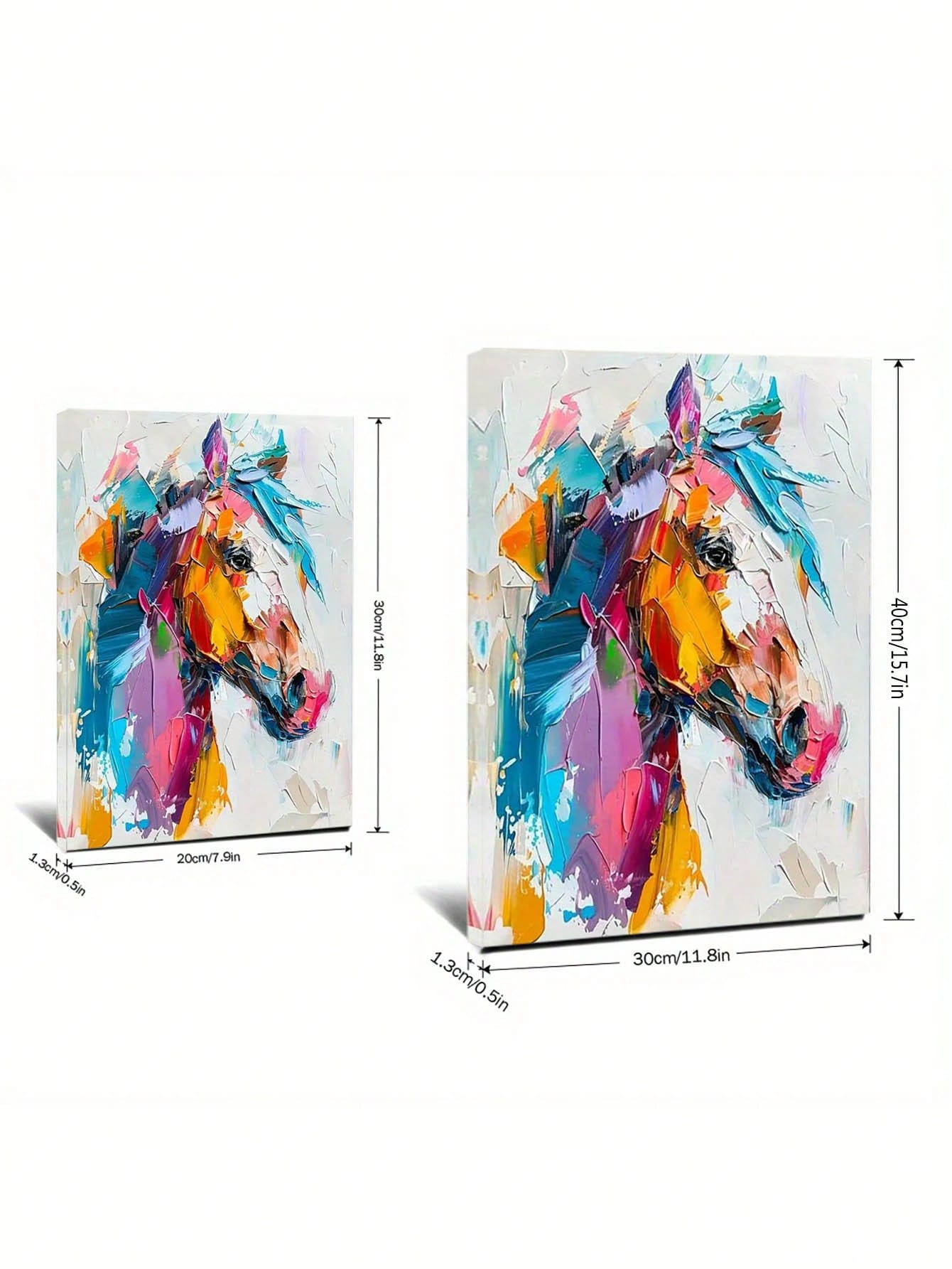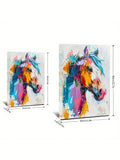 Spruce up your space with this vibrant abstract horse portrait canvas art. With colorful brushstrokes, this piece will add energy and life to any room. (Note: No frame included.)