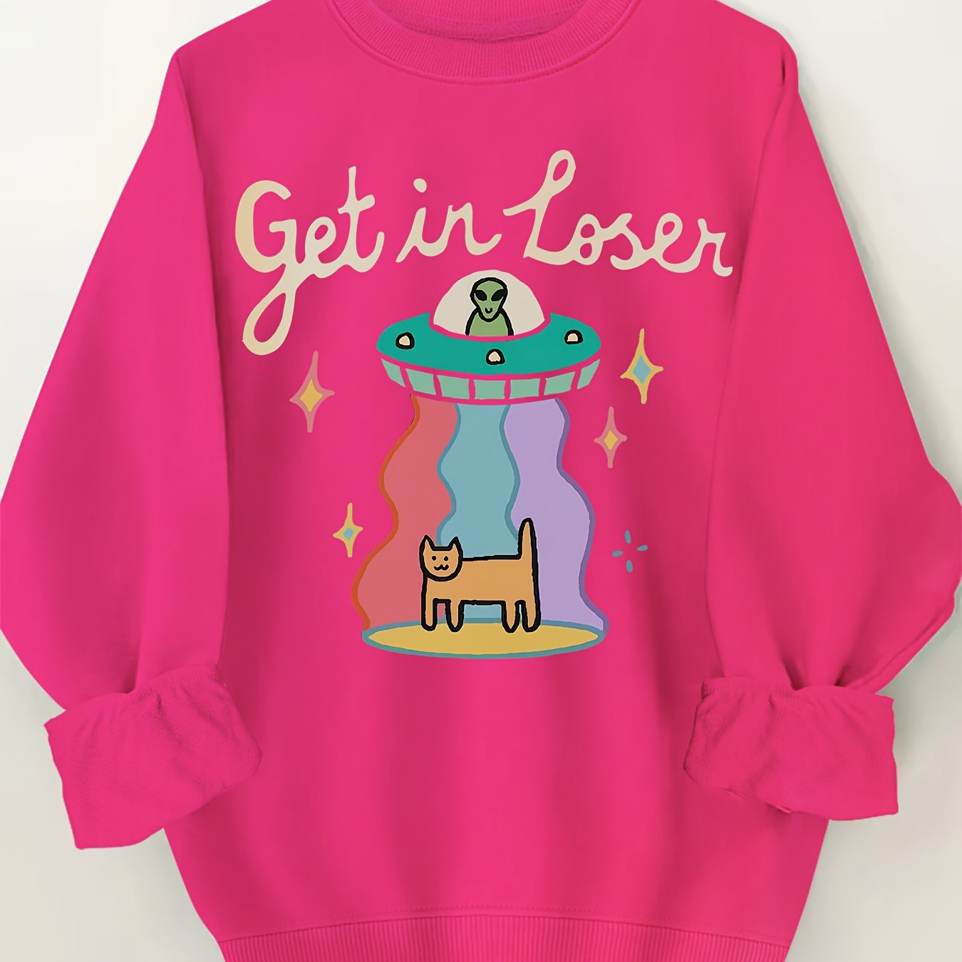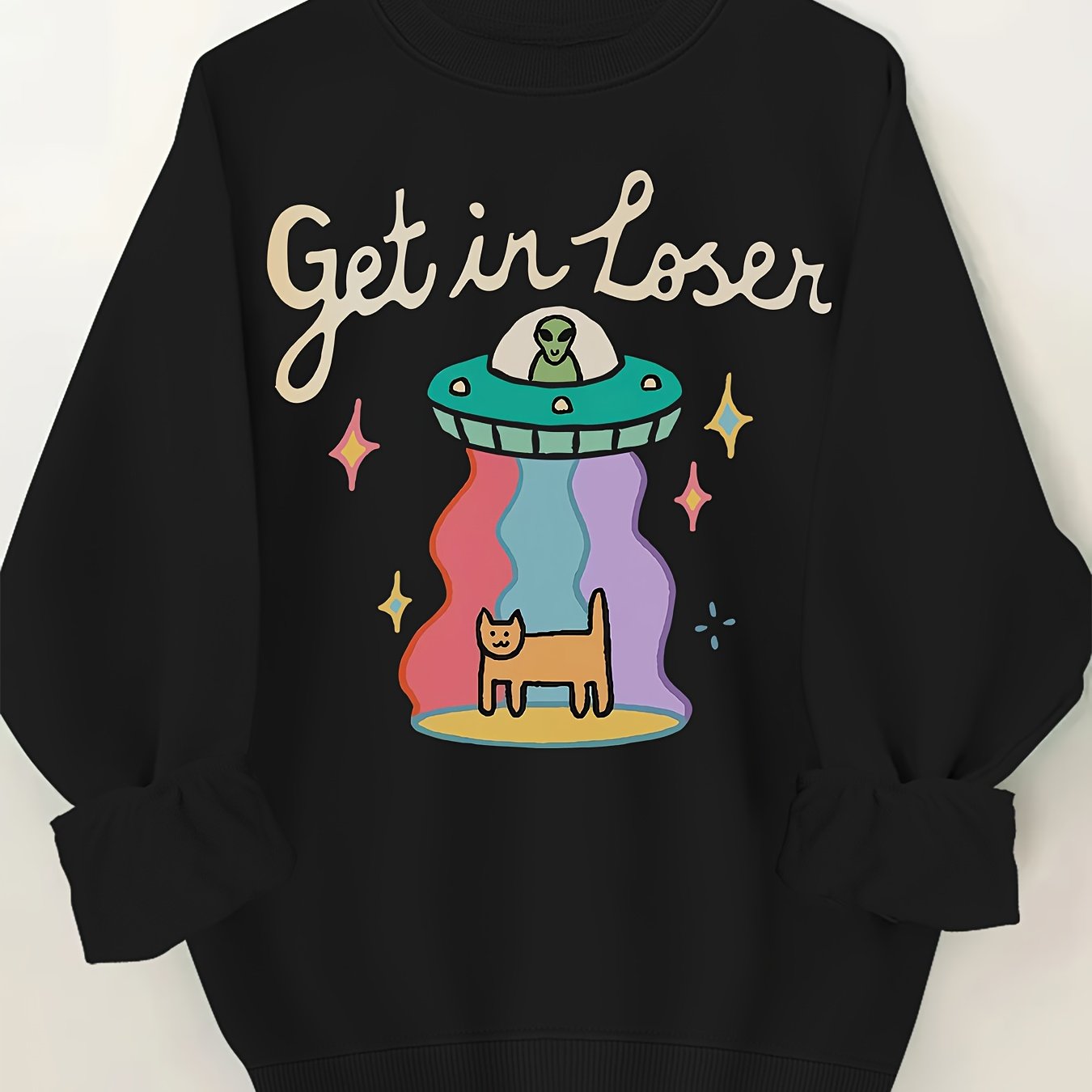 Vibrant Alien & Letter Print Sweatshirt - Soft, Casual Crew Neck Long Sleeve Design, Relaxed Fit, Women's Fashion Clothing for Everyday Wear)