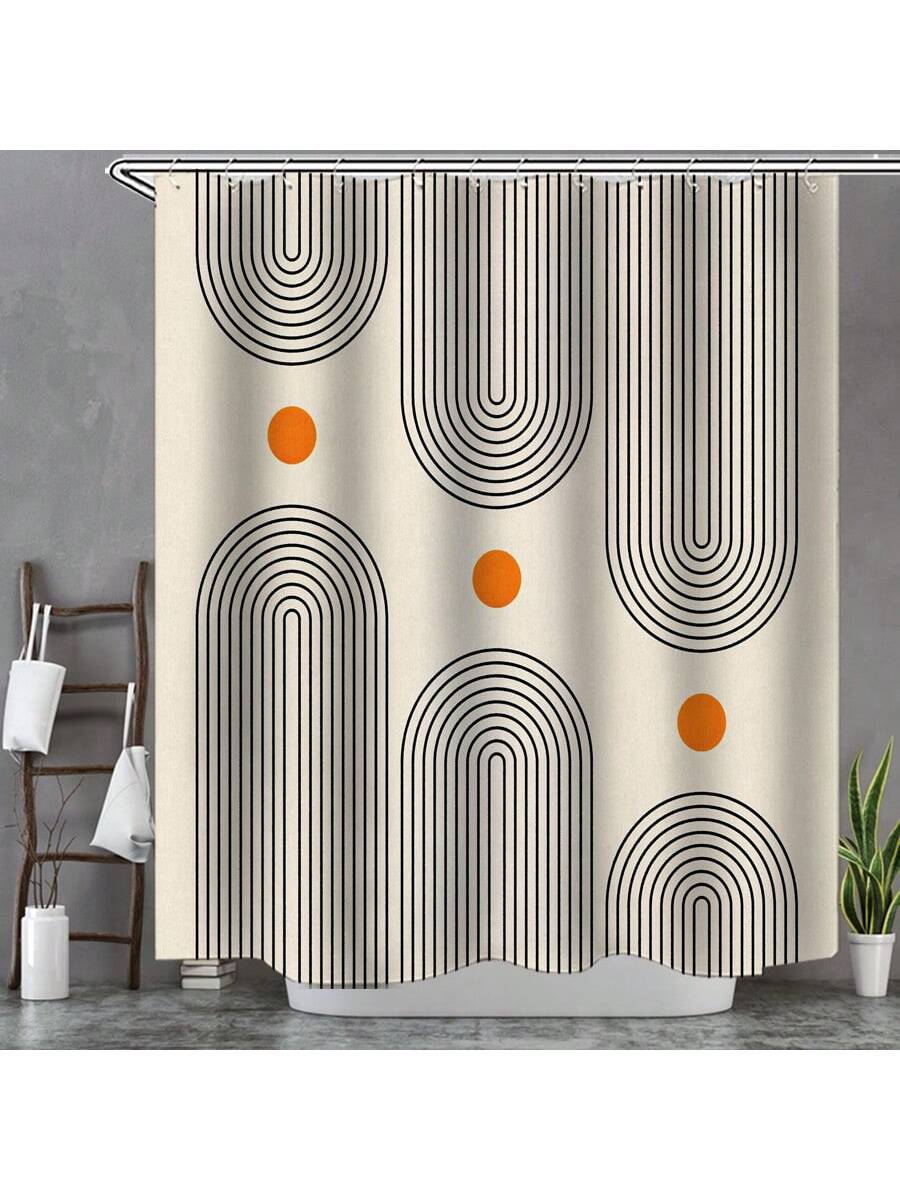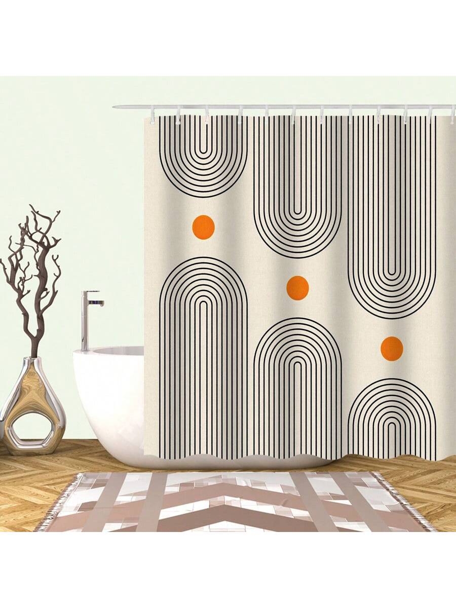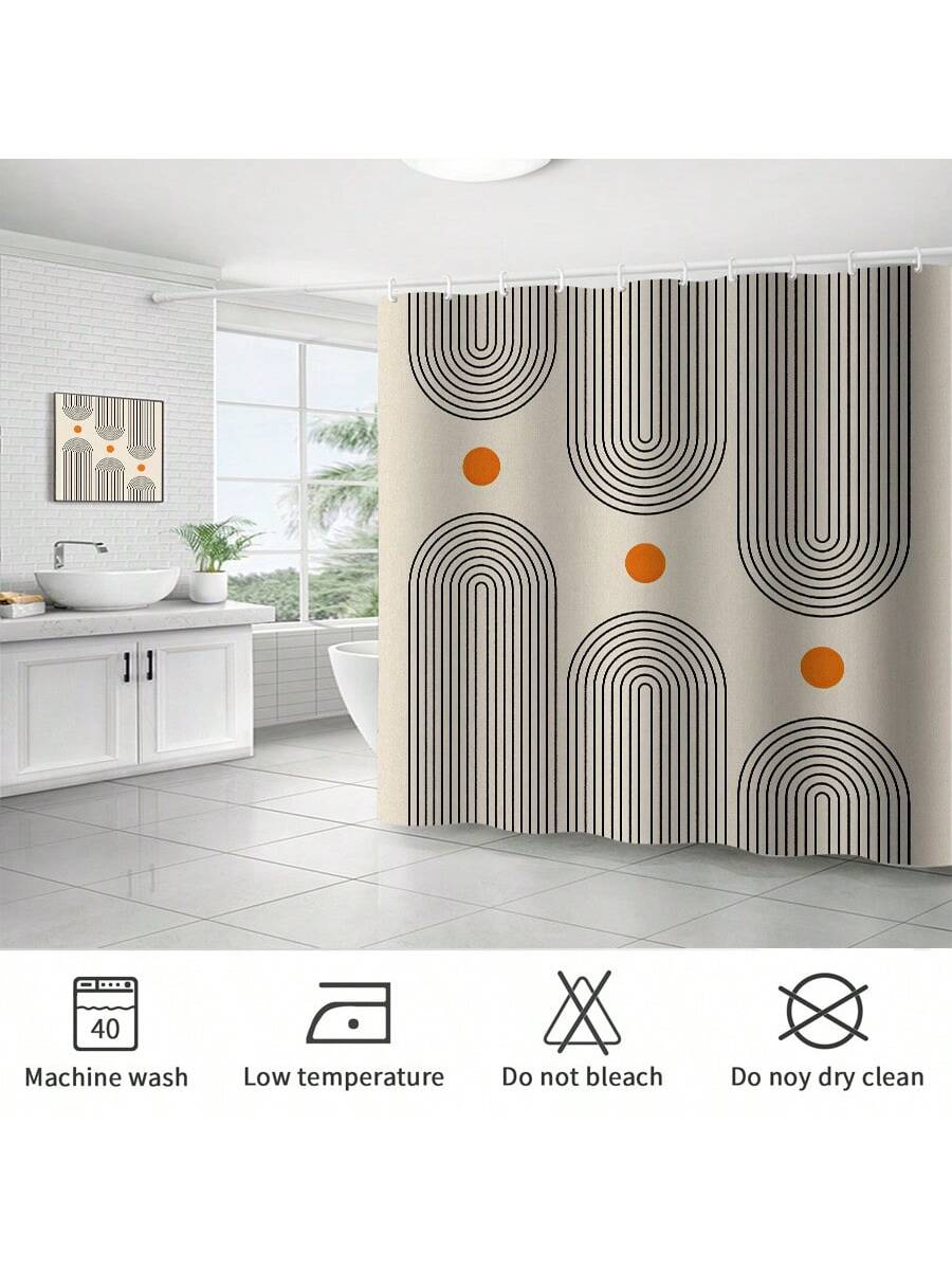 Vibrant Geometry Print Waterproof Shower Curtain with 12 C Hooks - Fade-Resistant and Moisture-Blocking Design