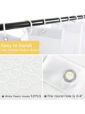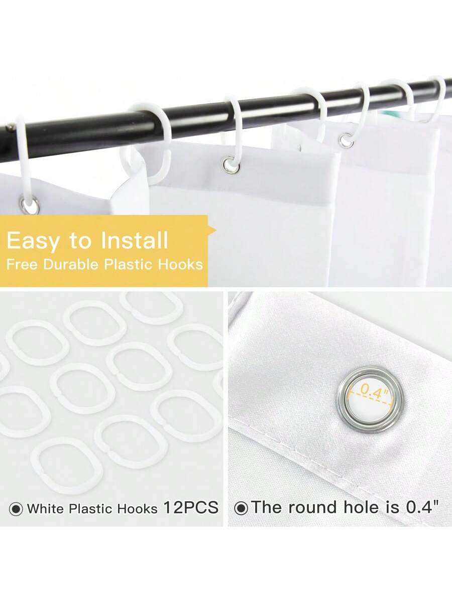 shower curtain. Made with fade-resistant and moisture-blocking materials, this curtain will maintain its vibrant design while keeping your bathroom dry. The 12 included C hooks make for easy installation."