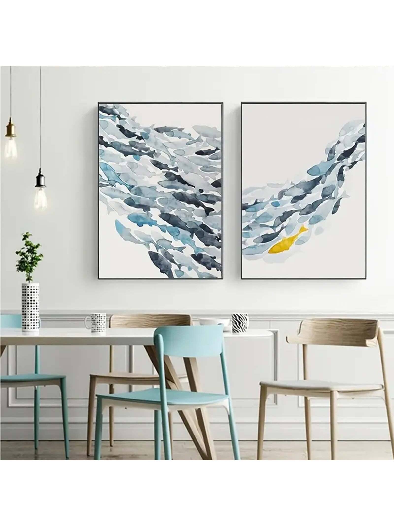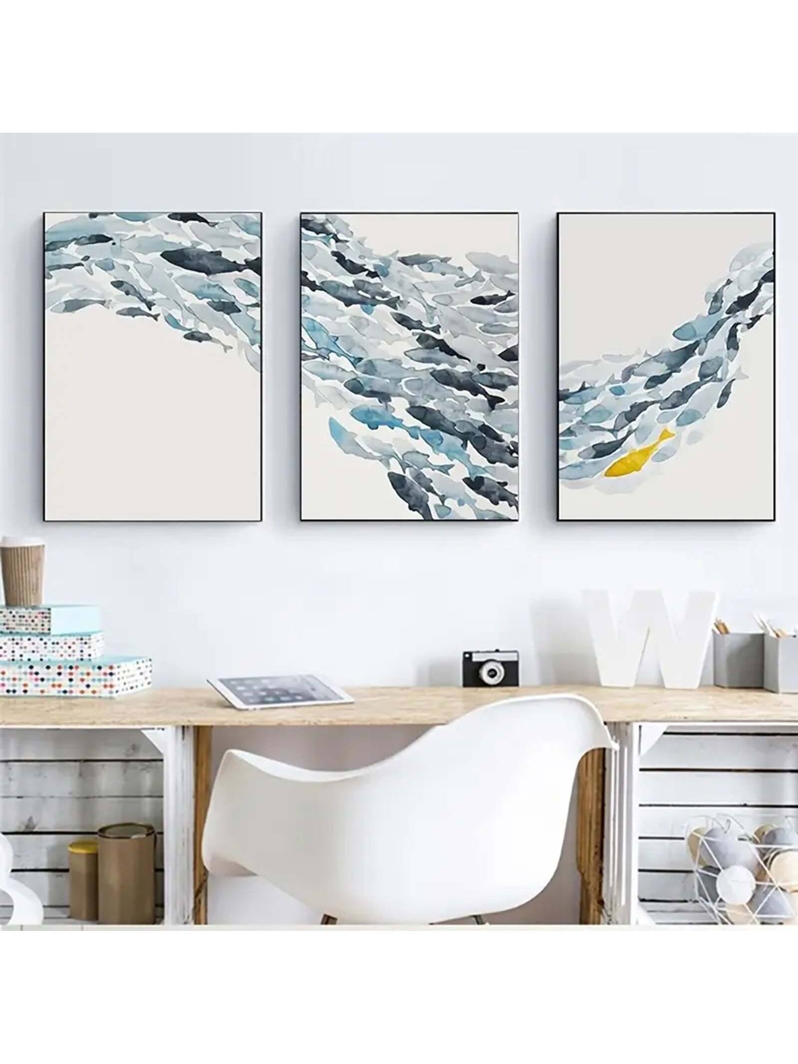 Vibrant Watercolor Fish Trio: Unframed Canvas Wall Art Set