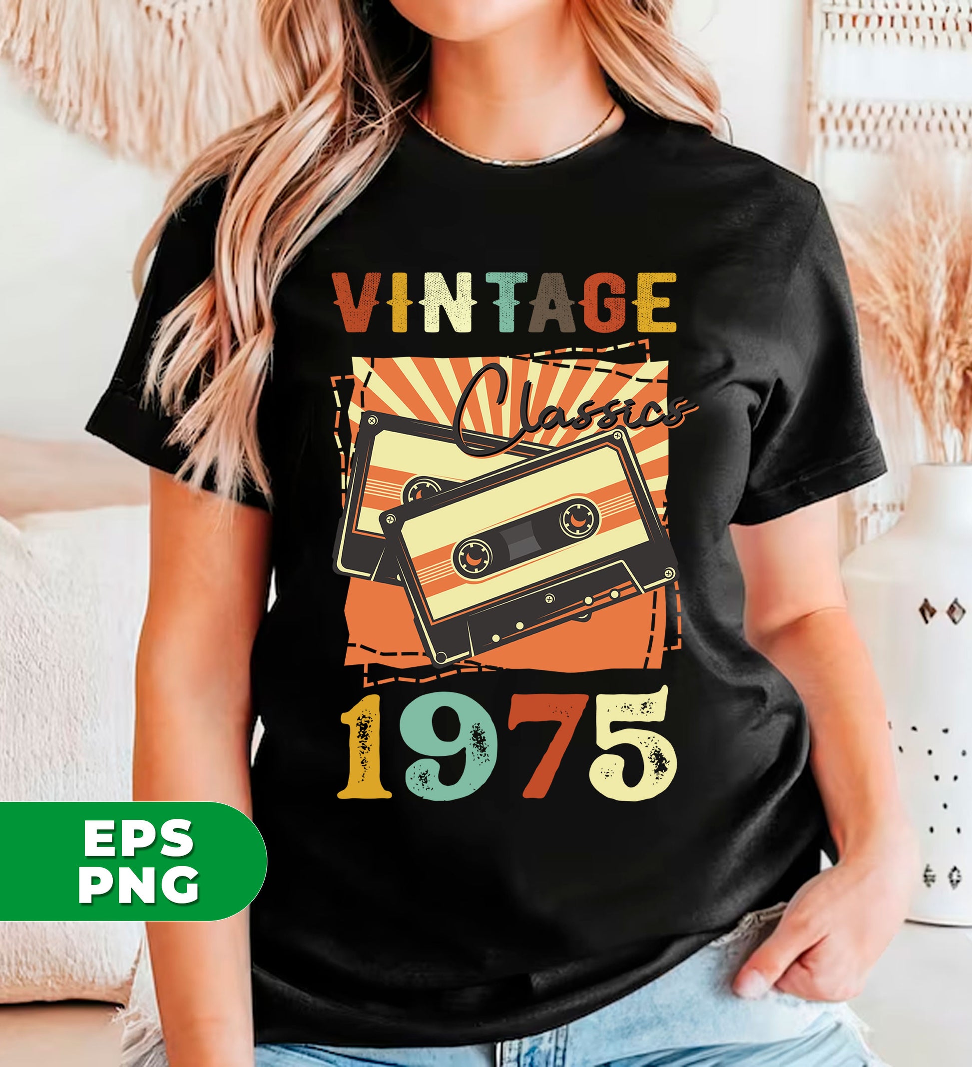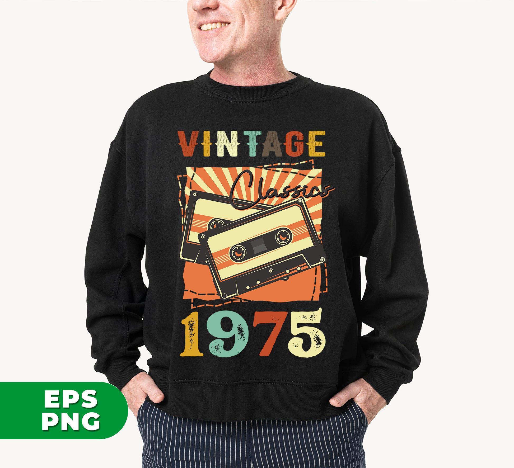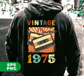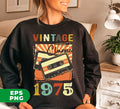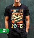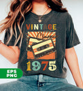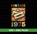 Vintage 1975, Birthday 1975 Retro, Classic 1975, Cassette 1975, Digital Files, Png Sublimation