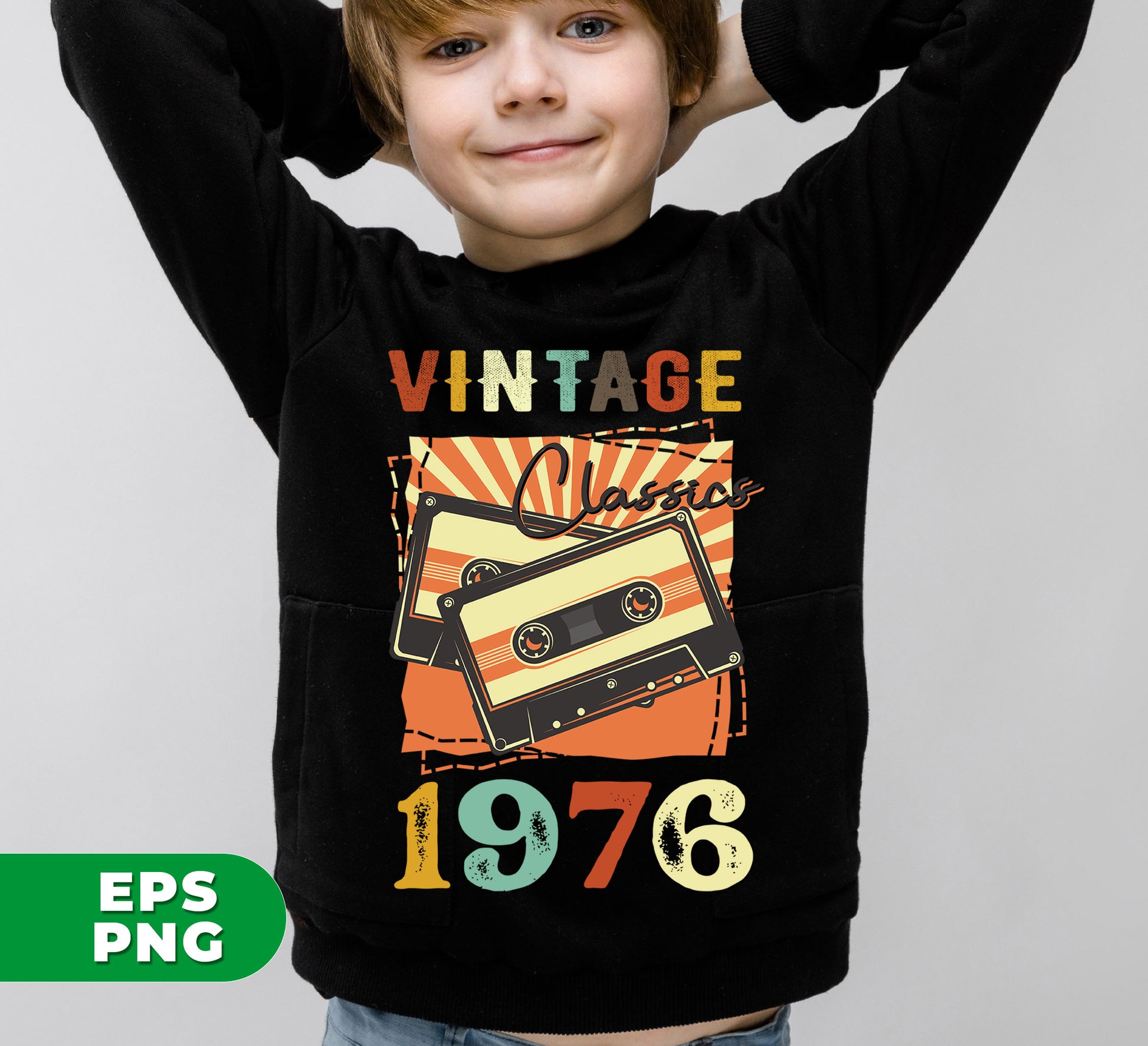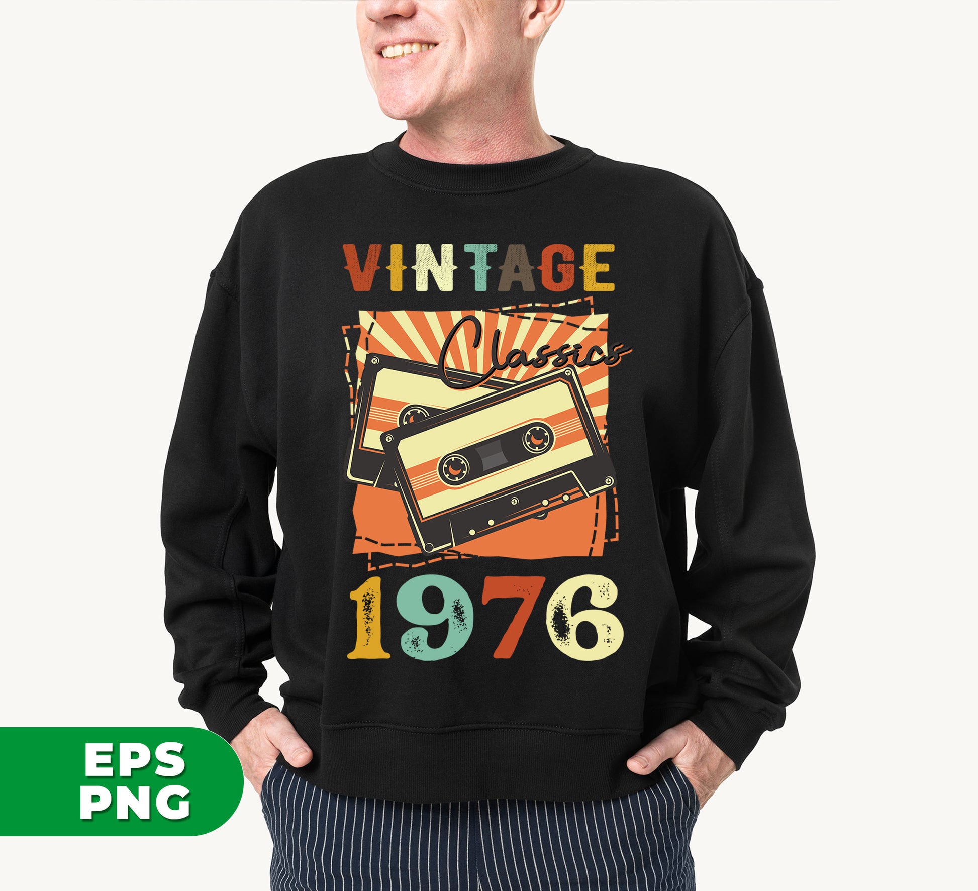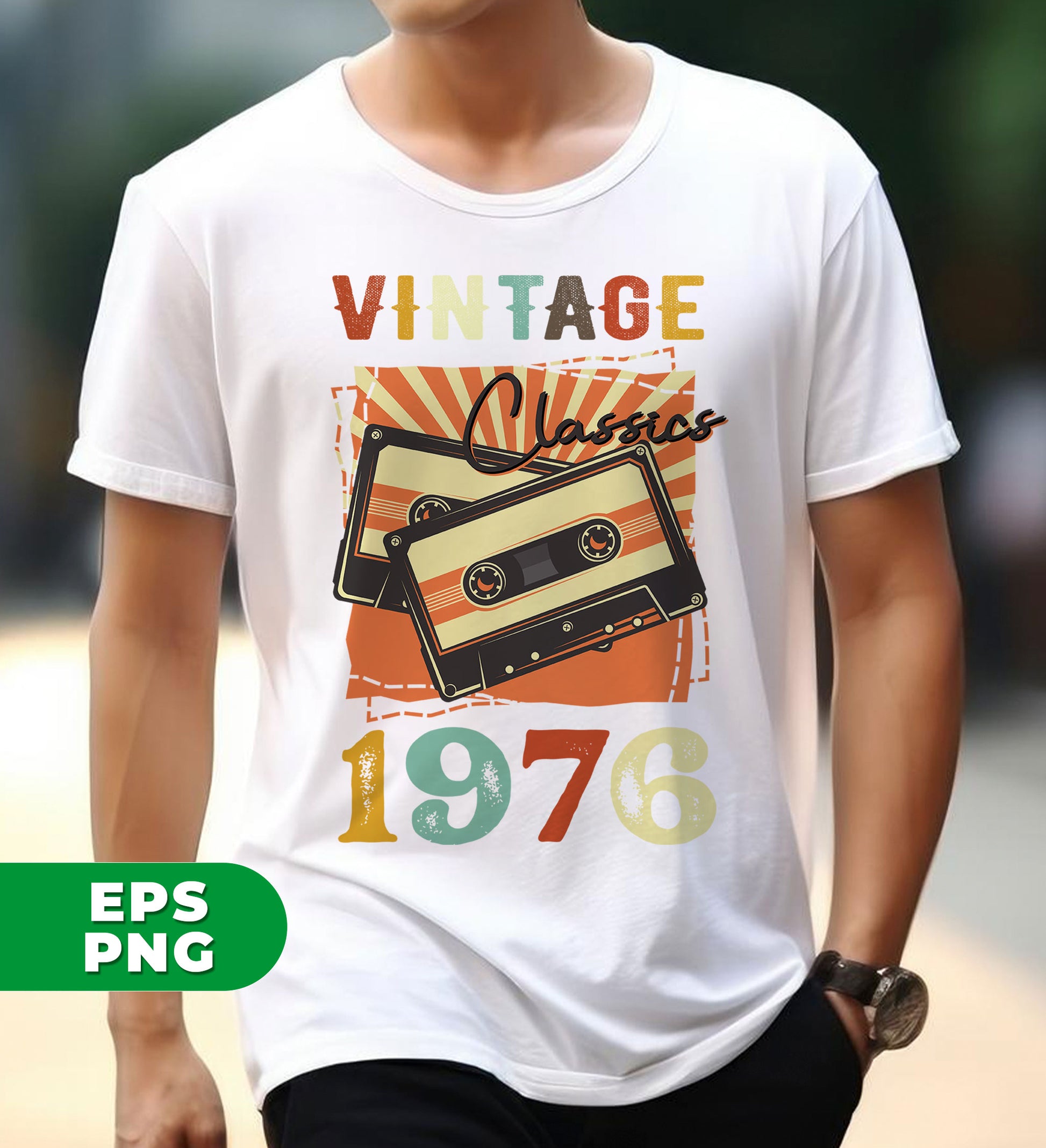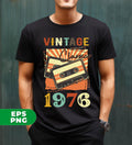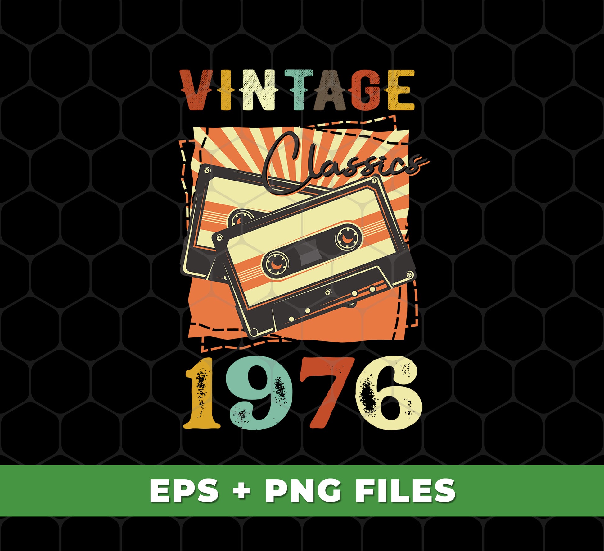 Vintage 1976, Birthday 1976 Retro, Classic 1976, Cassette 1976, Digital Files, Png Sublimation
