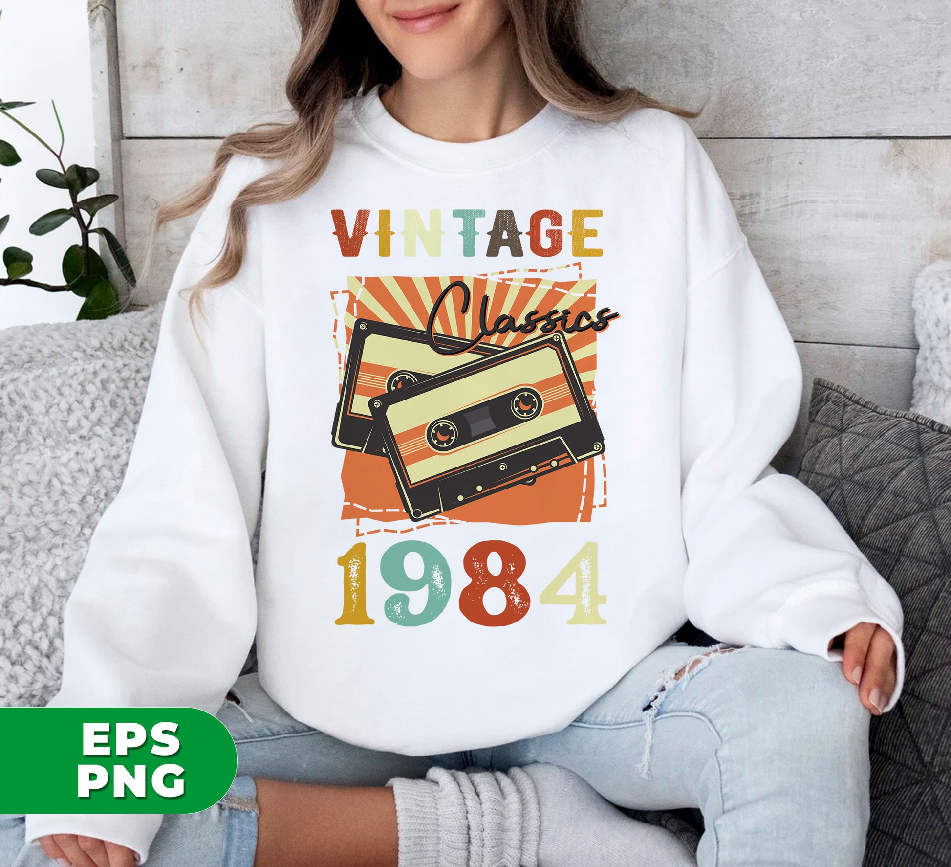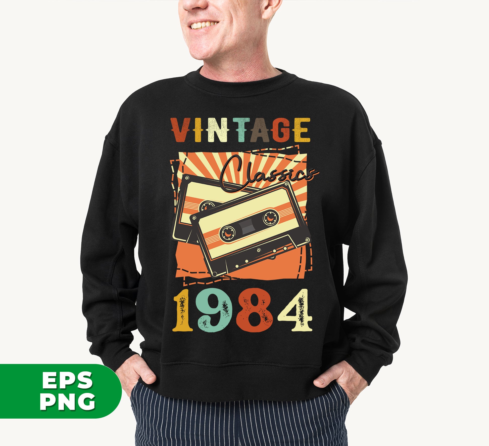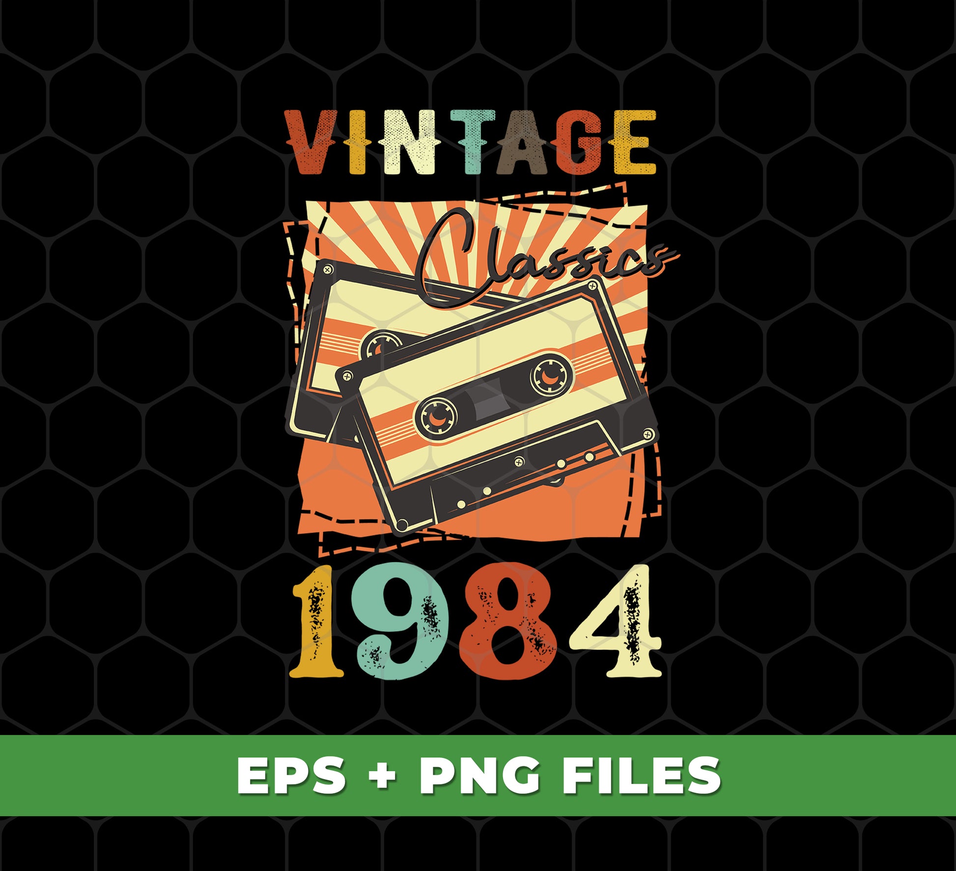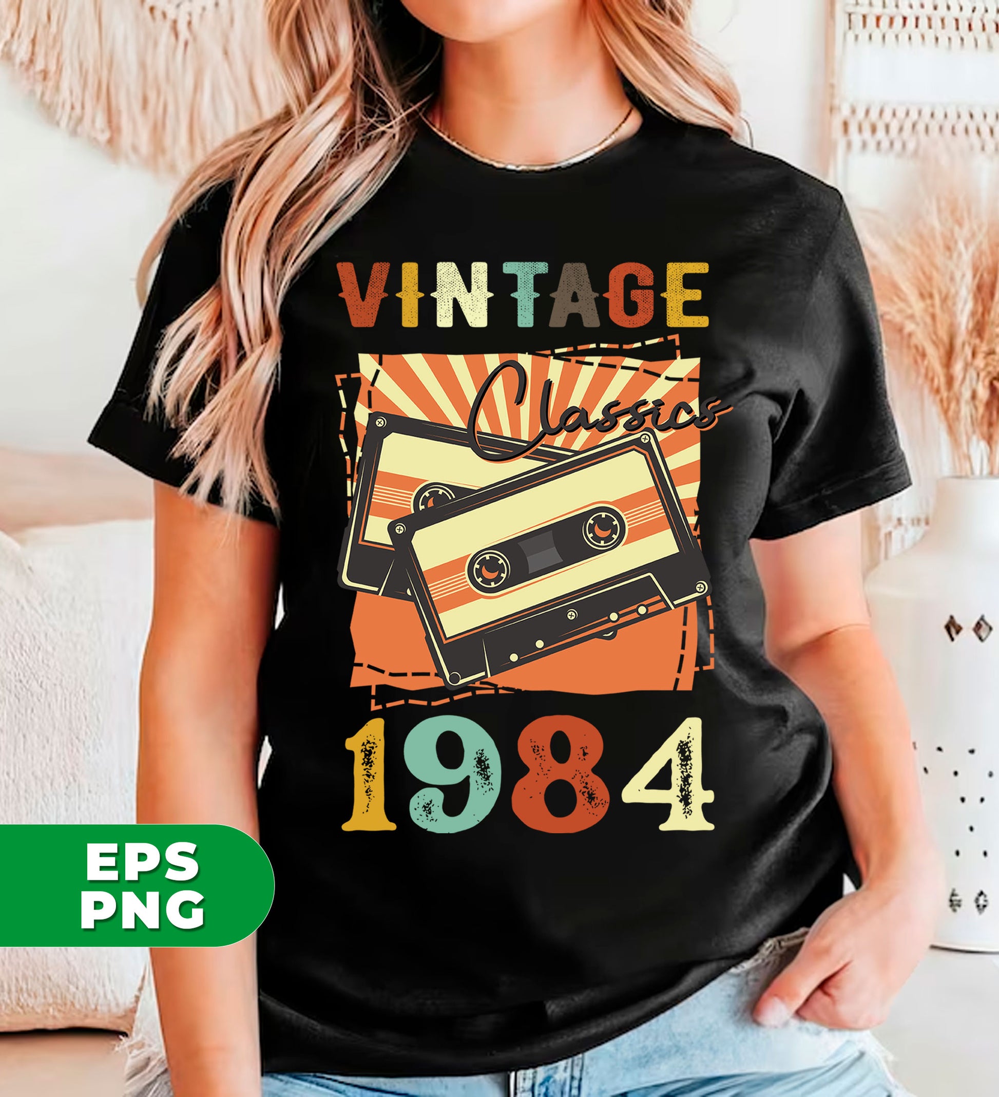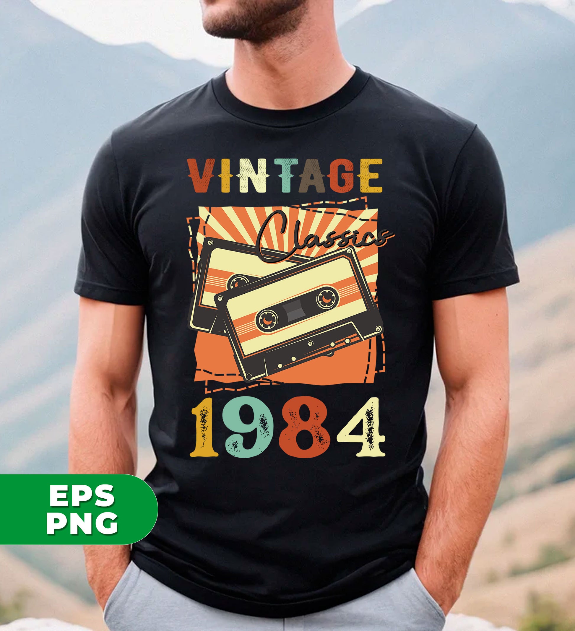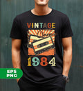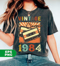 Vintage 1984, Birthday 1984 Retro, Classic 1984, Cassette 1984, Digital Files, Png Sublimation