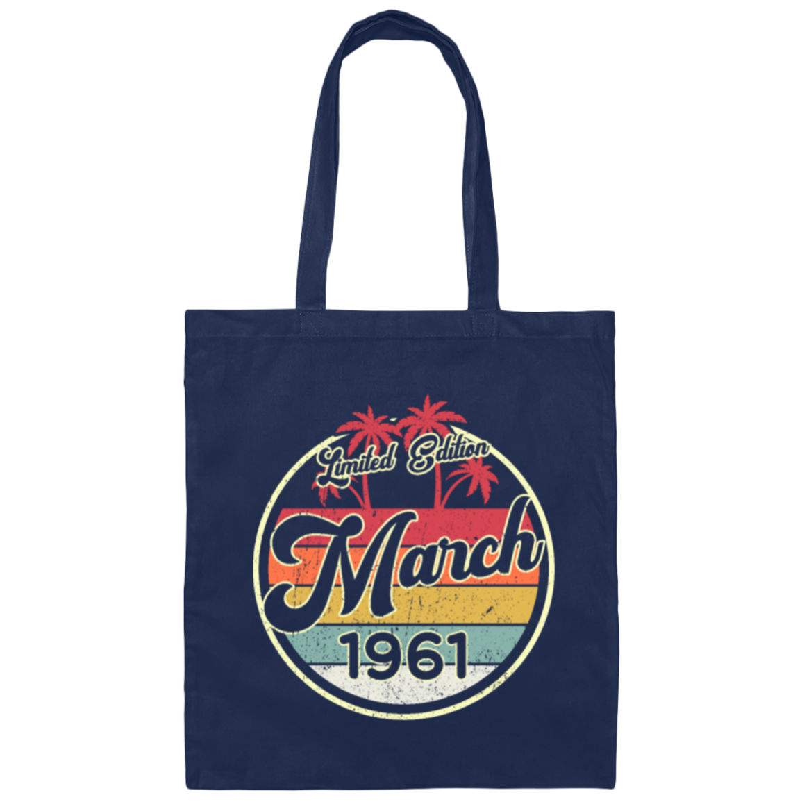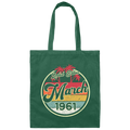 Vintage 80s March 1961 Birthday Gift Idea Canvas Tote Bag