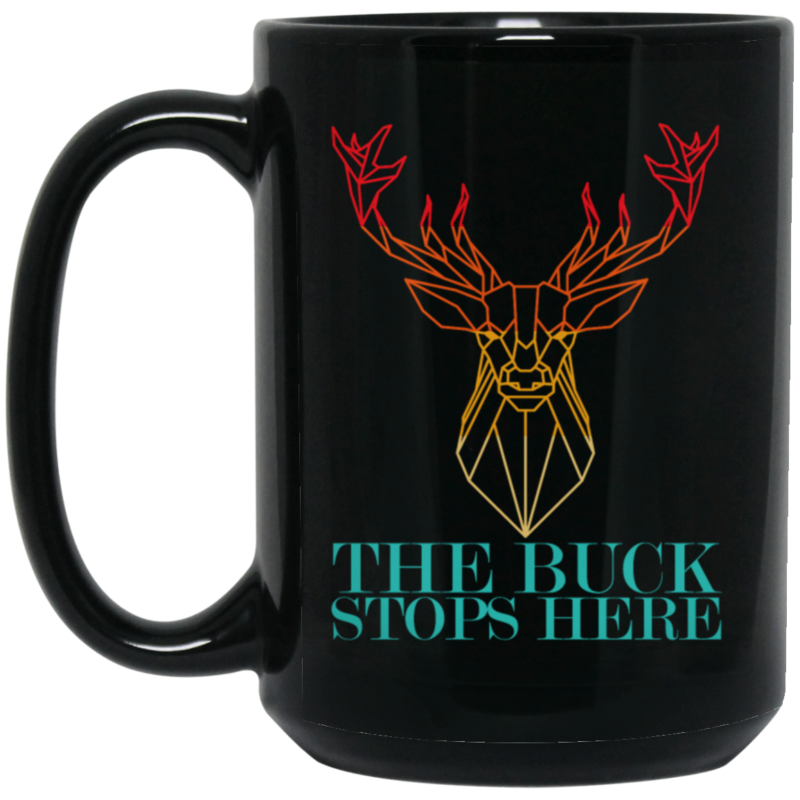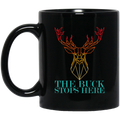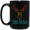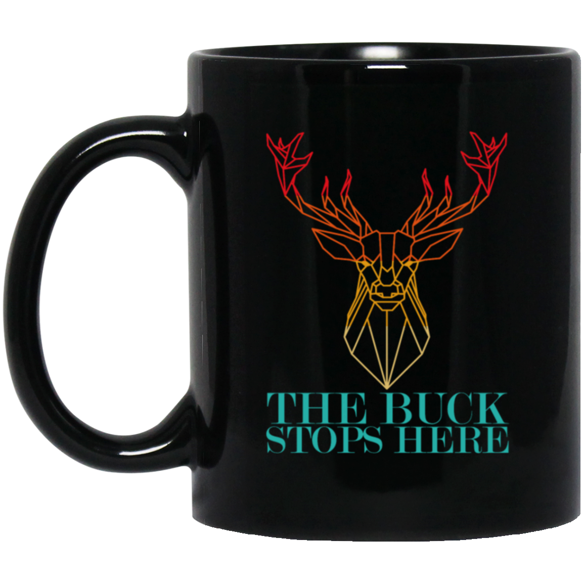 Vintage Abstract Deer Hunting, The Buck Stops Here, Deer Hunter Black Mug