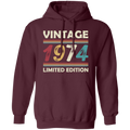 Vintage Birthday, 1974 Birthday, Retro 1974, Retro Birthday Pullover Hoodie