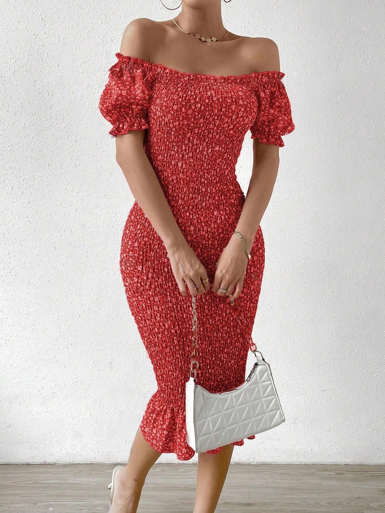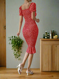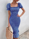 Vintage Charm: Ditsy Floral Print Puff Sleeve Ruffle Hem Dress