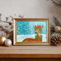 Vintage Christmas Deer Art Print, Winter Fawn with Cardinals, Snowy Forest Wildlife Illustration