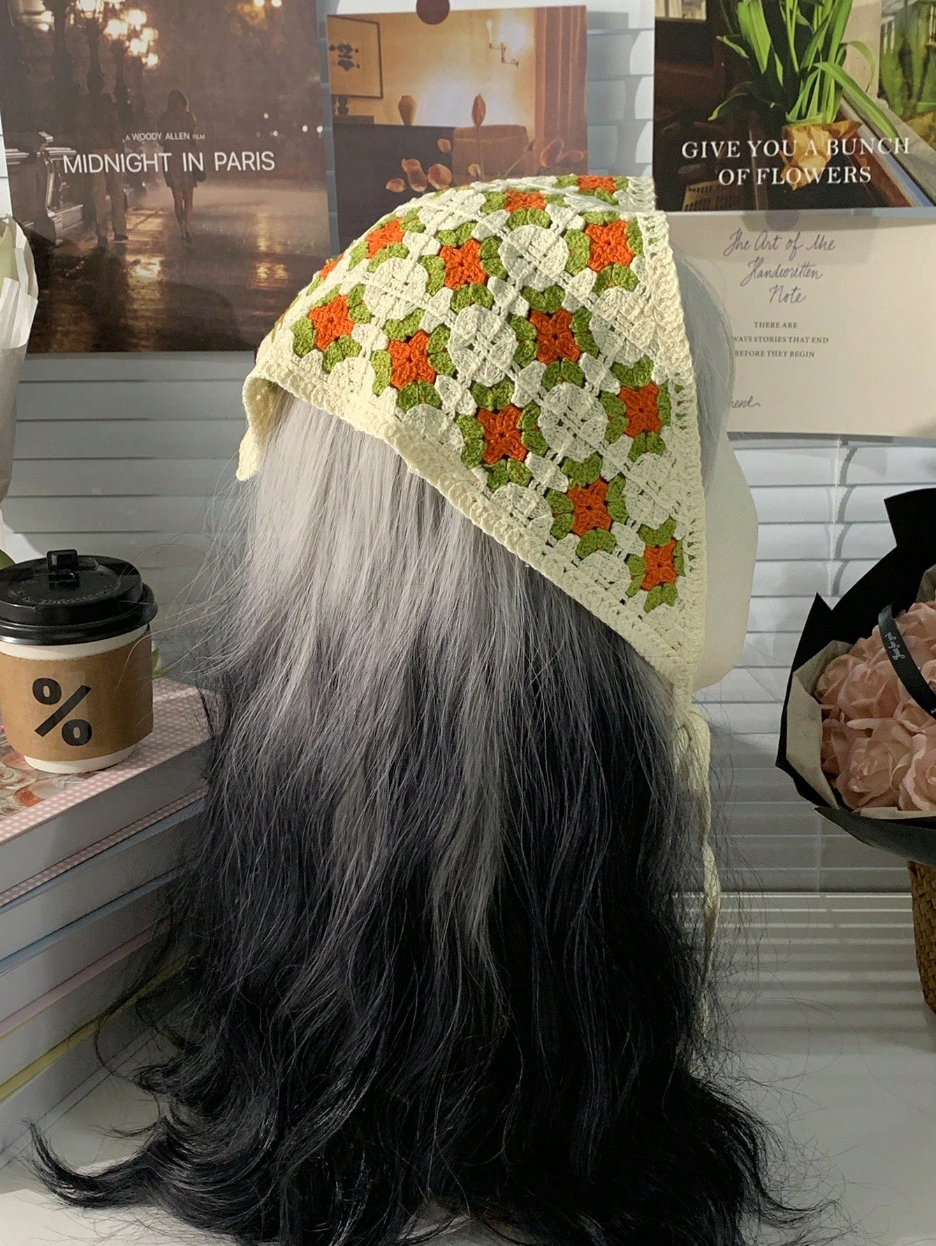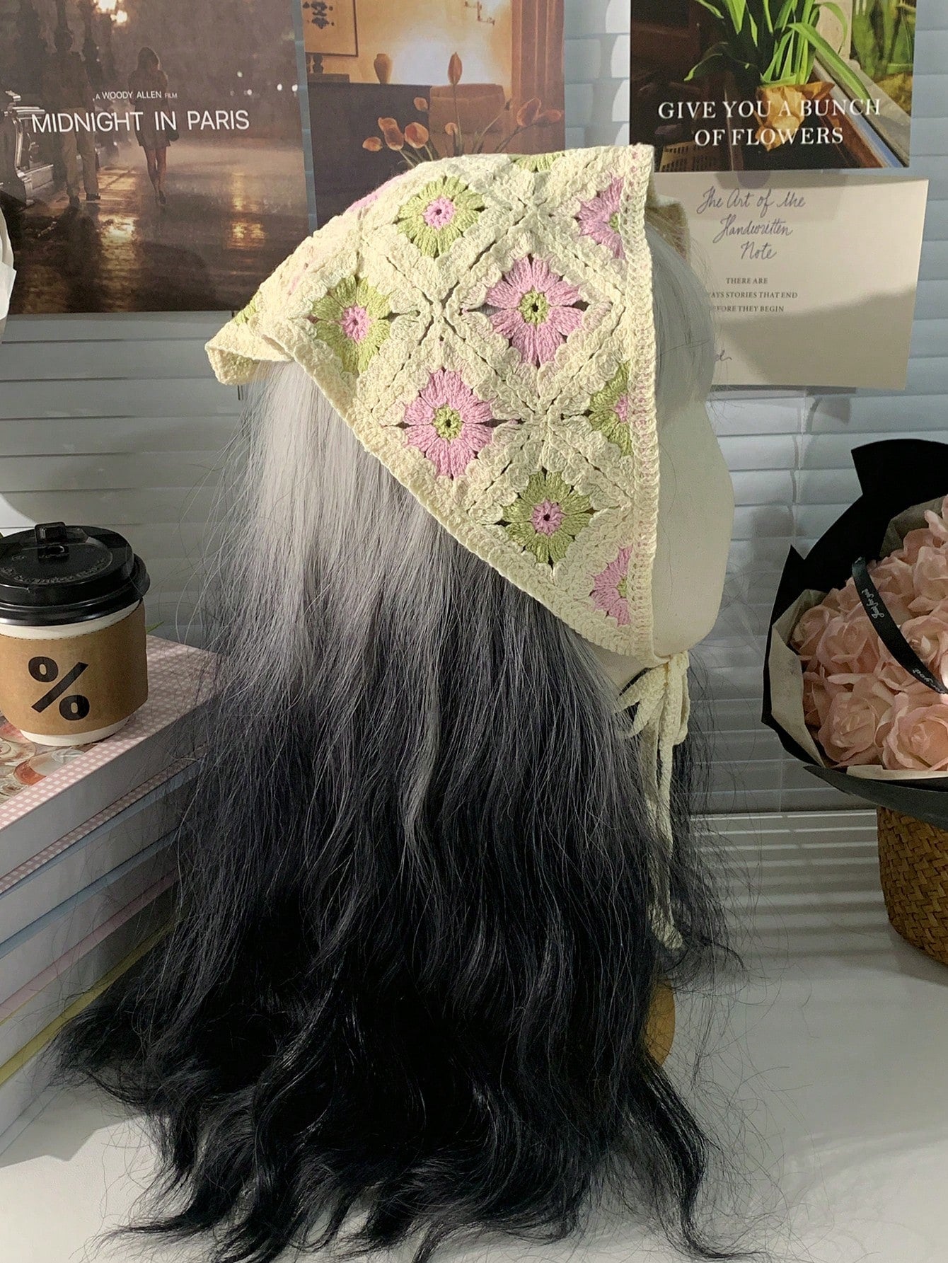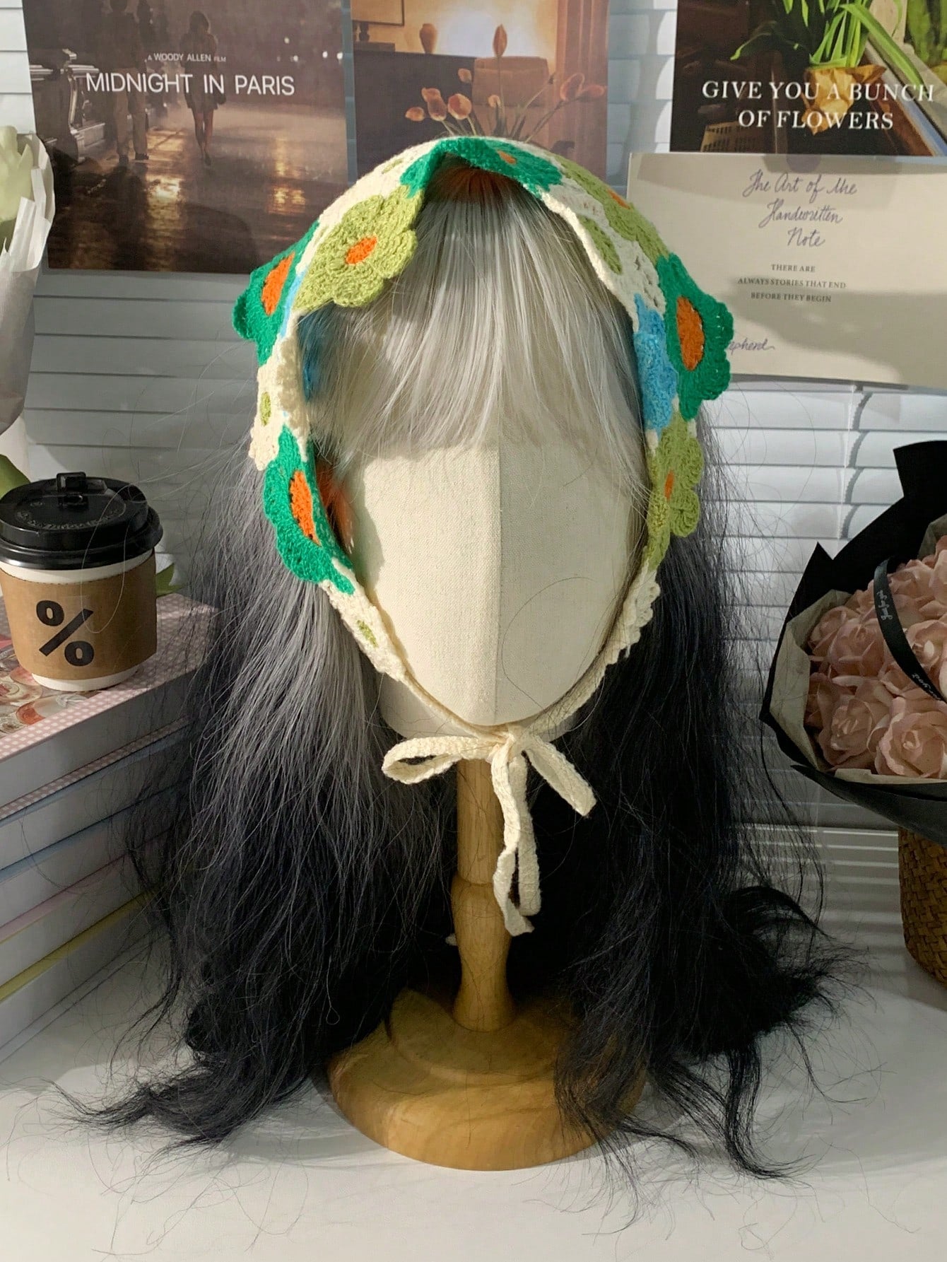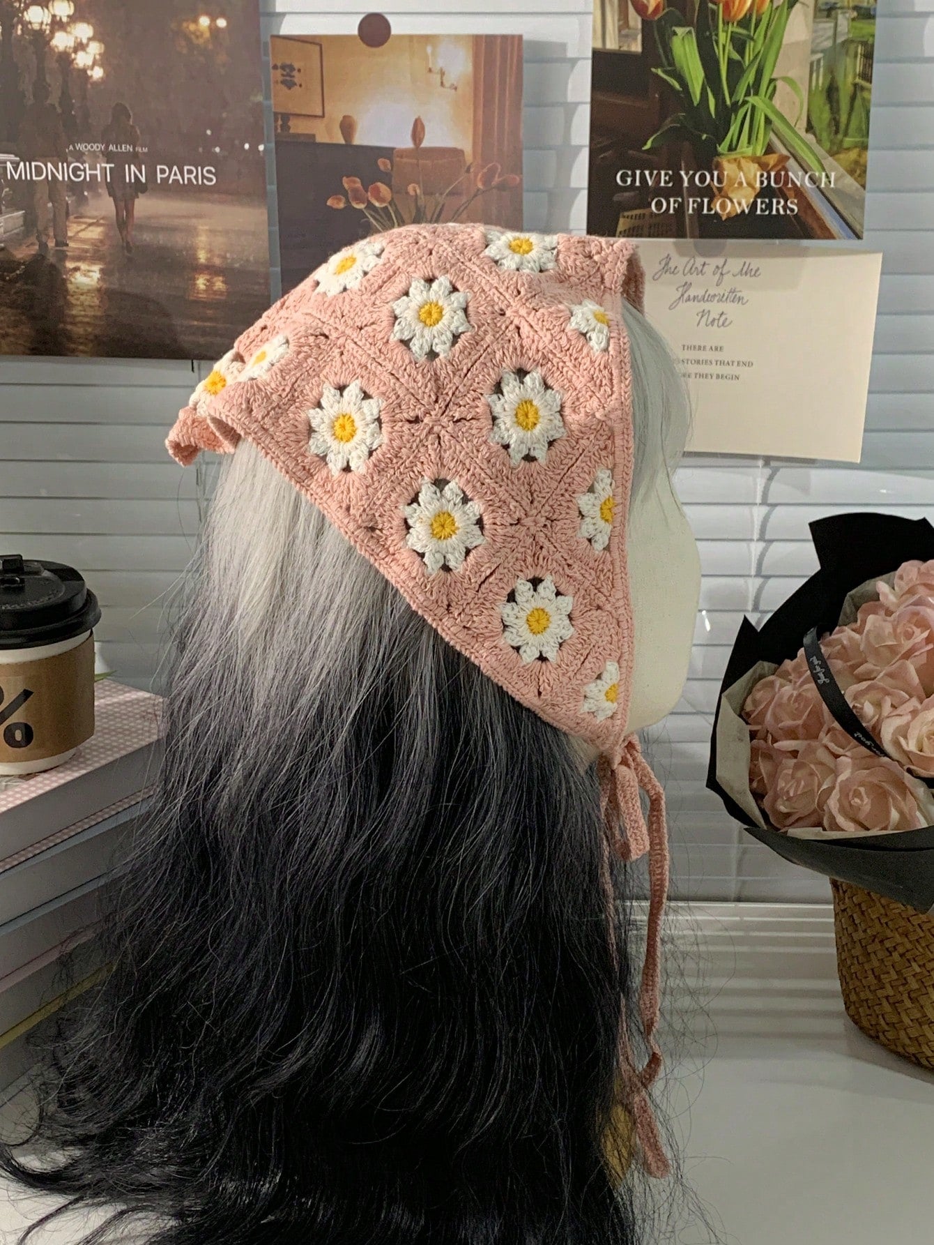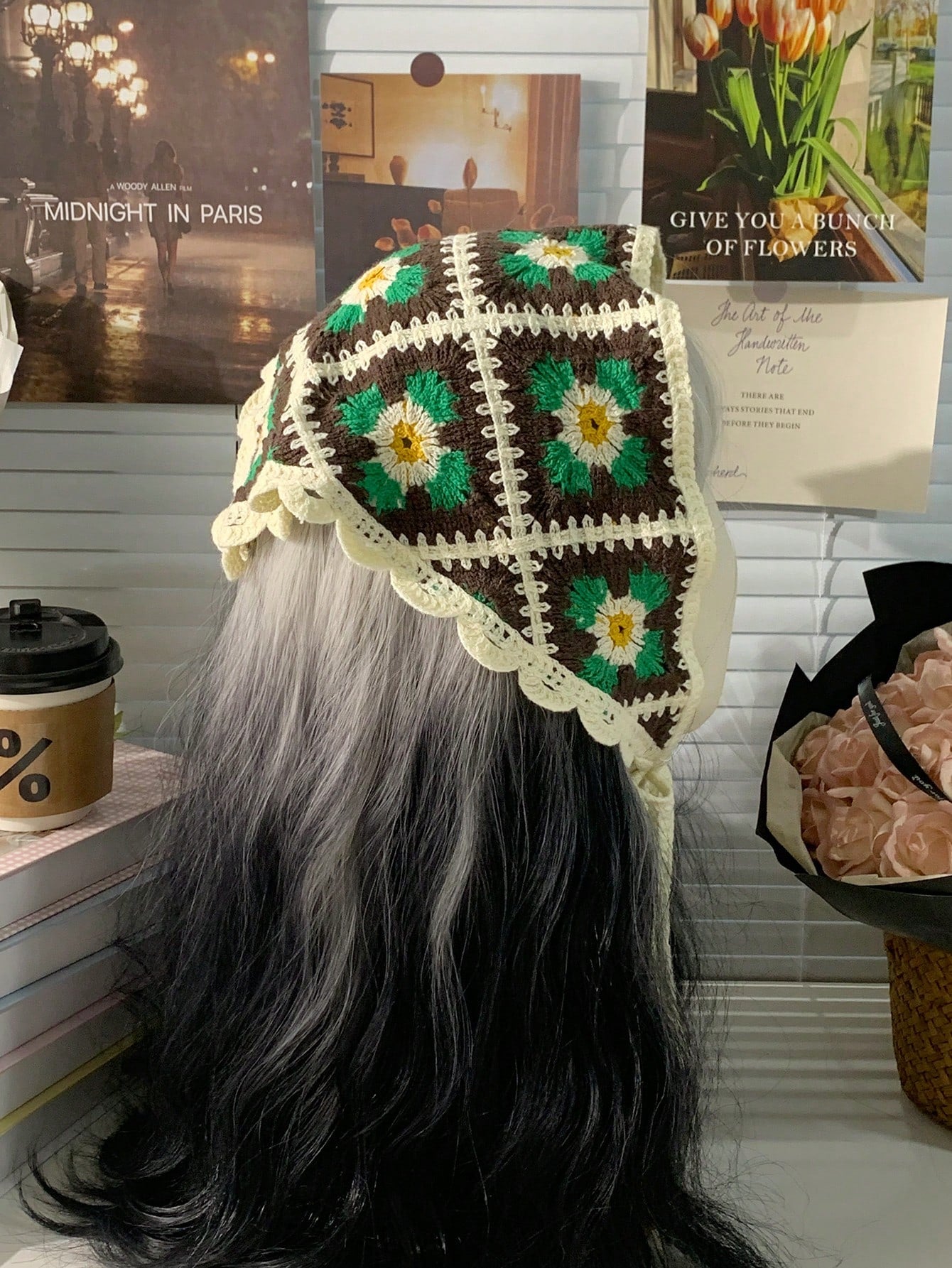 Vintage Country Flowers Crochet Knit Triangle Scarf - Handmade All Season Headband and Shawl