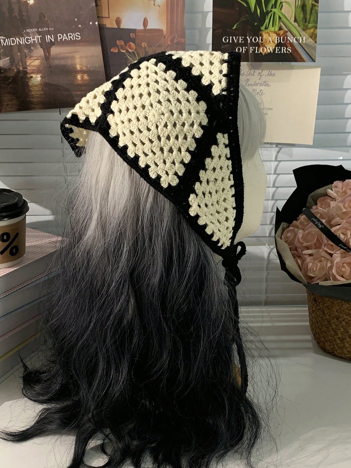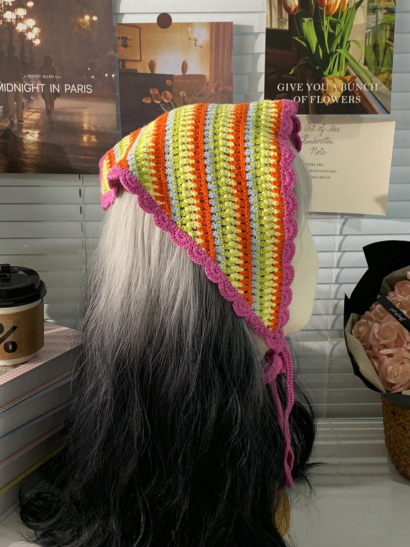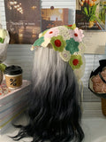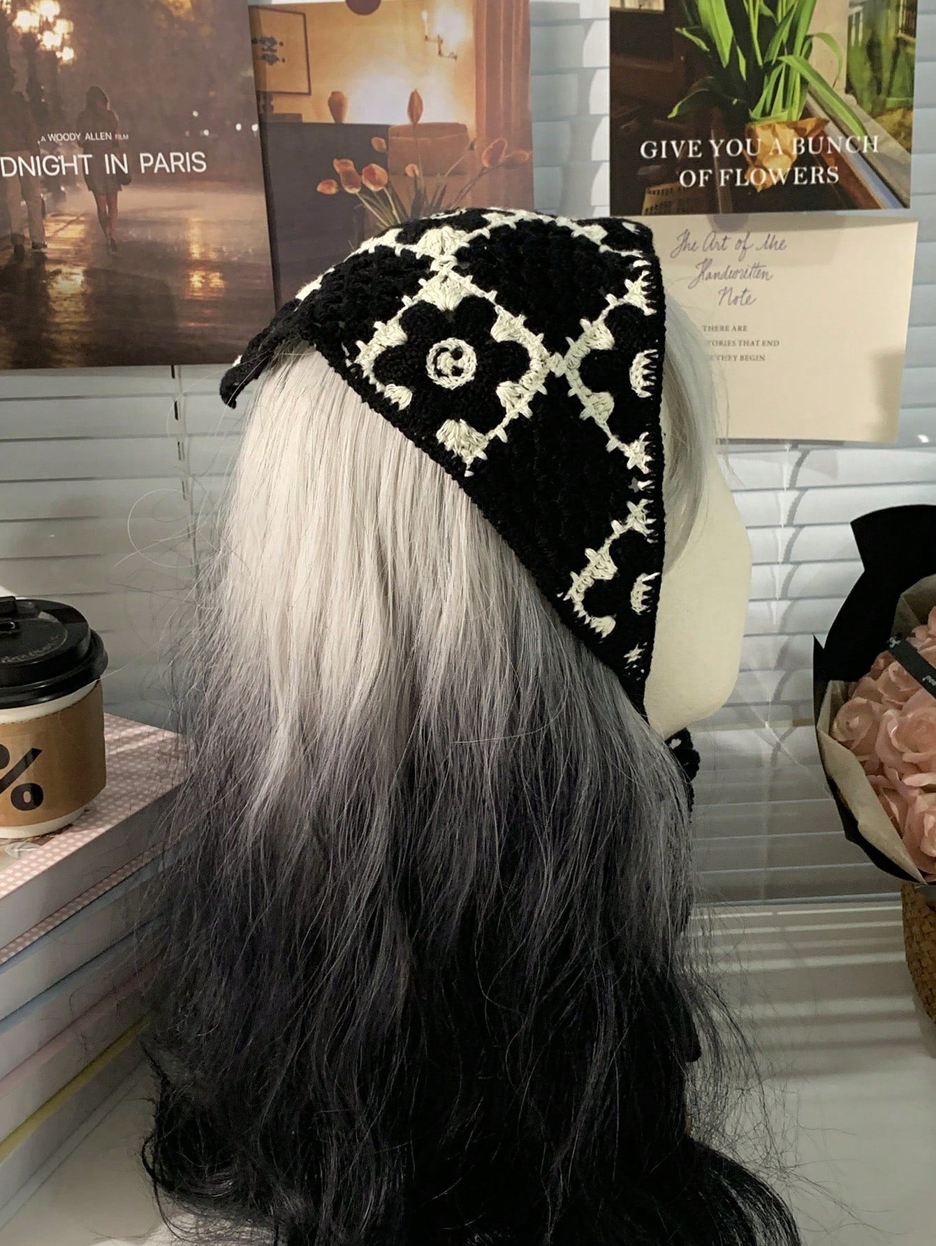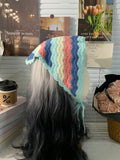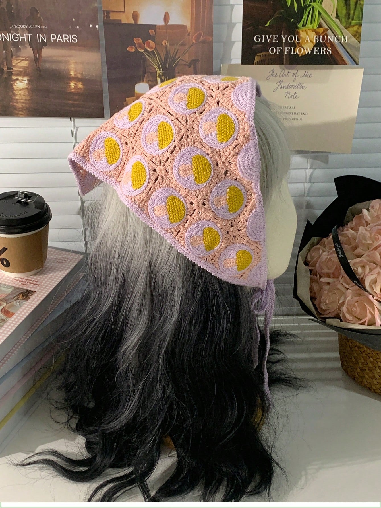 Vintage Country Flowers Crochet Knit Triangle Scarf - Handmade All Season Headband and Shawl