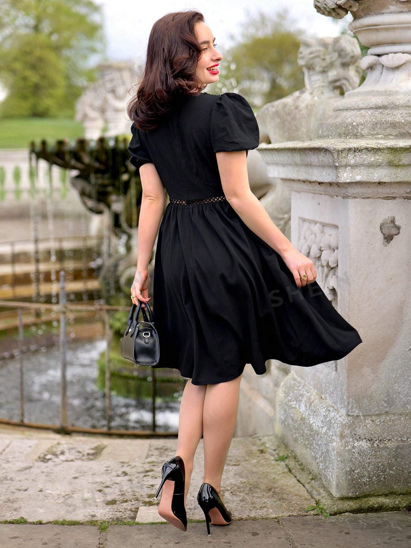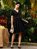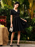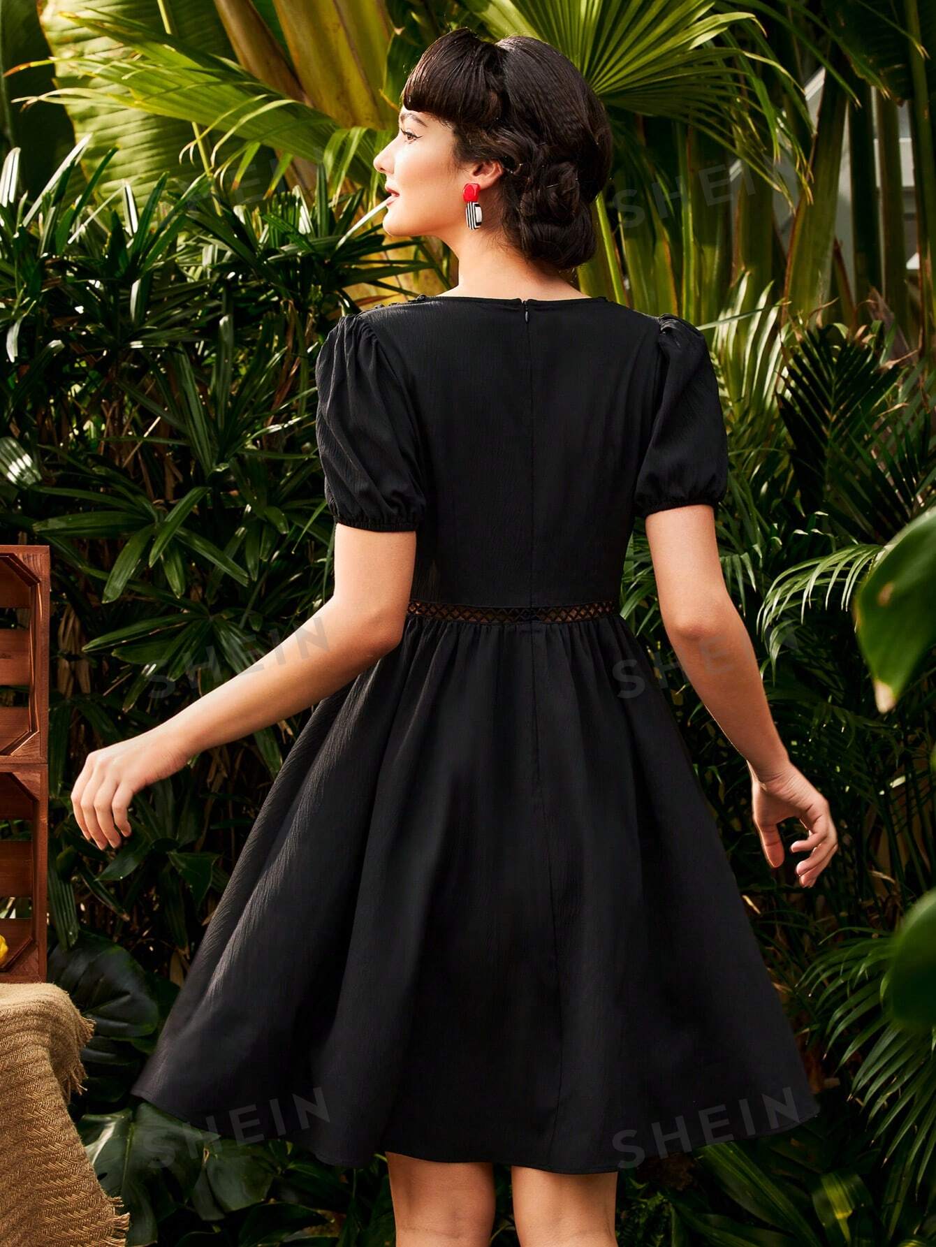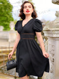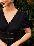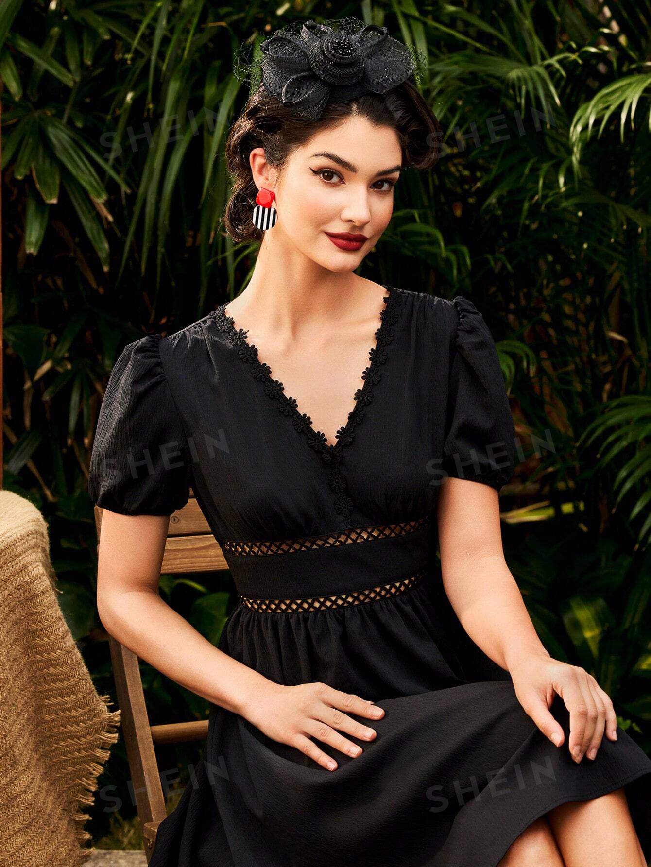Vintage Elegance: Lace Patchwork V-Neckline Dress for Summer Events