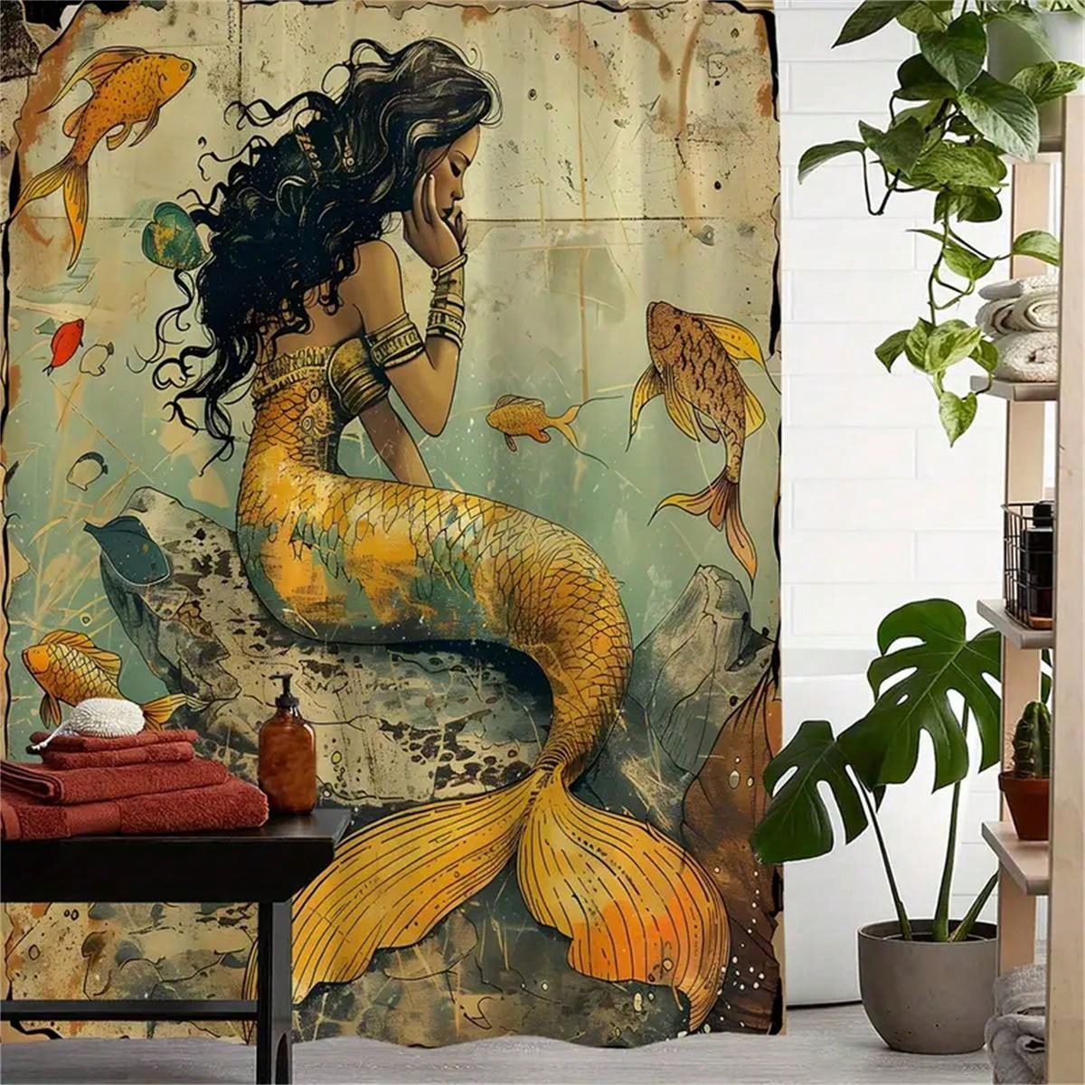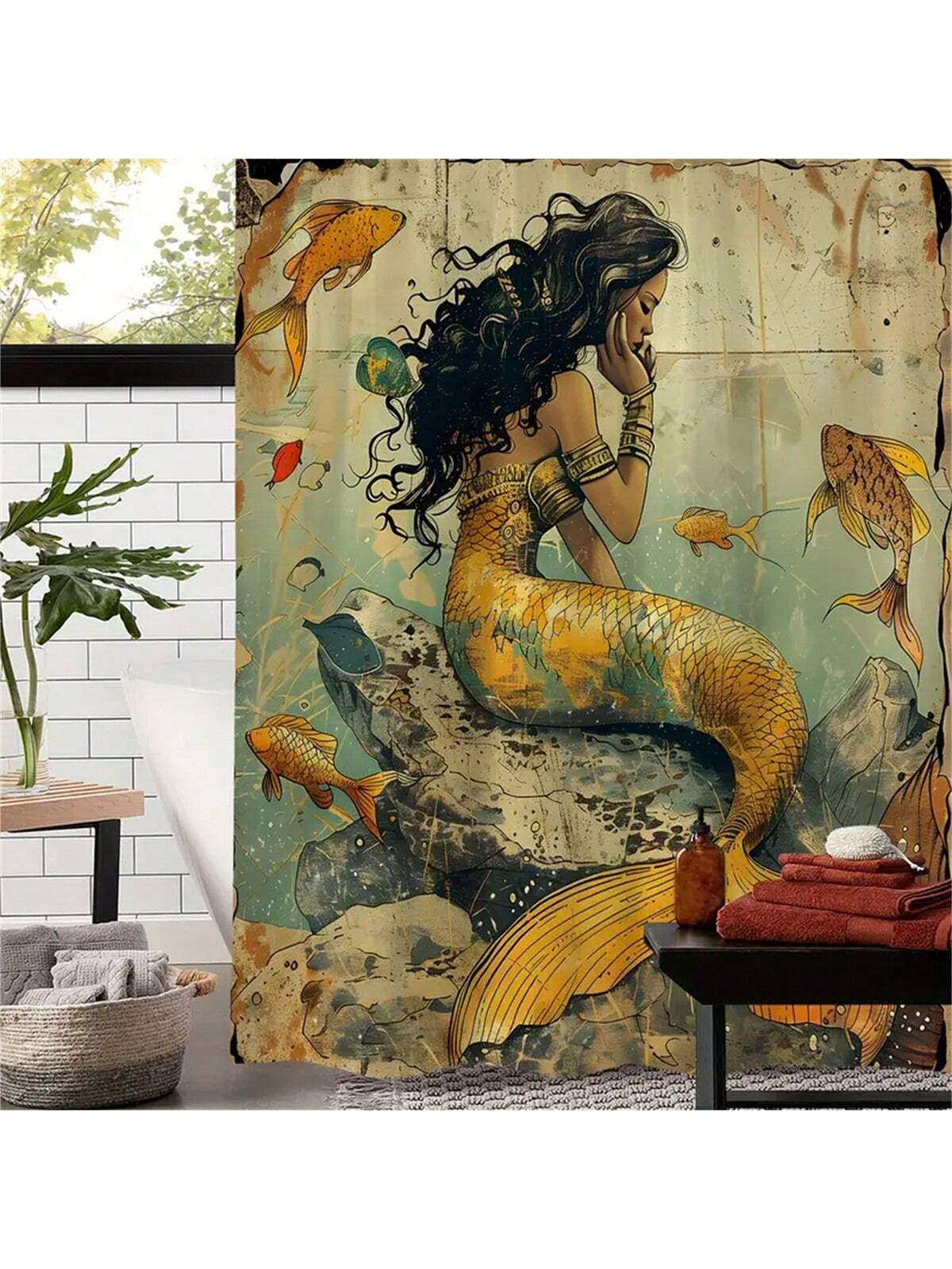 This Vintage Ocean Mermaid Shower Curtain brings a touch of whimsy to your bathroom. Made from waterproof polyester, it's durable and easy to clean. The included hooks make installation a breeze. Transform your space into a tranquil ocean escape with this beautiful curtain.