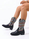 Experience a vintage vibe with our Embroidered Chunky Heel Mid-Calf Riding Boots. With intricate embroidery and a sturdy heel, these boots offer comfort and style for all-day wear. Elevate your wardrobe with this timeless addition.