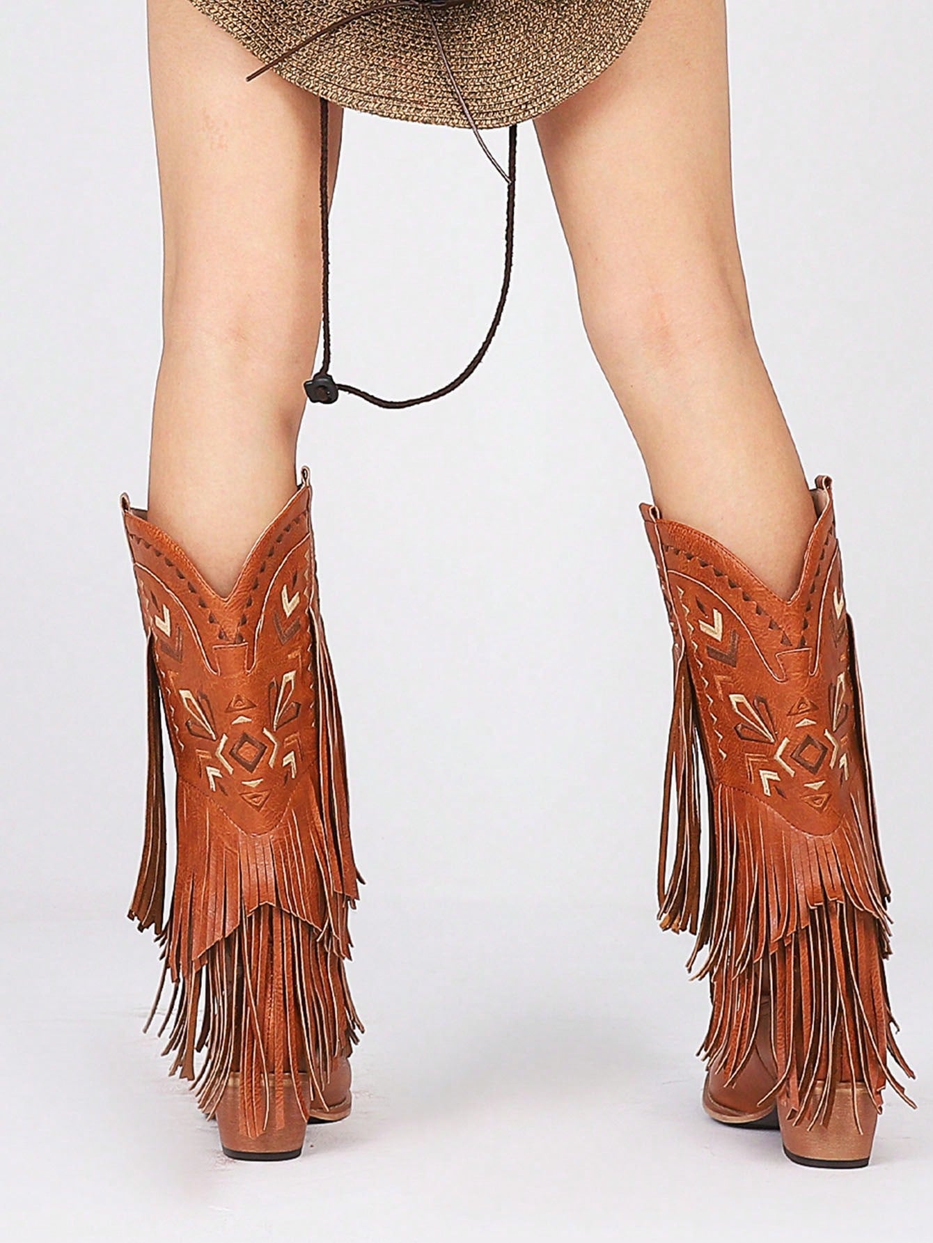 Experience the perfect blend of style and durability with our Vintage Western Fringe Cowgirl Boots. Made for women, these boots feature a stylish vintage design and sturdy construction, ensuring long-lasting wear. Elevate your western look with these timeless boots.