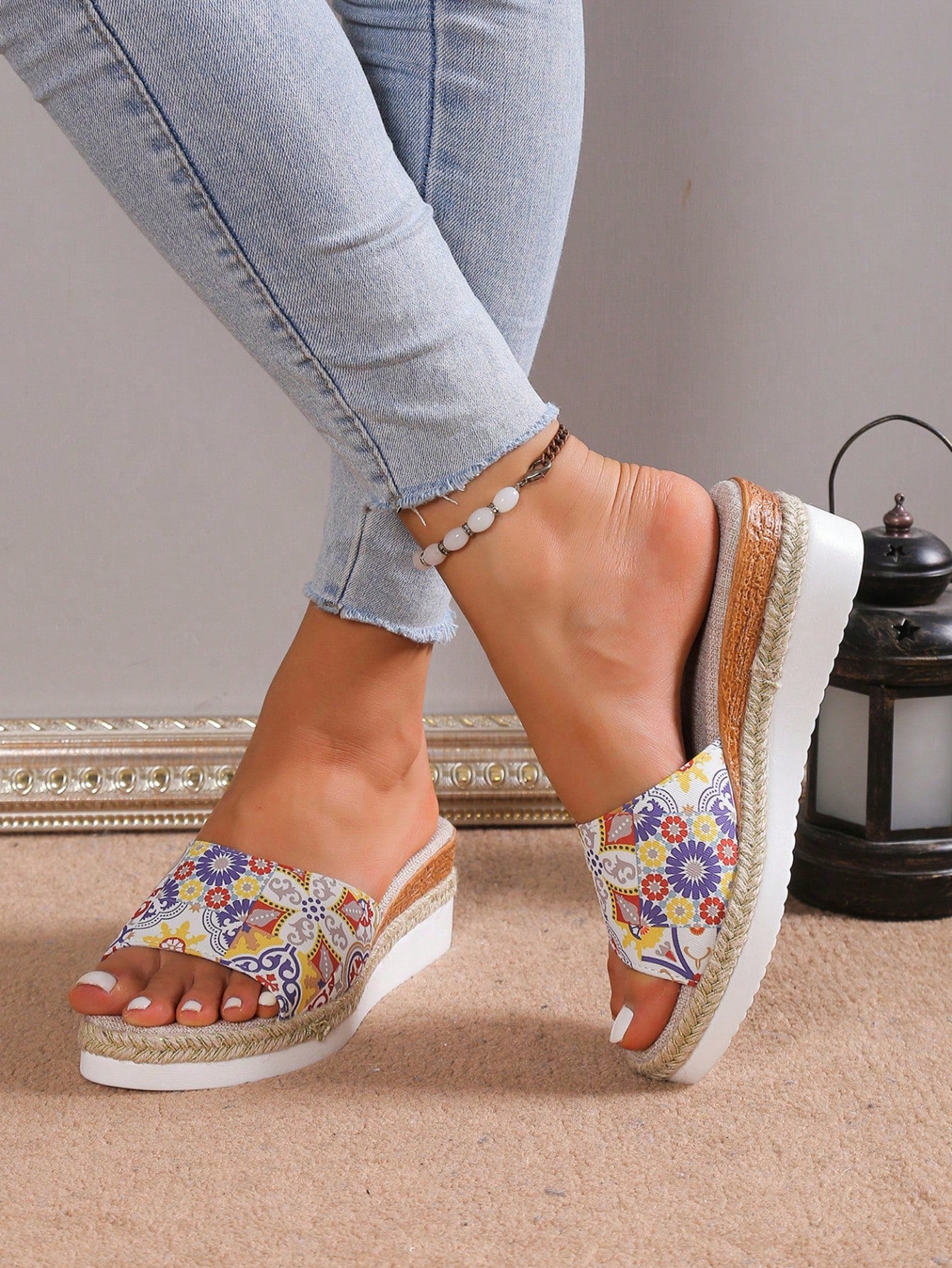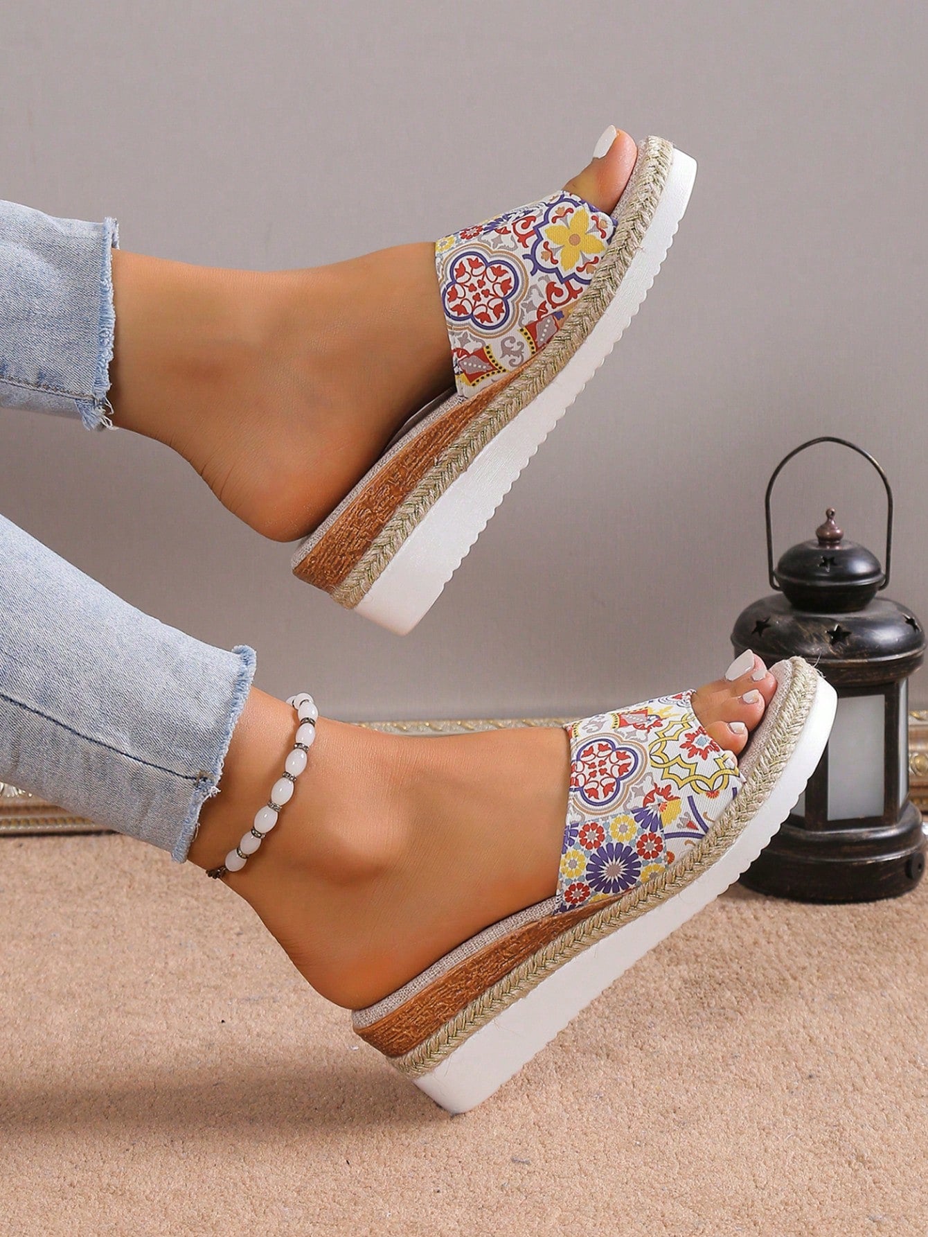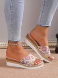 Walk Tall in Style: Women's Plus Size Woven Straps Wedge Platform Slides Summer Sandals