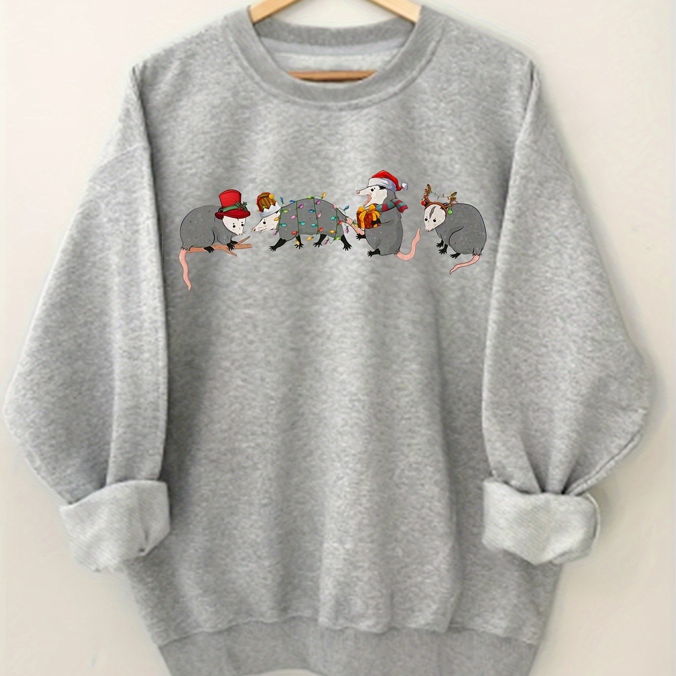 Warm and Festive: Christmas Print Women's Sweatshirt - Casual Crew Neck, Soft Polyester
