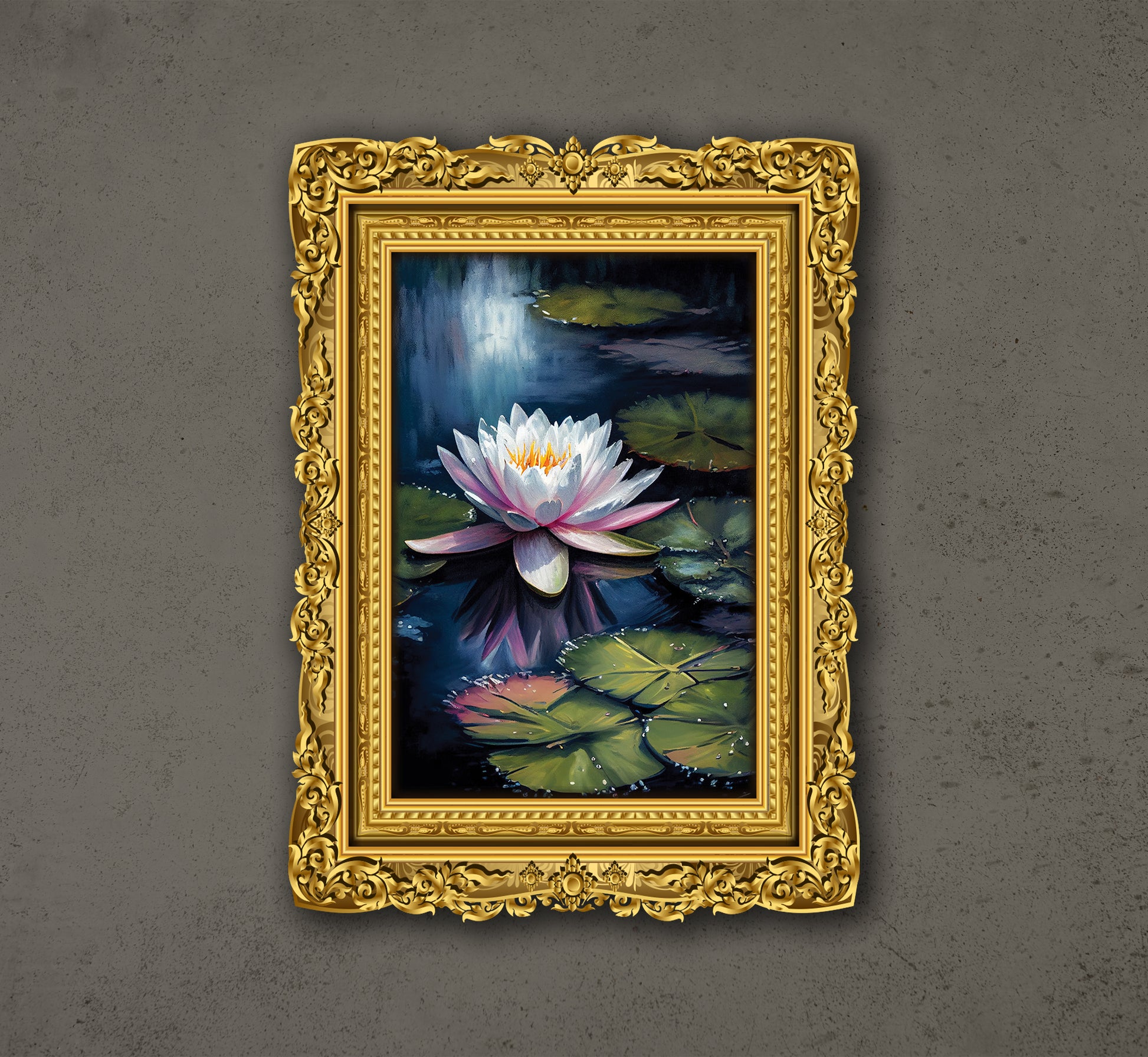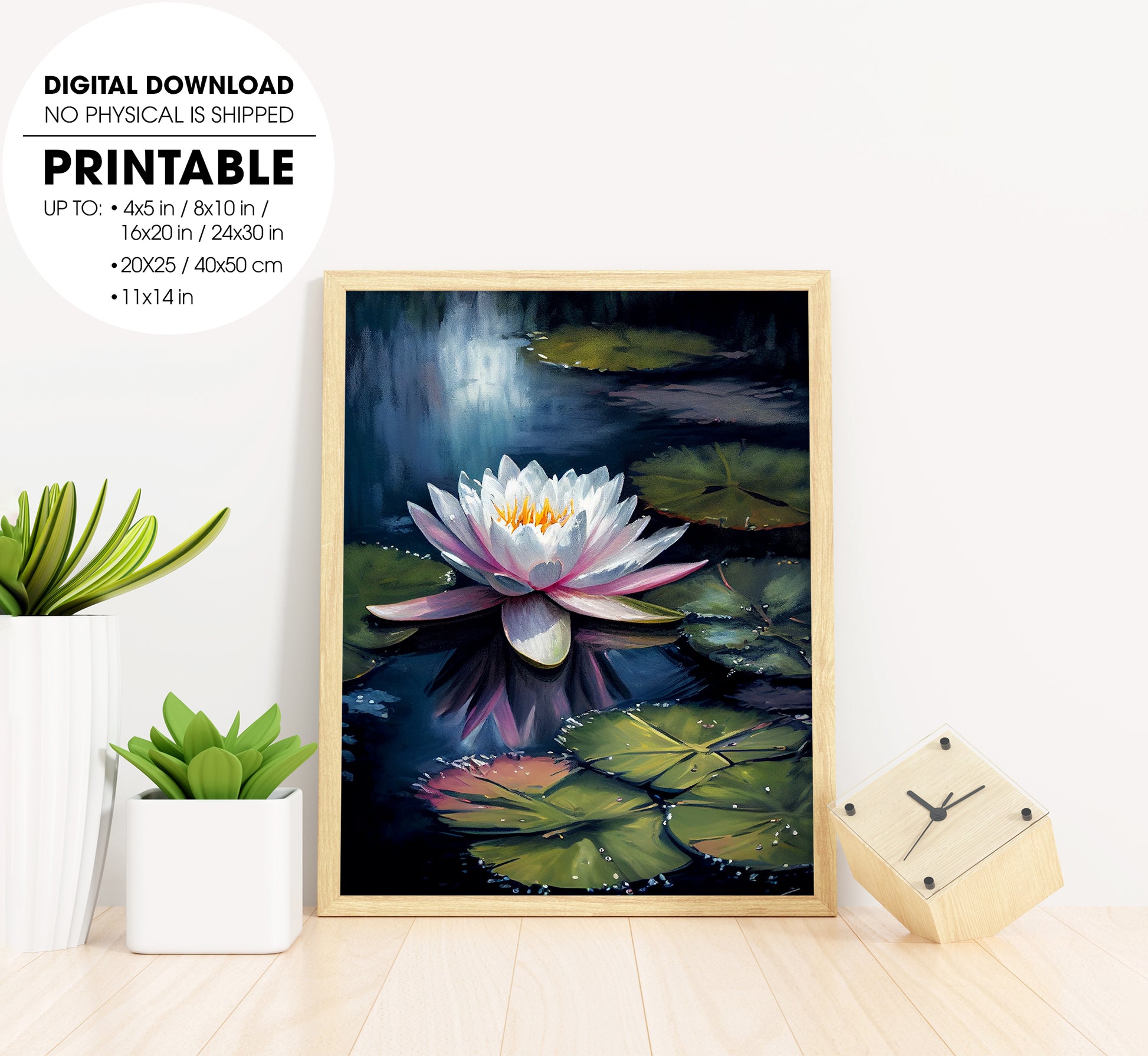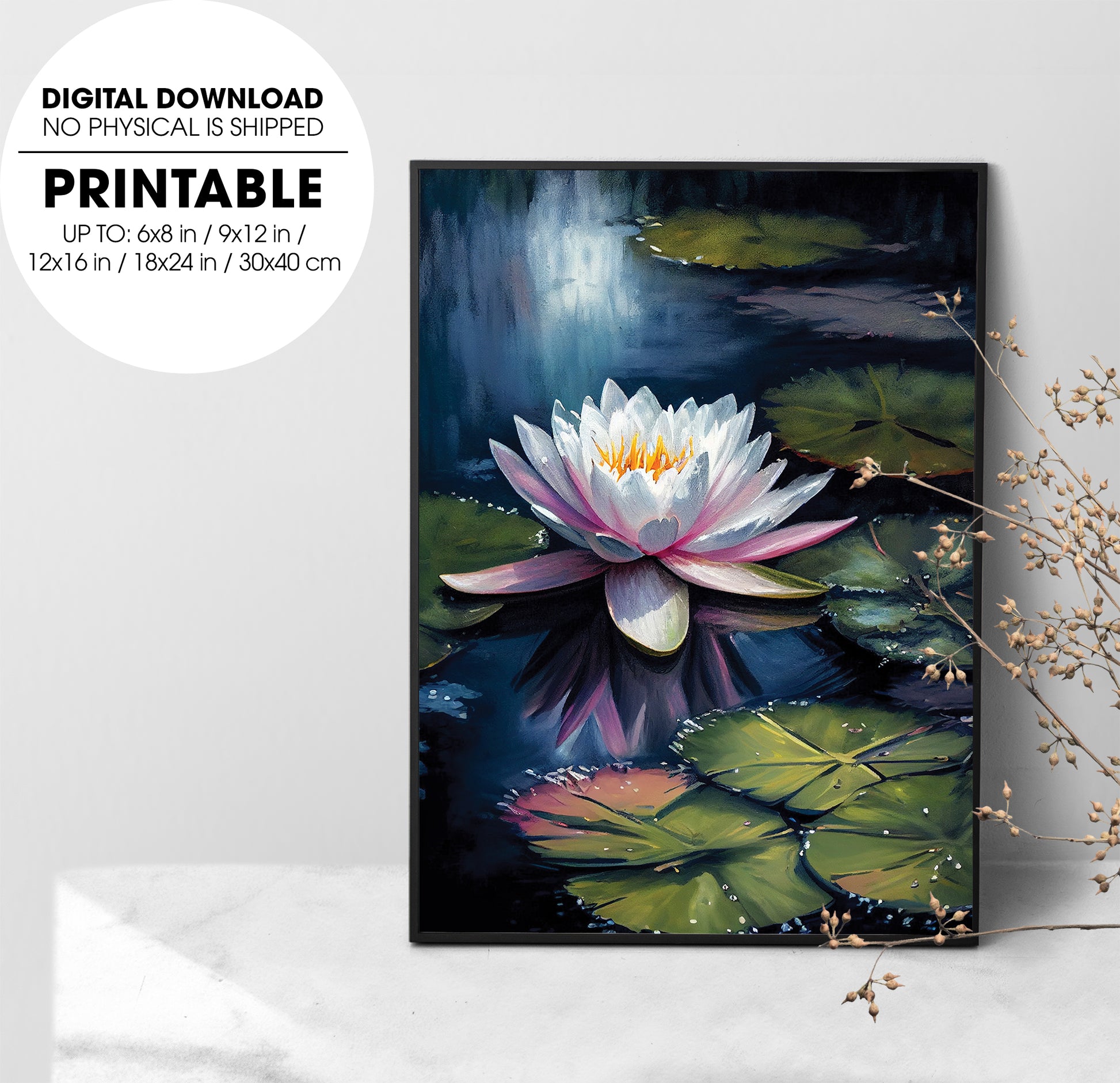 Water Lily In A Serene Pond, Flower Peaceful Art, Love Water Lily, Poster Design, Printable Art