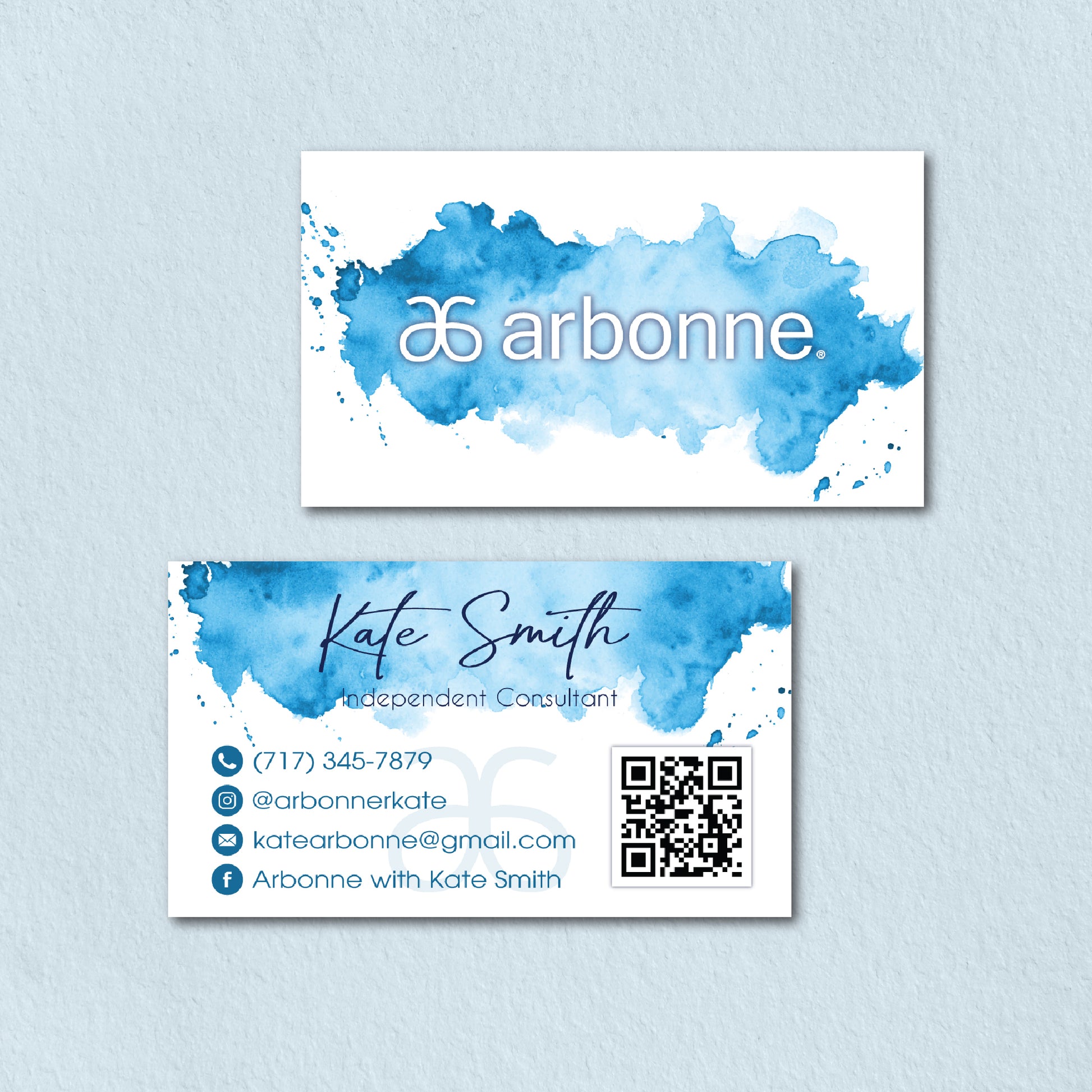 Watercolor Blue Arbonne Business Card QR Code, Personalized Arbonne Business Card QR Code AB160
