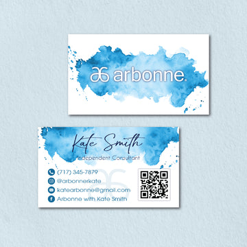 Watercolor Blue Arbonne Business Card QR Code, Personalized Arbonne Business Card QR Code AB160.