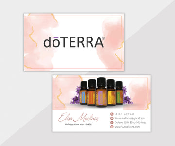 Watercolor Pink Personalized Doterra Business Card, Essential Oils Business Cards DT102.