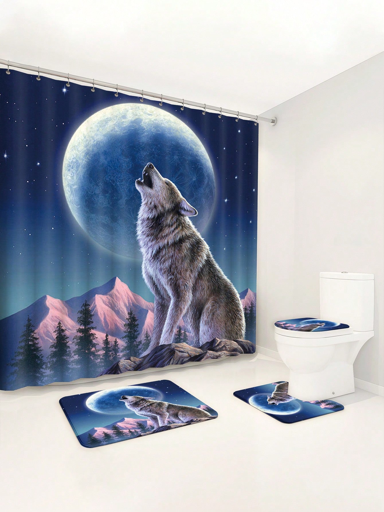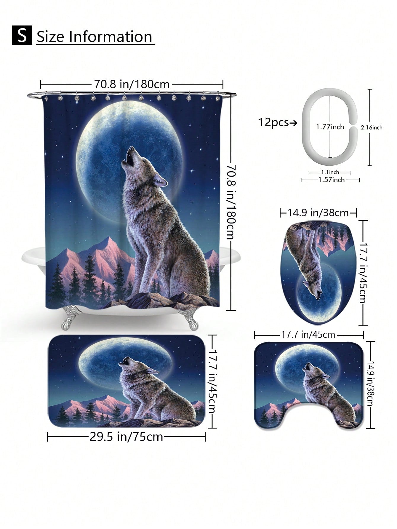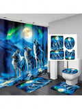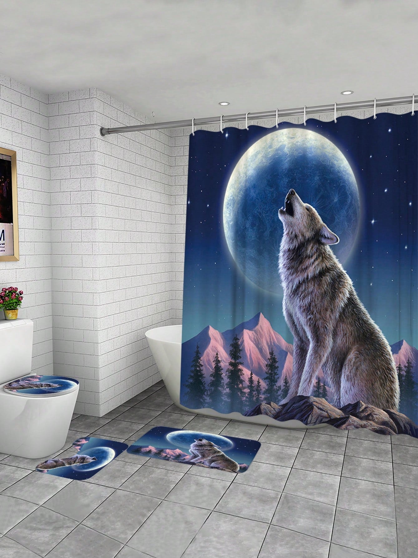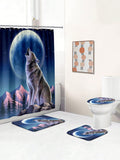 Waterproof Wolf Howling Shower Curtain Set: Decorative Bathroom Essentials with Anti-Slip Mat and Toilet Seat Cover