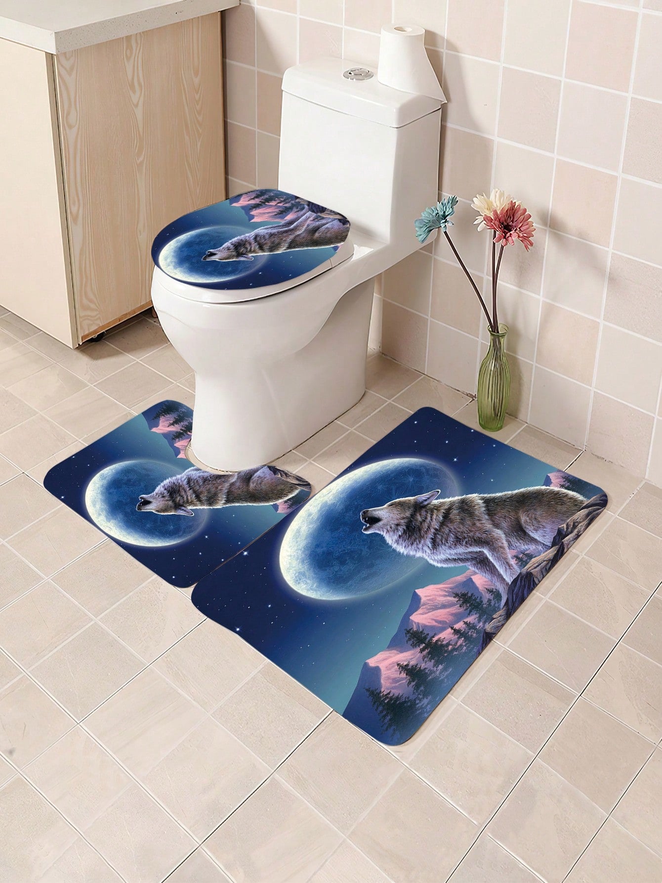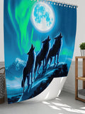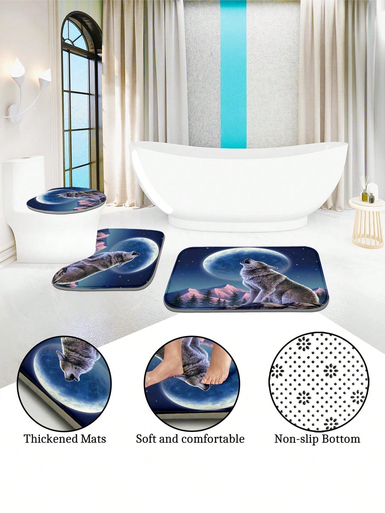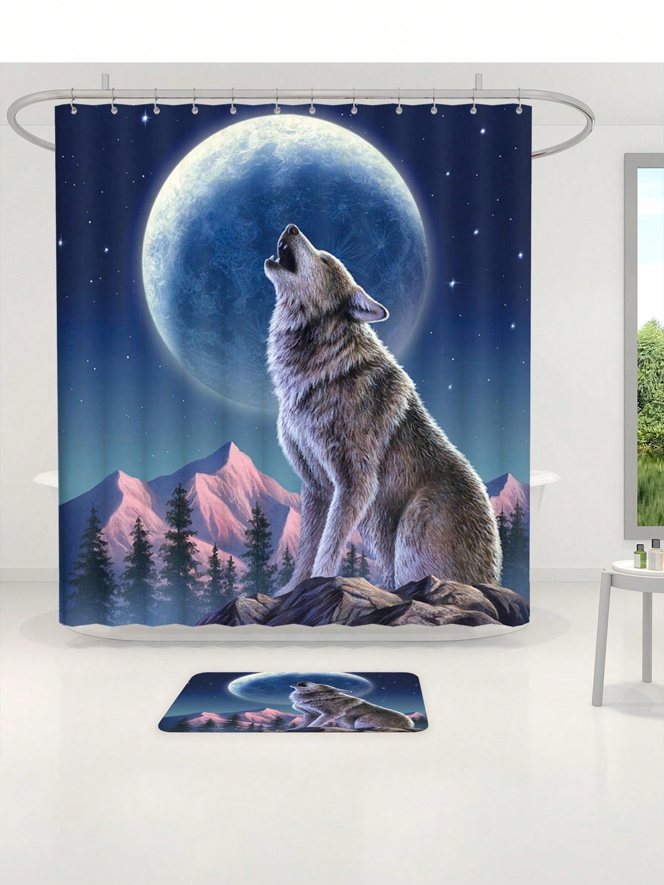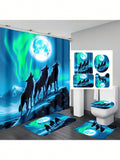 Waterproof Wolf Howling Shower Curtain Set: Decorative Bathroom Essentials with Anti-Slip Mat and Toilet Seat Cover