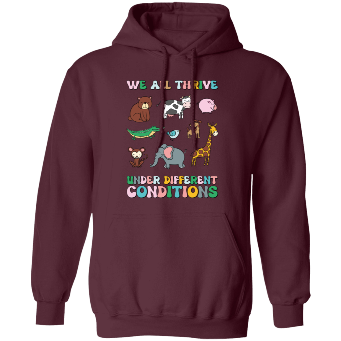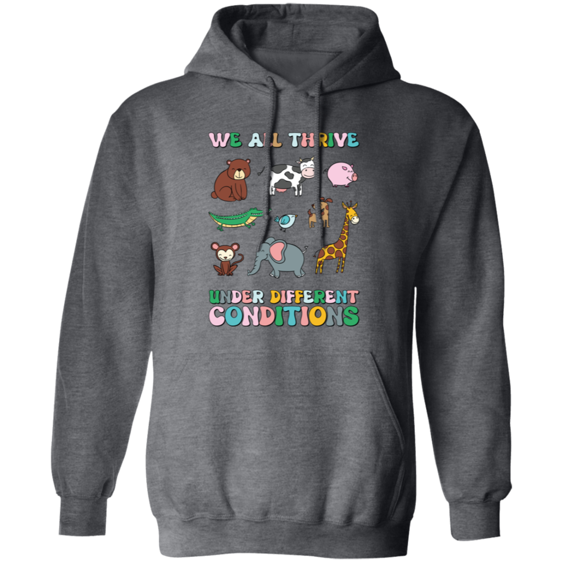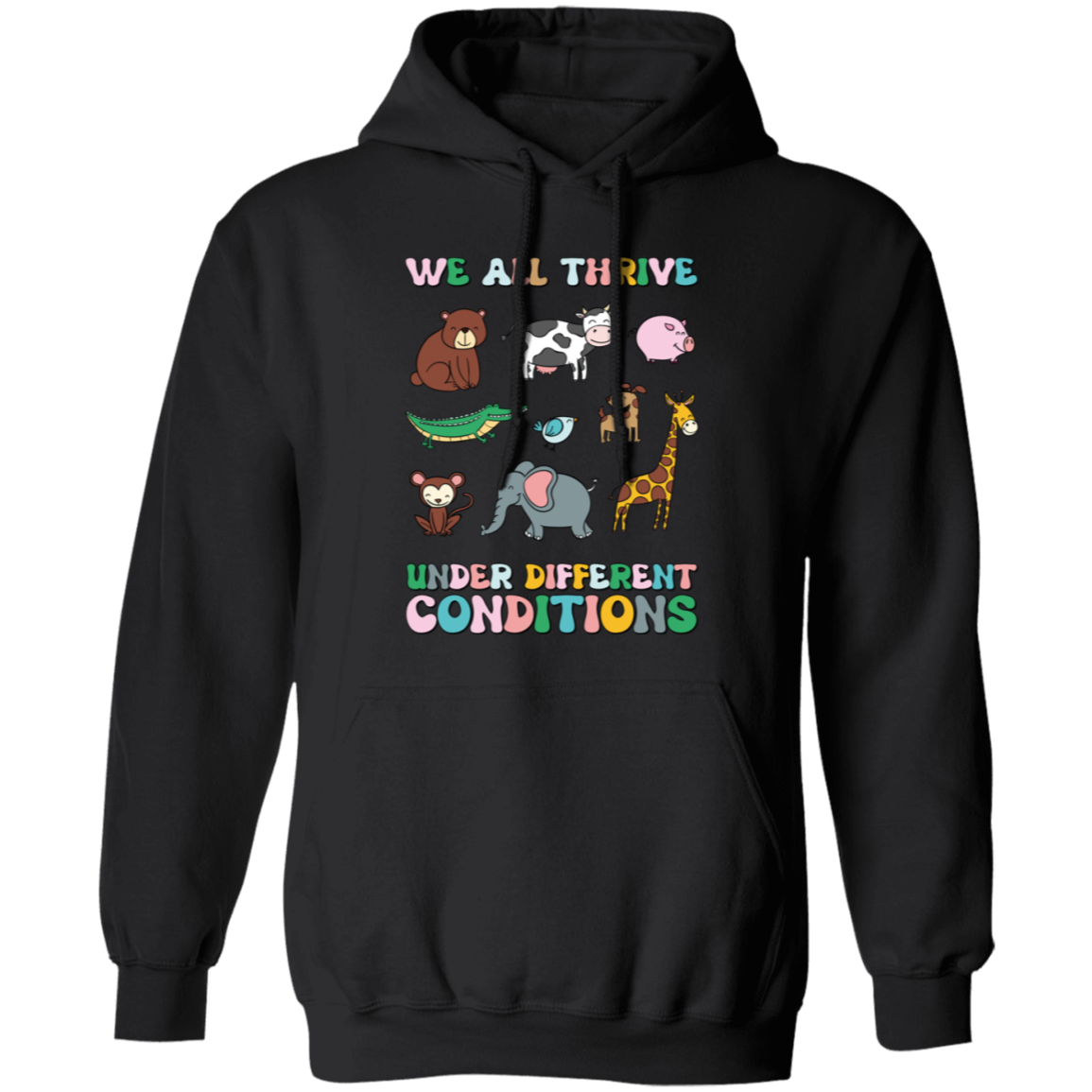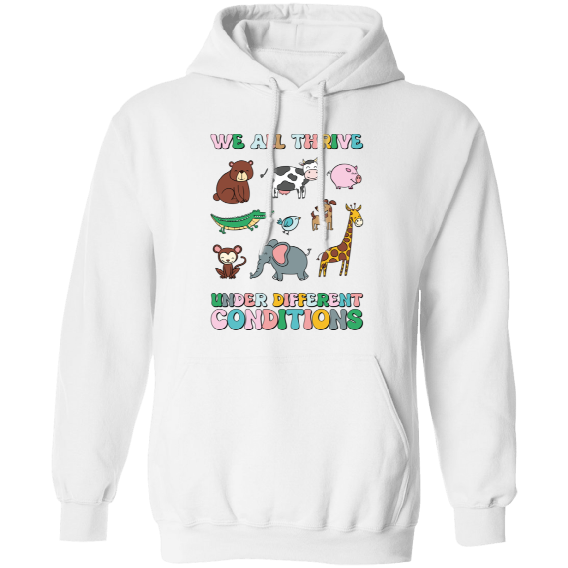 We All Thrive Under Different Conditions, Love Animals Pullover Hoodie