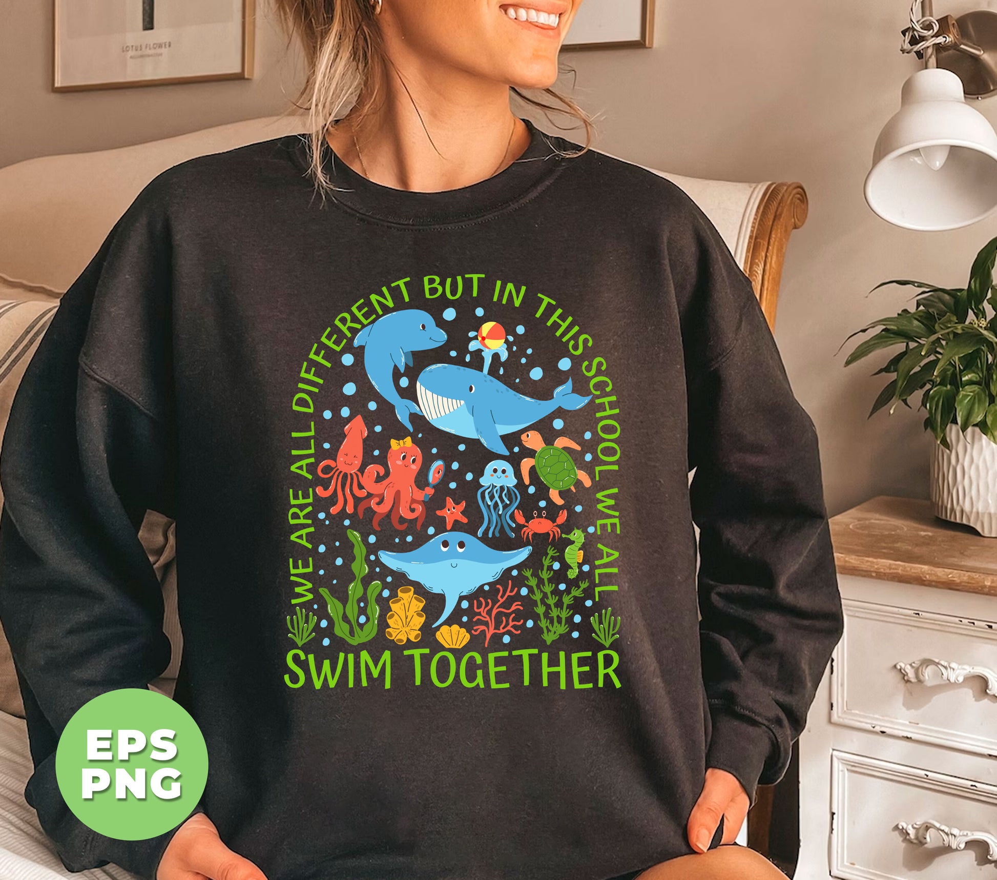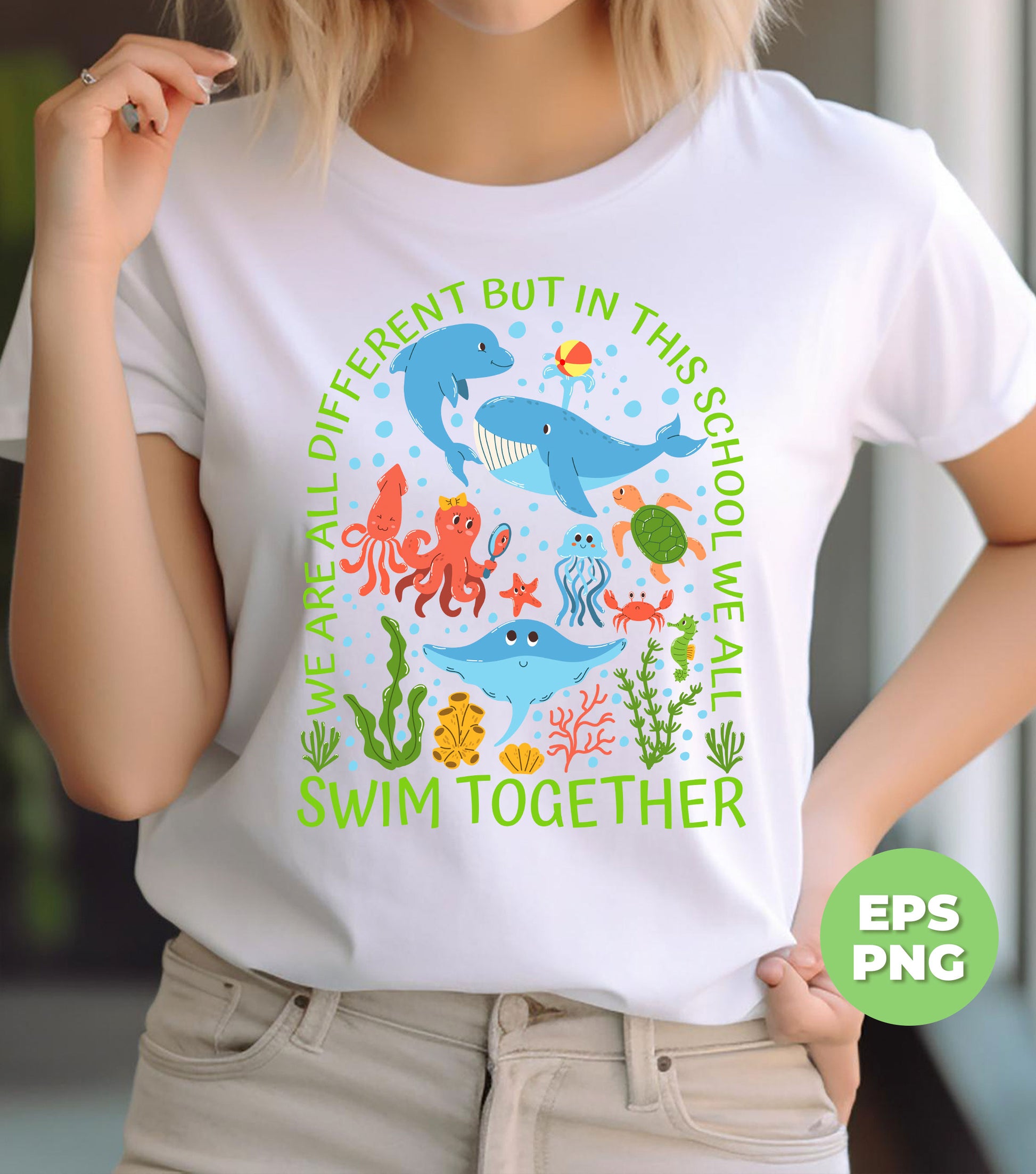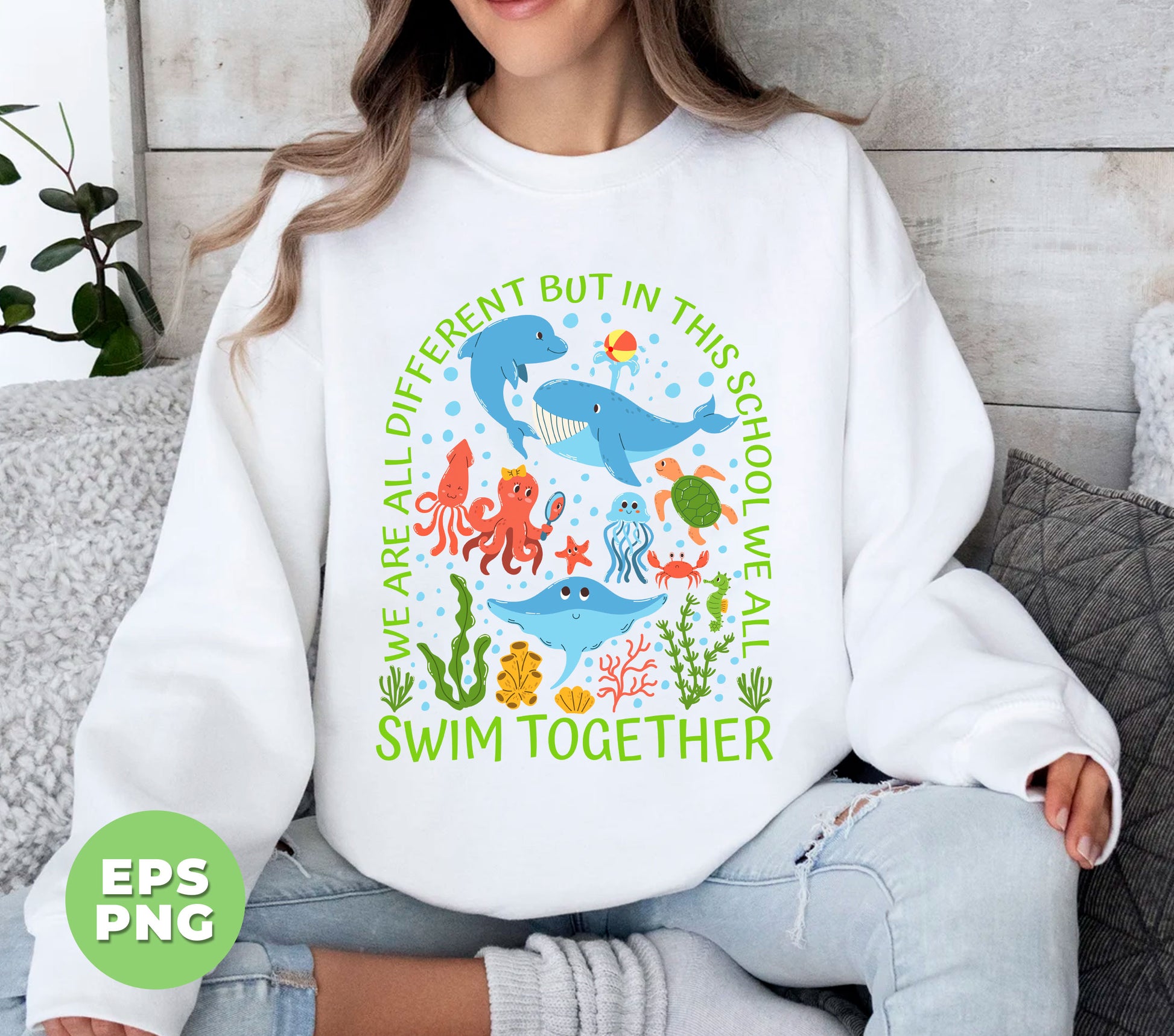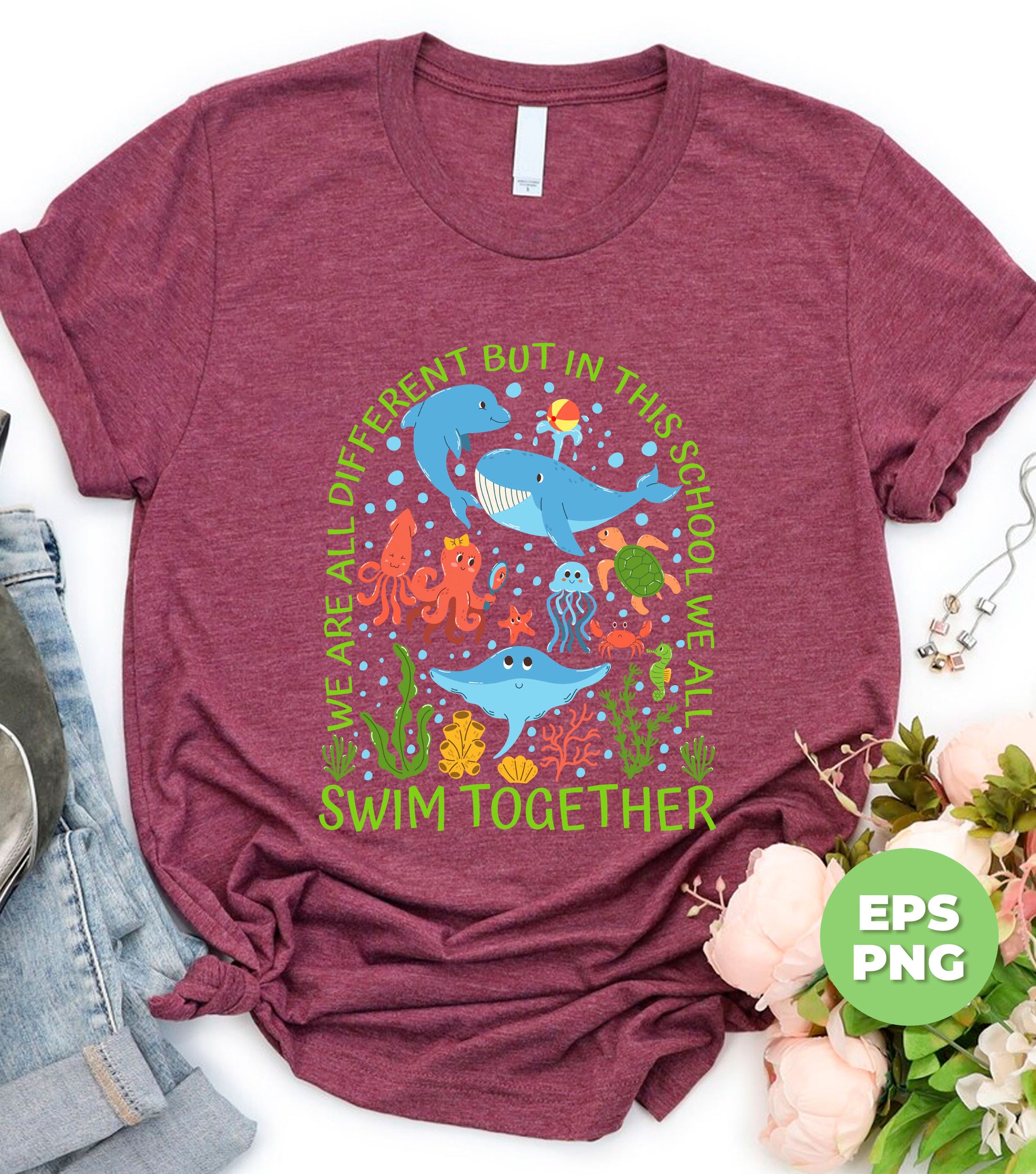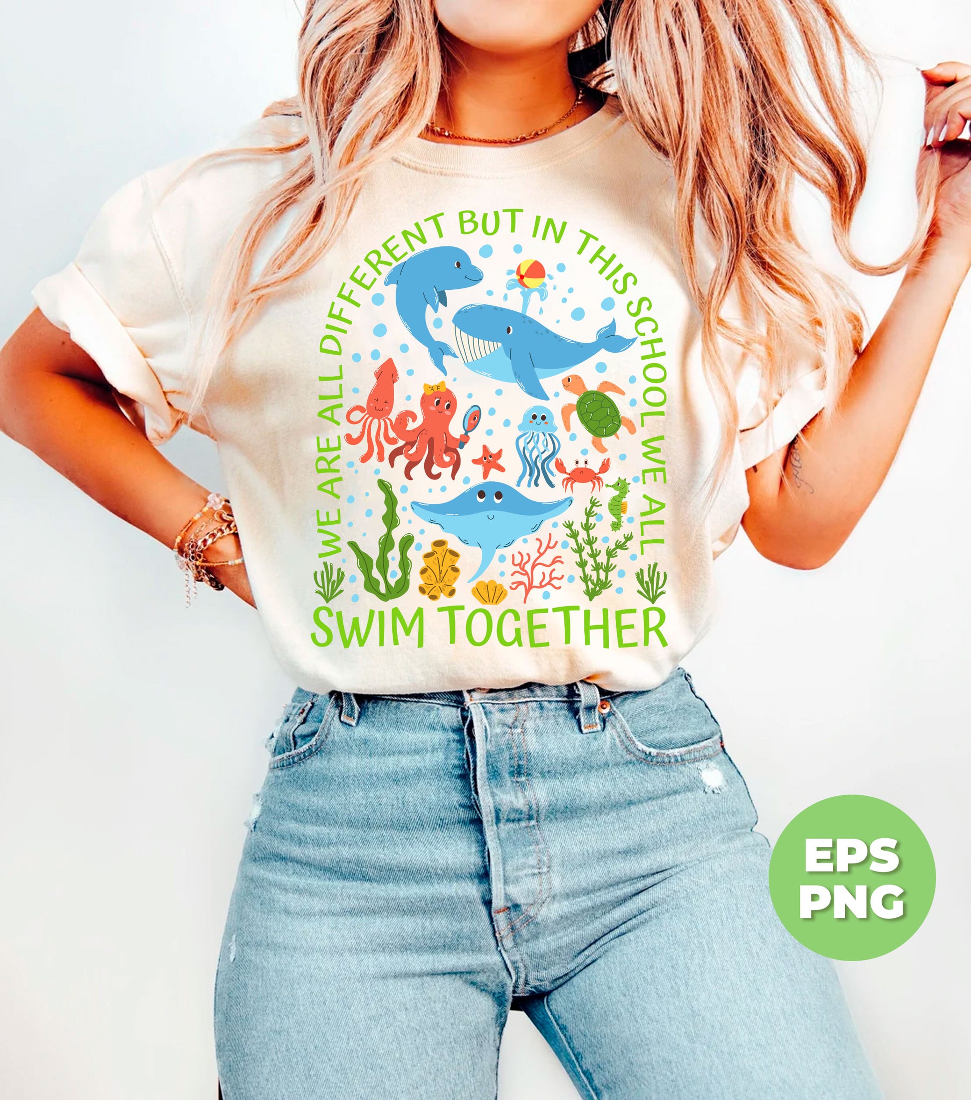 We Are All Different But In This School, We All Swim Together, Digital Files, Png Sublimation