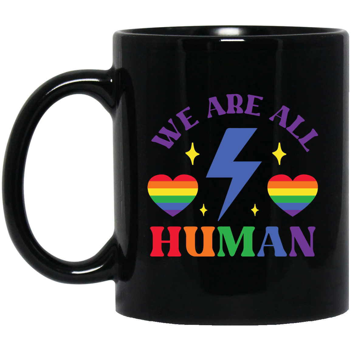 We Are All Human, LGBT Flash, LGBTQ+ Pride, Pride's Day Black Mug