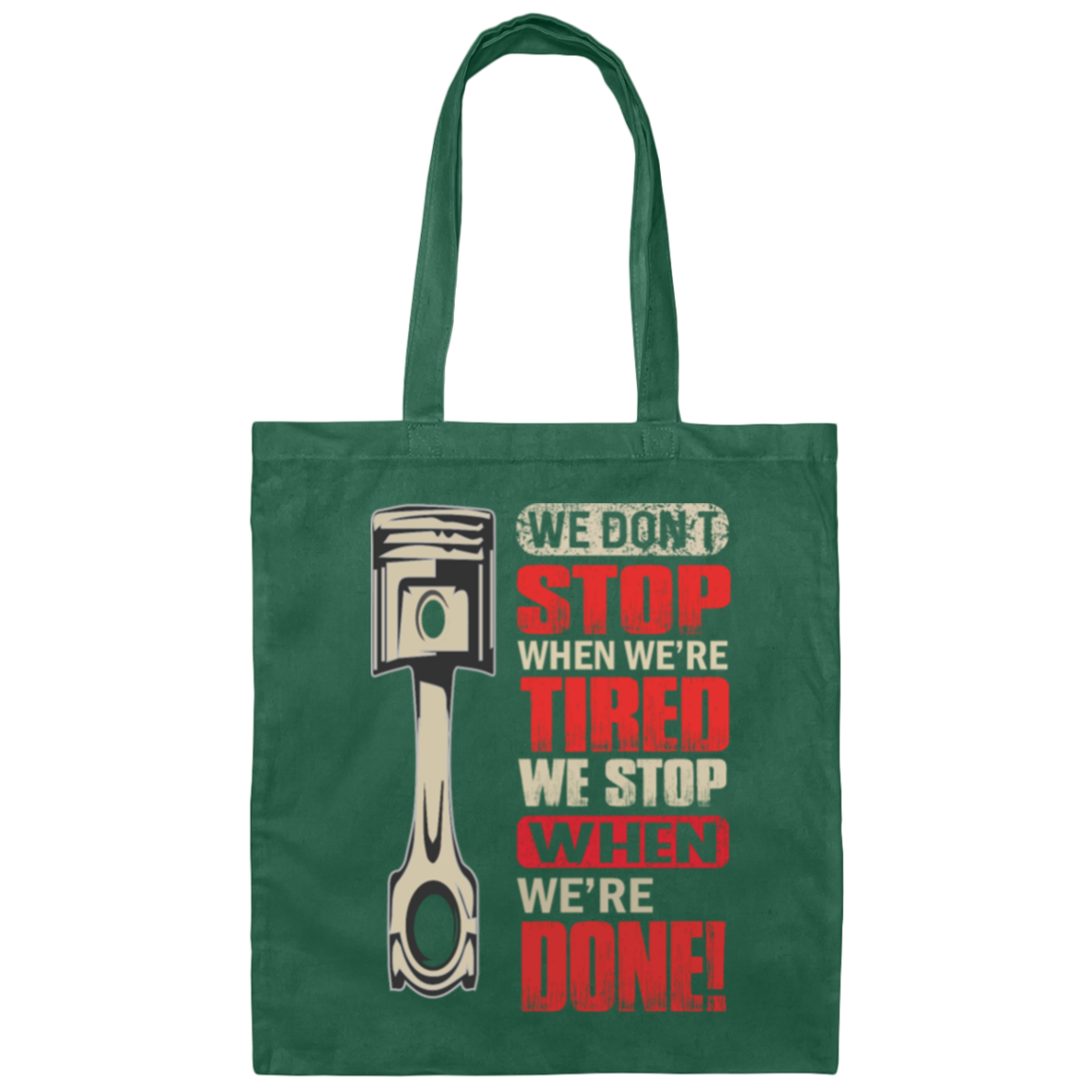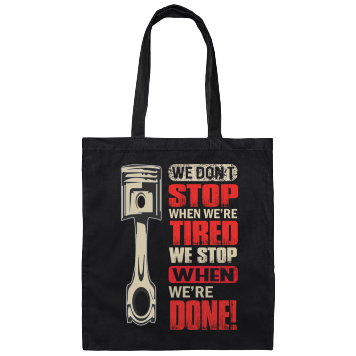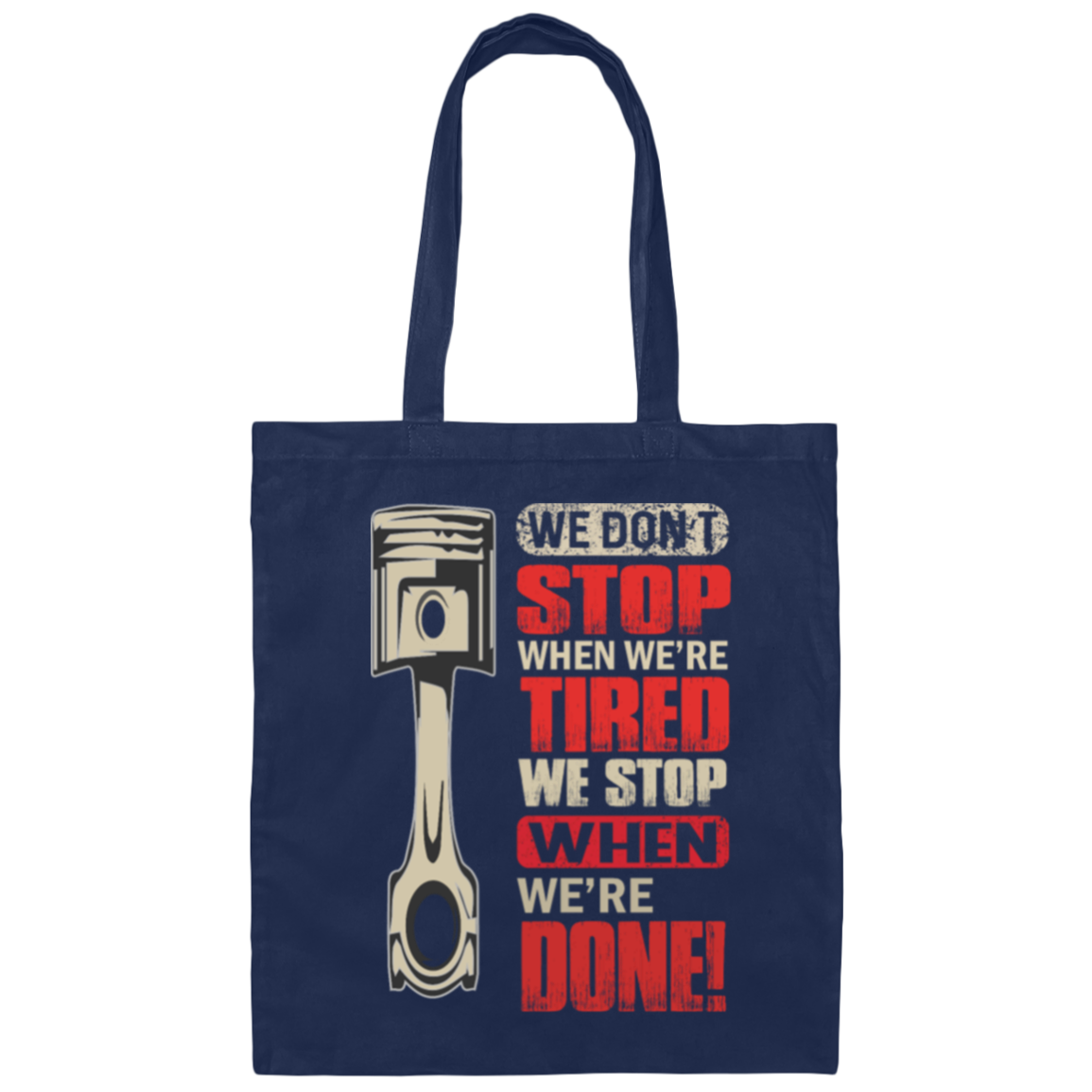 We Don't Stop When We're Tired, We Stop When We're Done Canvas Tote Bag