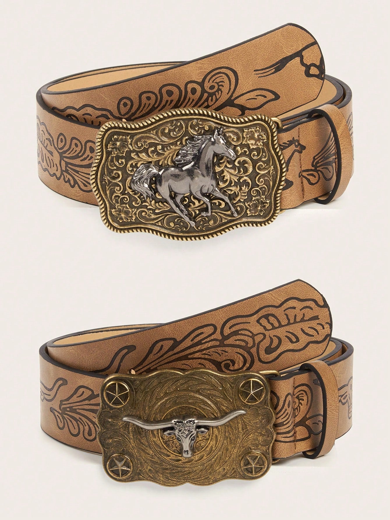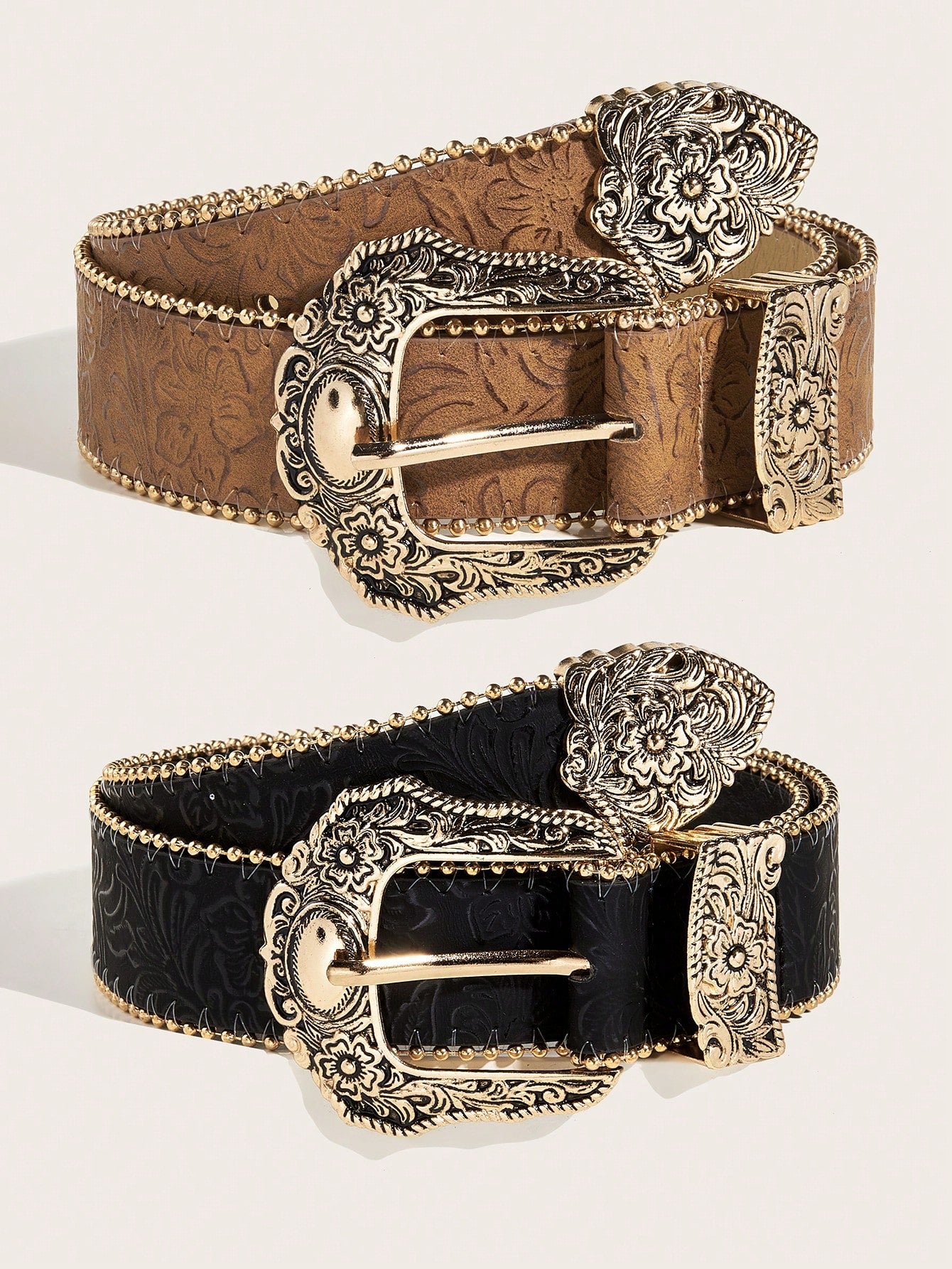 Western Charm: 2pc Cowgirl Style Beaded Belts for Daily Use