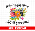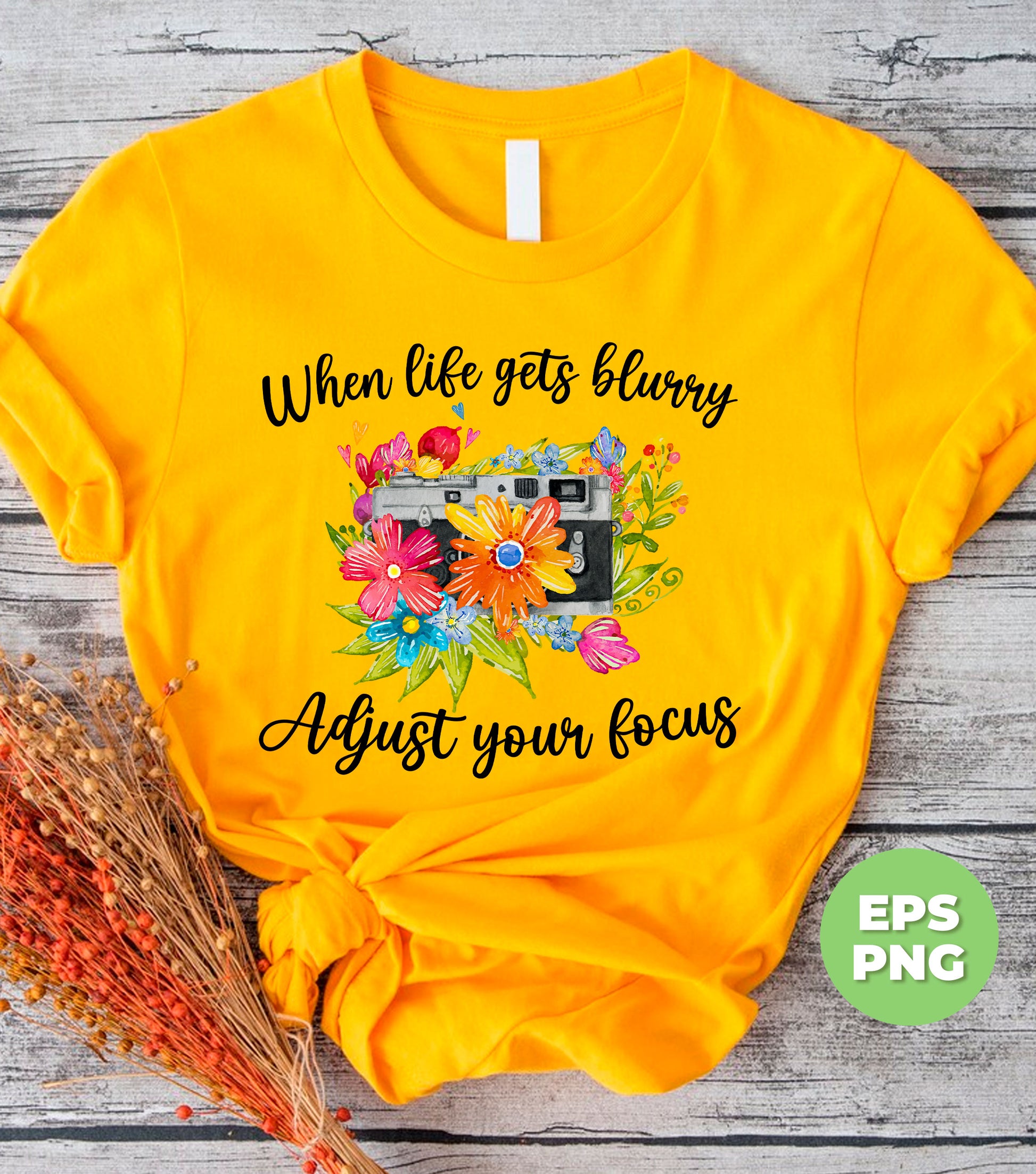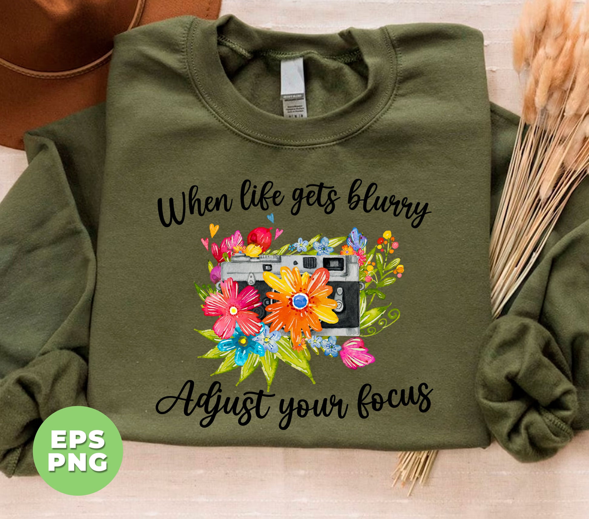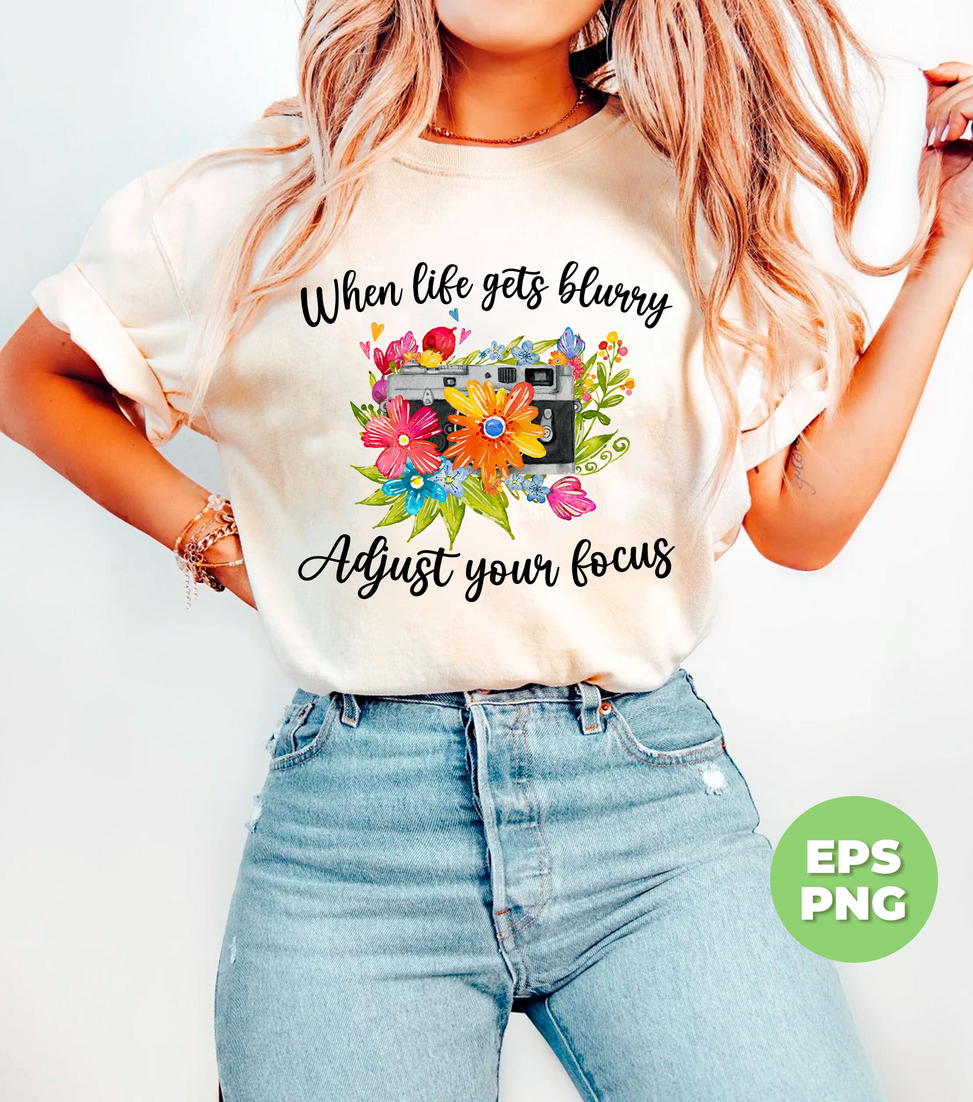 When Life Gets Blurry, Adjust Your Focus, Focus Your Life, Love Yourself, Camera With Flowers, Digital Files, Png Sublimation