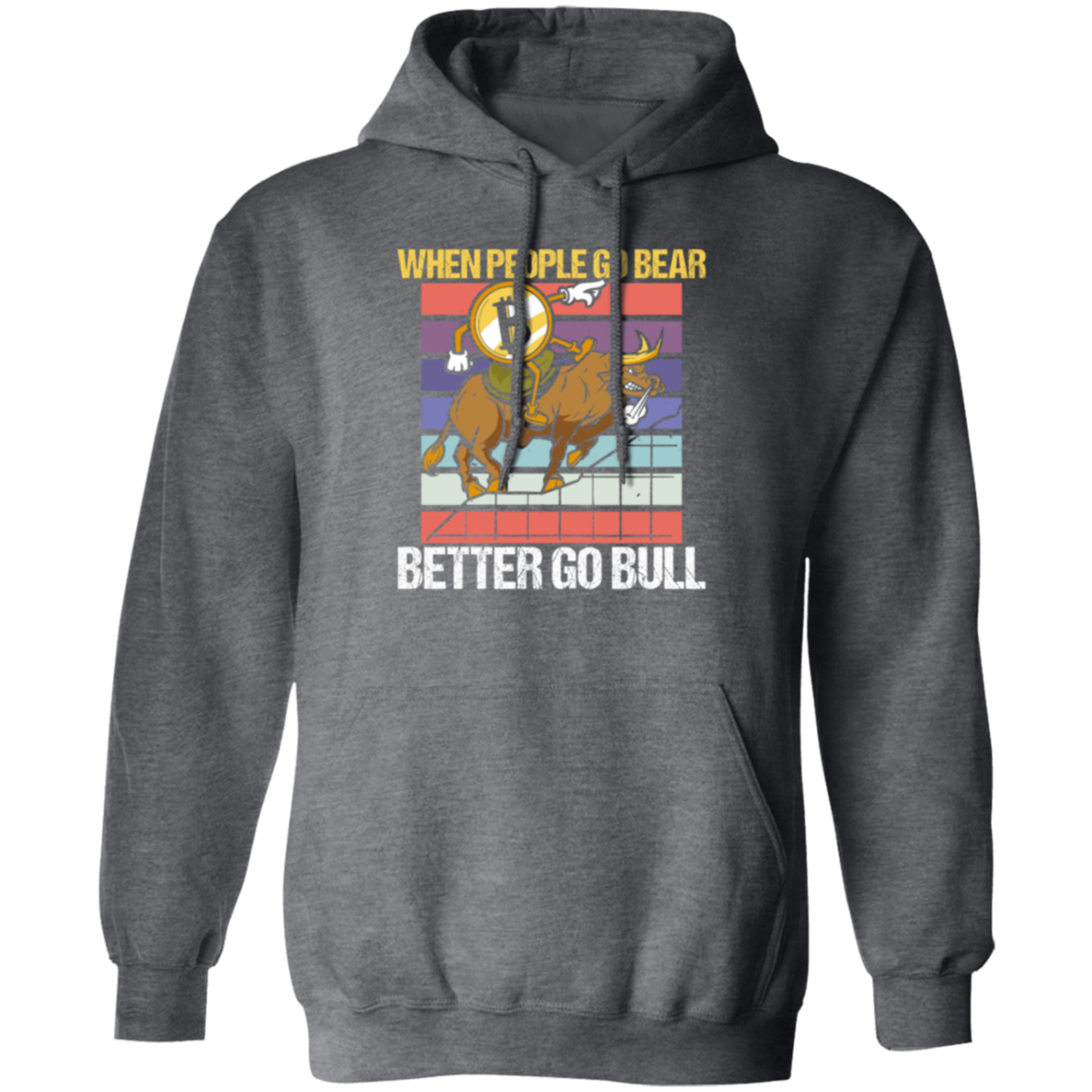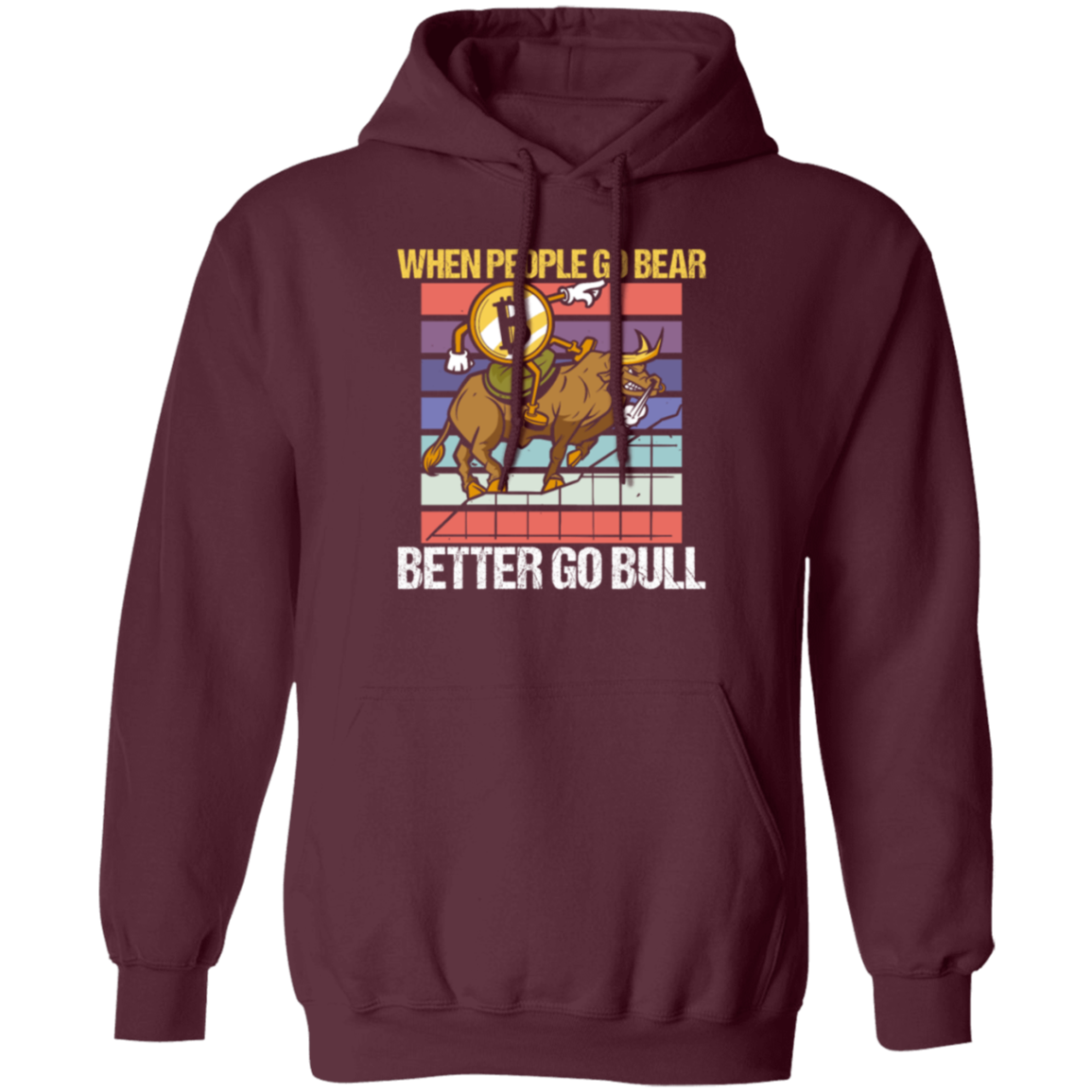 When People Go Bear Better Go Bull, Retro Bitcoin Gift, Love Bull Pullover Hoodie
