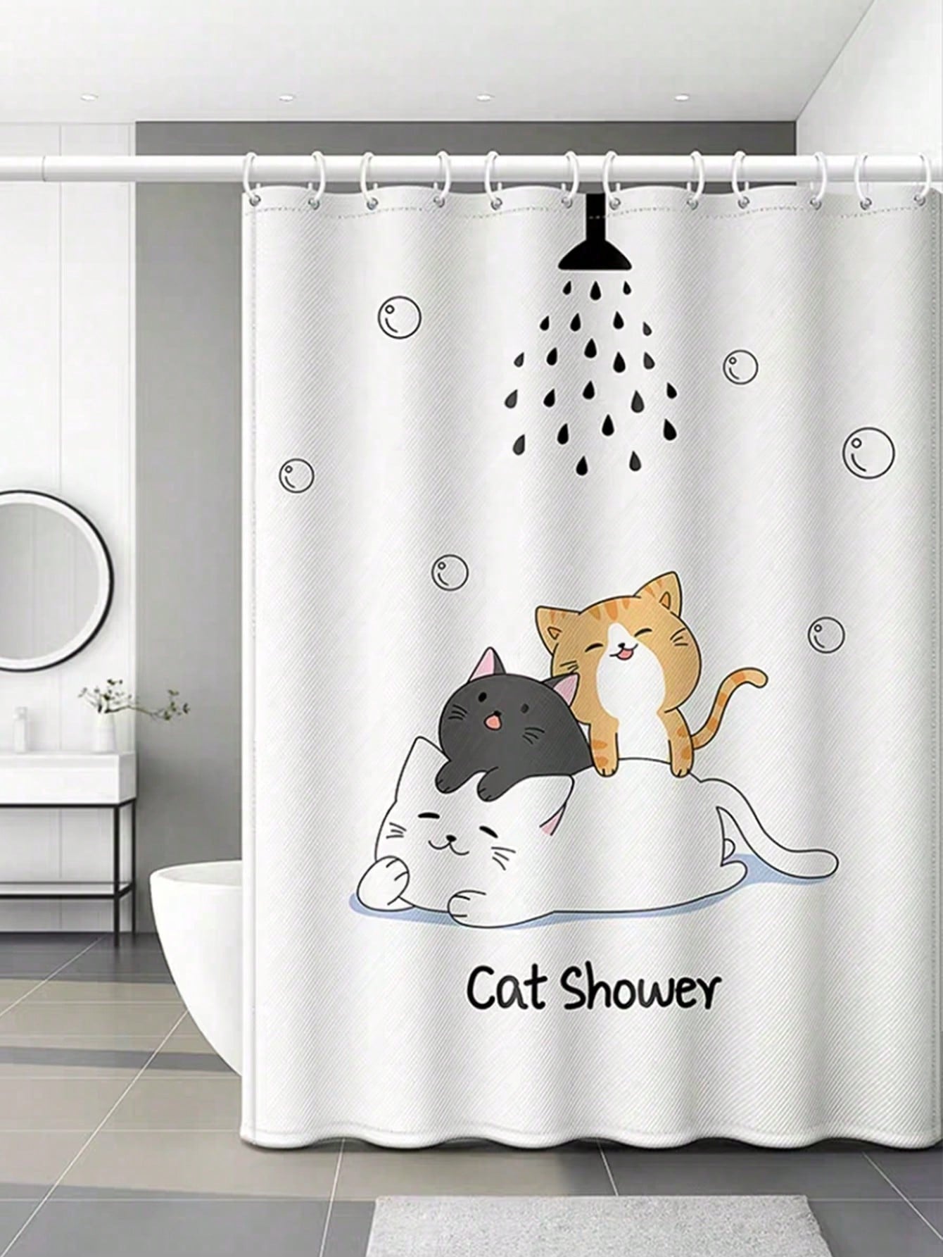 Whimsical Cat Shower Curtain - Waterproof & Mildew Resistant Floral Design for Fun Bathroom Vibes