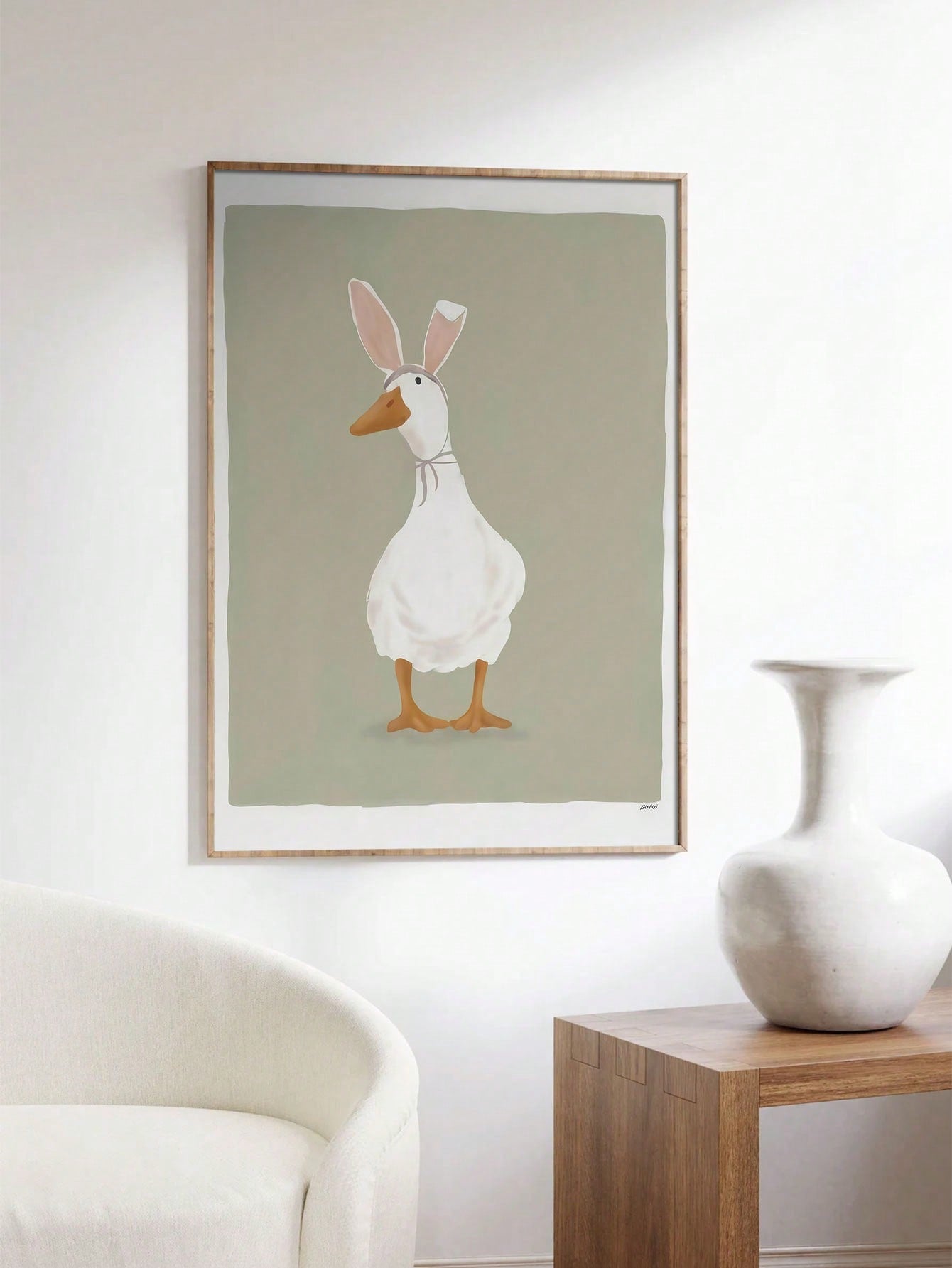 Whimsical Easter Duck with Bunny Ears: Vintage Unframed Canvas Wall Art