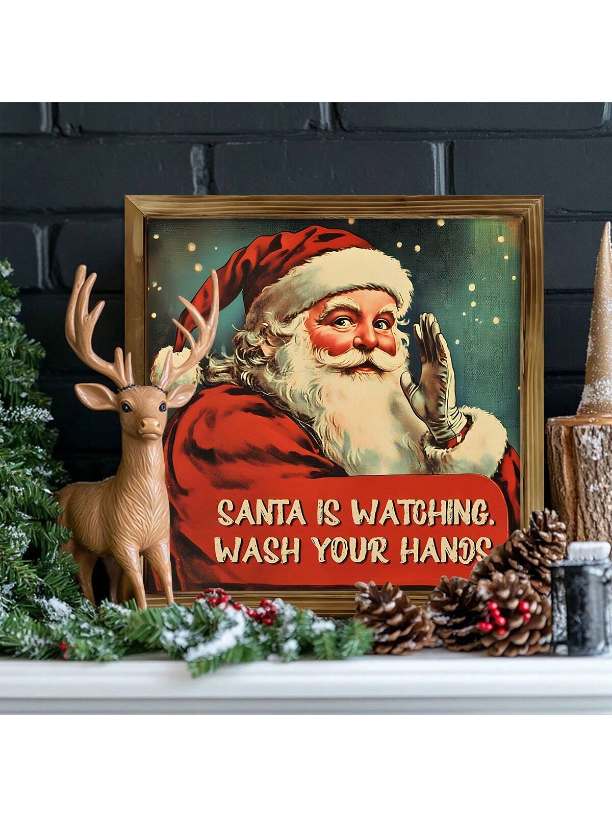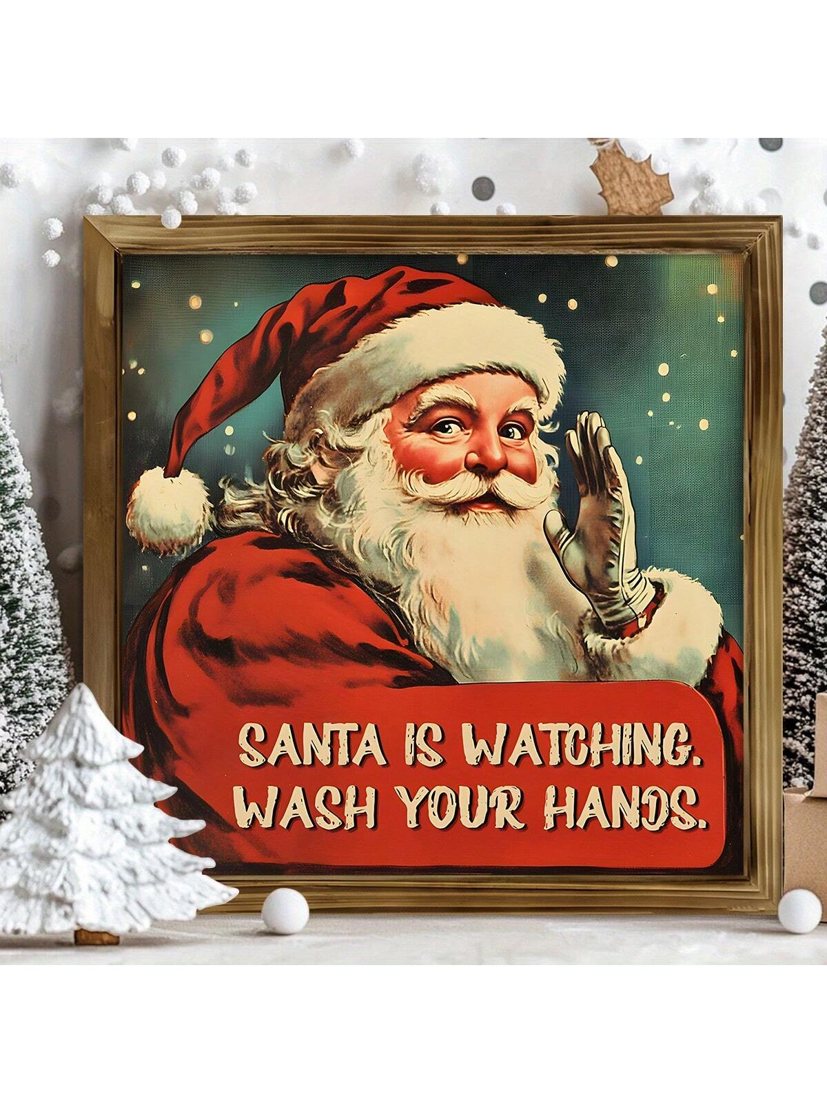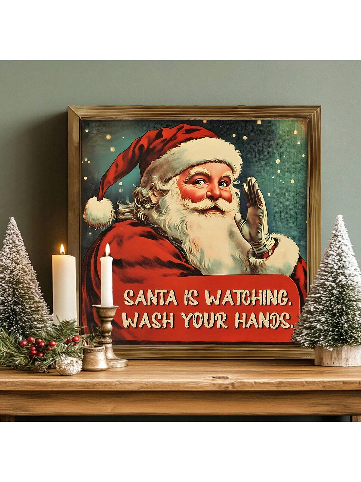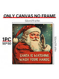 Whimsical Santa's Watch: Rustic Canvas Wall Art for Holiday Cheer