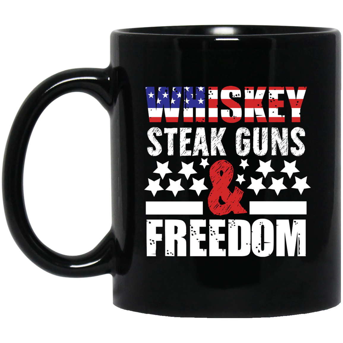 Whiskey Steak Guns And Freedom, American Whiskey Black Mug