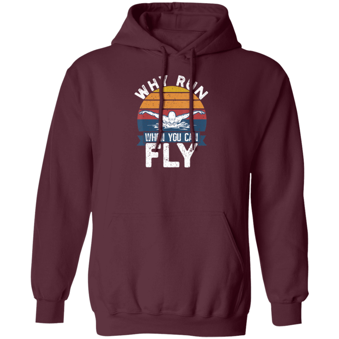Why Run When You Can Fly, Fly Under Water, Retro Swim Love Gift Pullover Hoodie