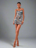 Wild & Glamorous: Leopard Double Chain Strap Bodycon Dress