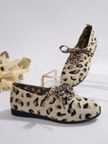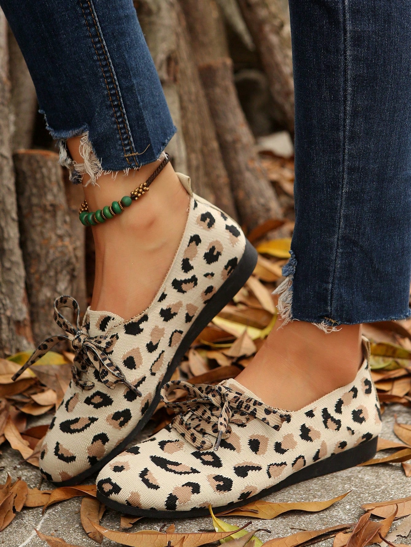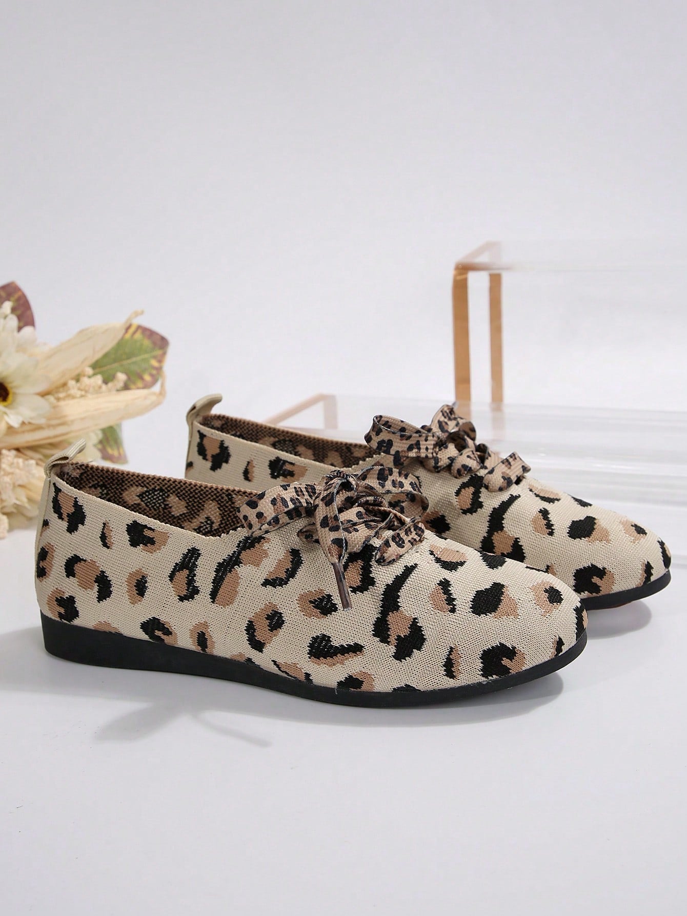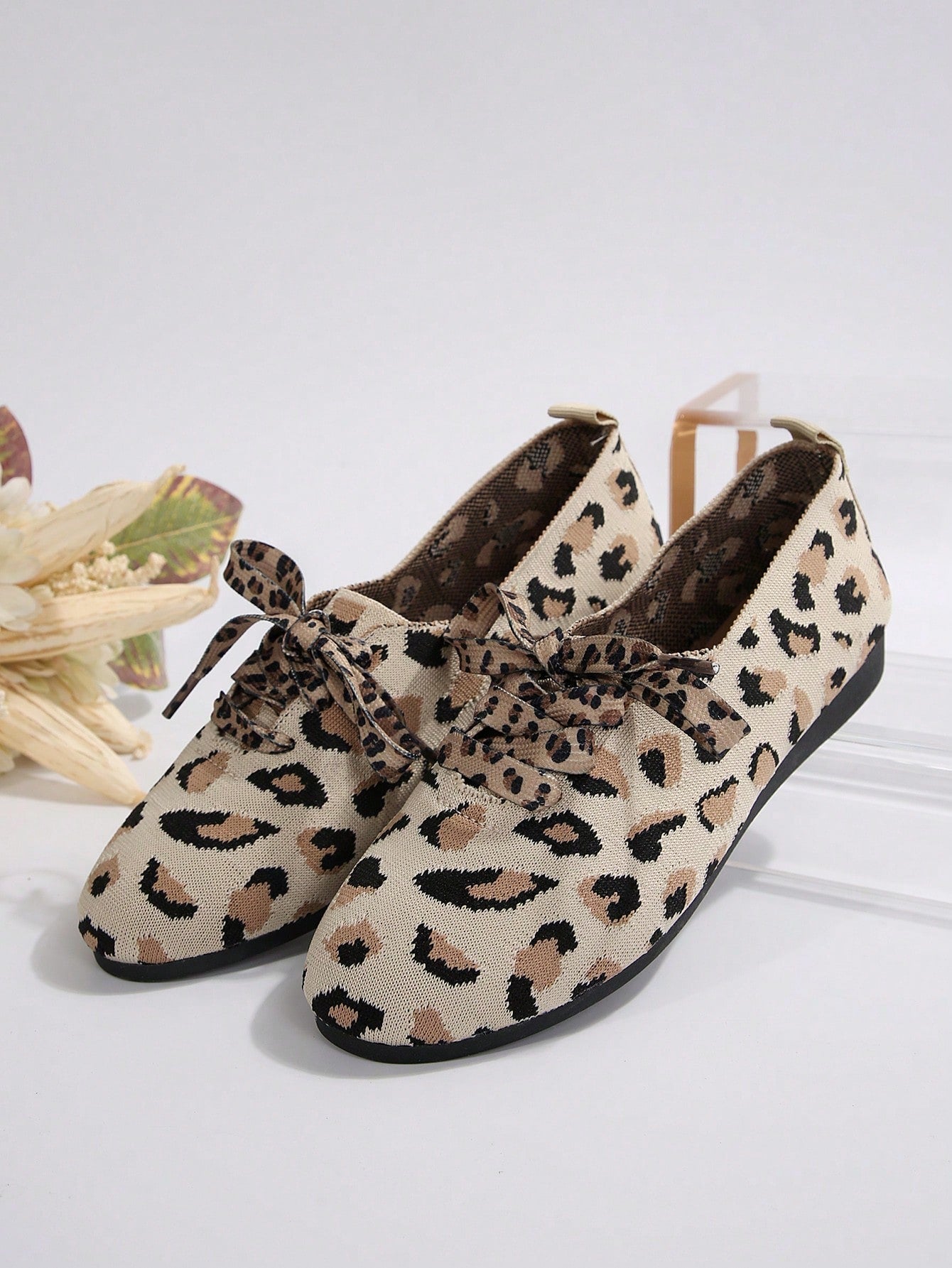 Wildly Chic: Leopard Print Flat Lace-Up Shoes for Fashionable Women