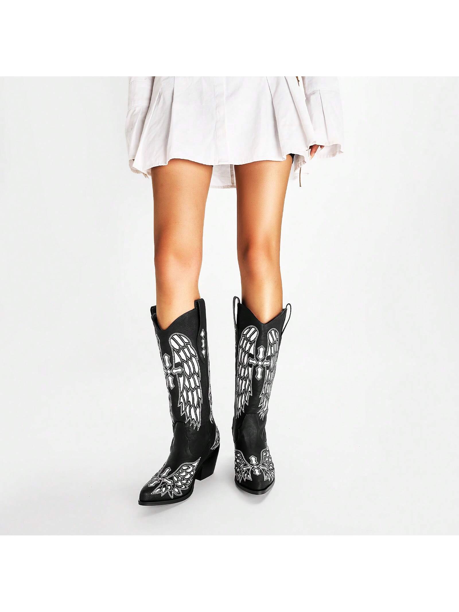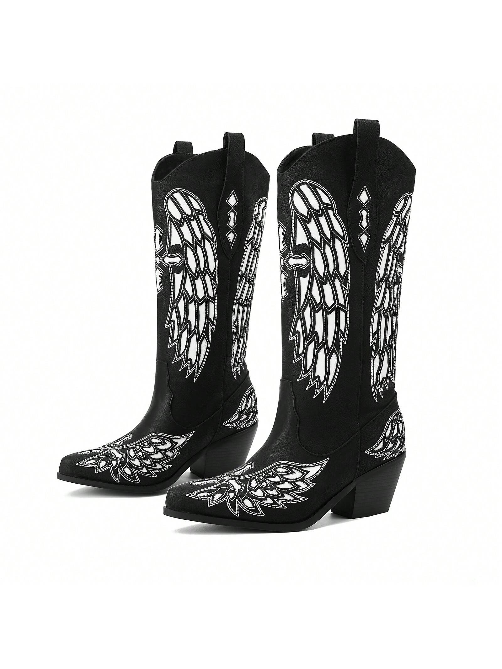 Wings of the West: Vintage Cowboy Boots for Women with a Chunky Heel and Wide Calf
