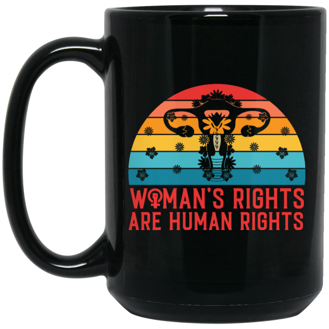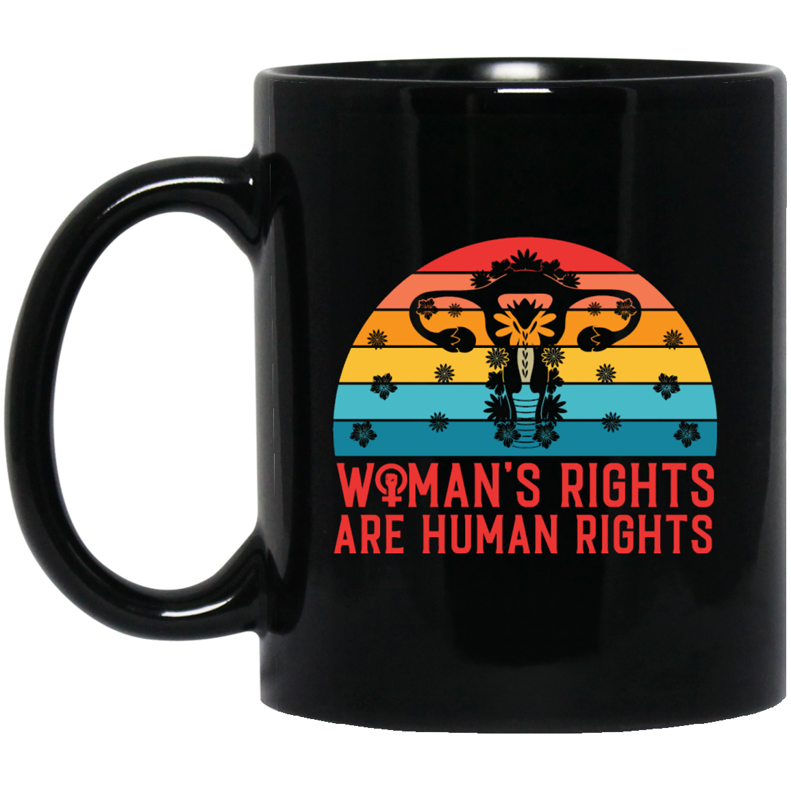 Woman's Rights Are Human Rights, Retro Woman Holiday Black Mug