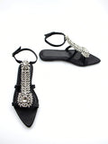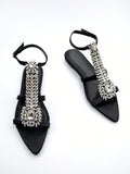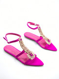 Women's Chic Rhinestone Party Flat Sandals with Chain Buckle Decoration