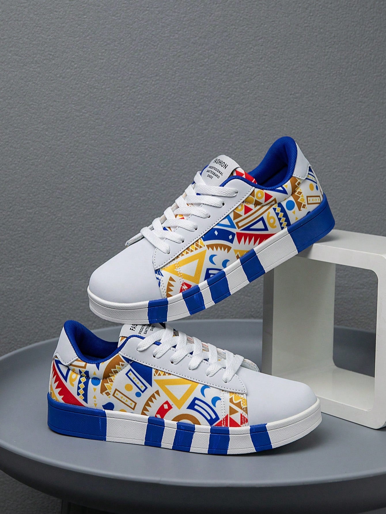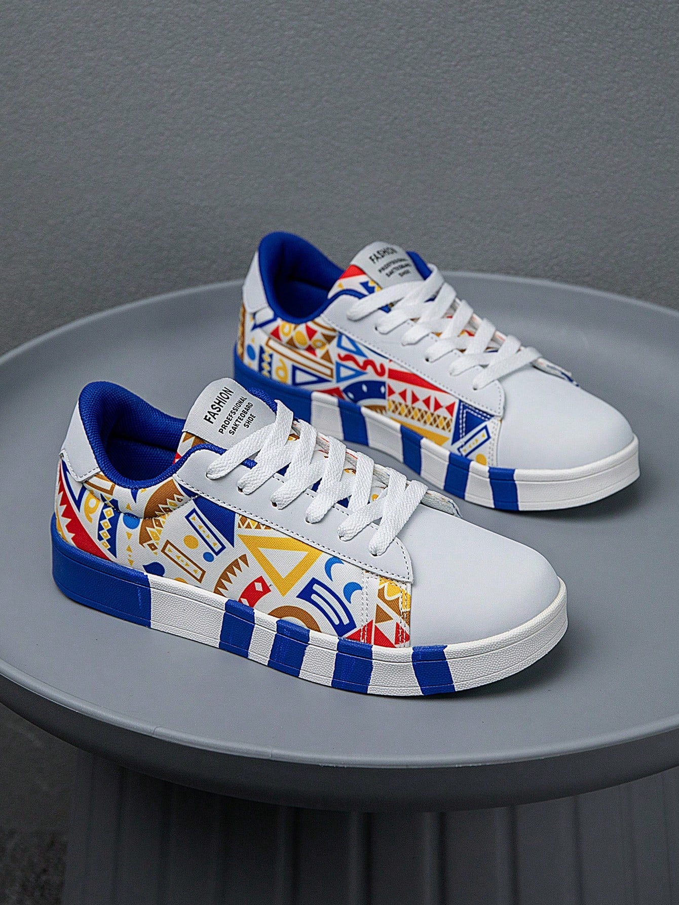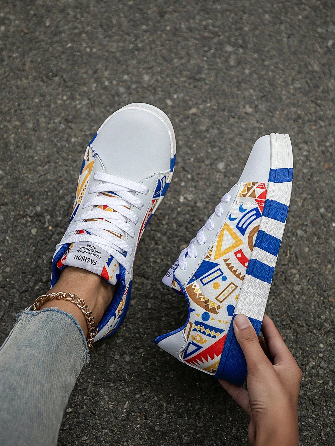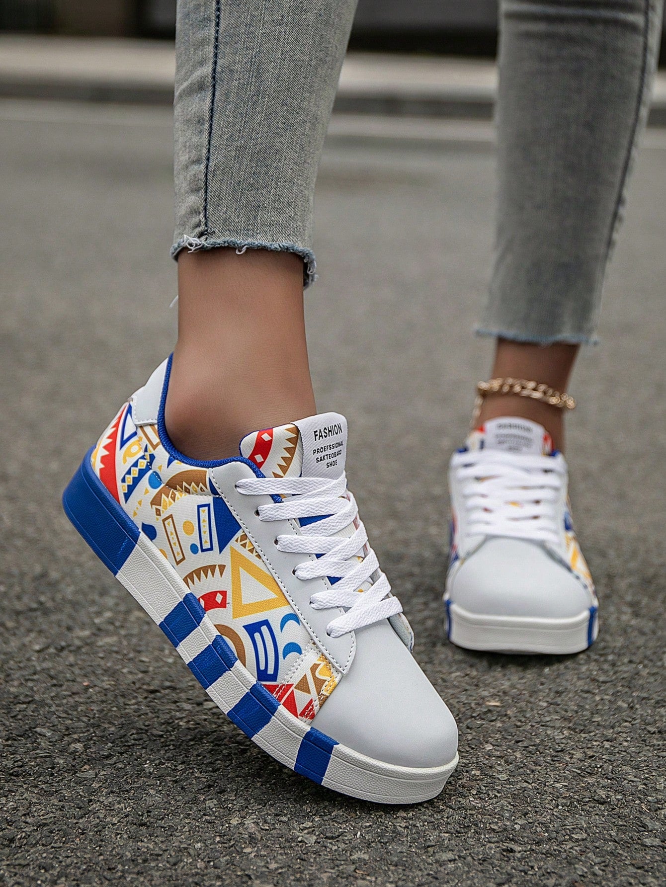Women's Colorblock Graffiti Lace Up Sneakers: Fashionable, Trendy, and Lightweight