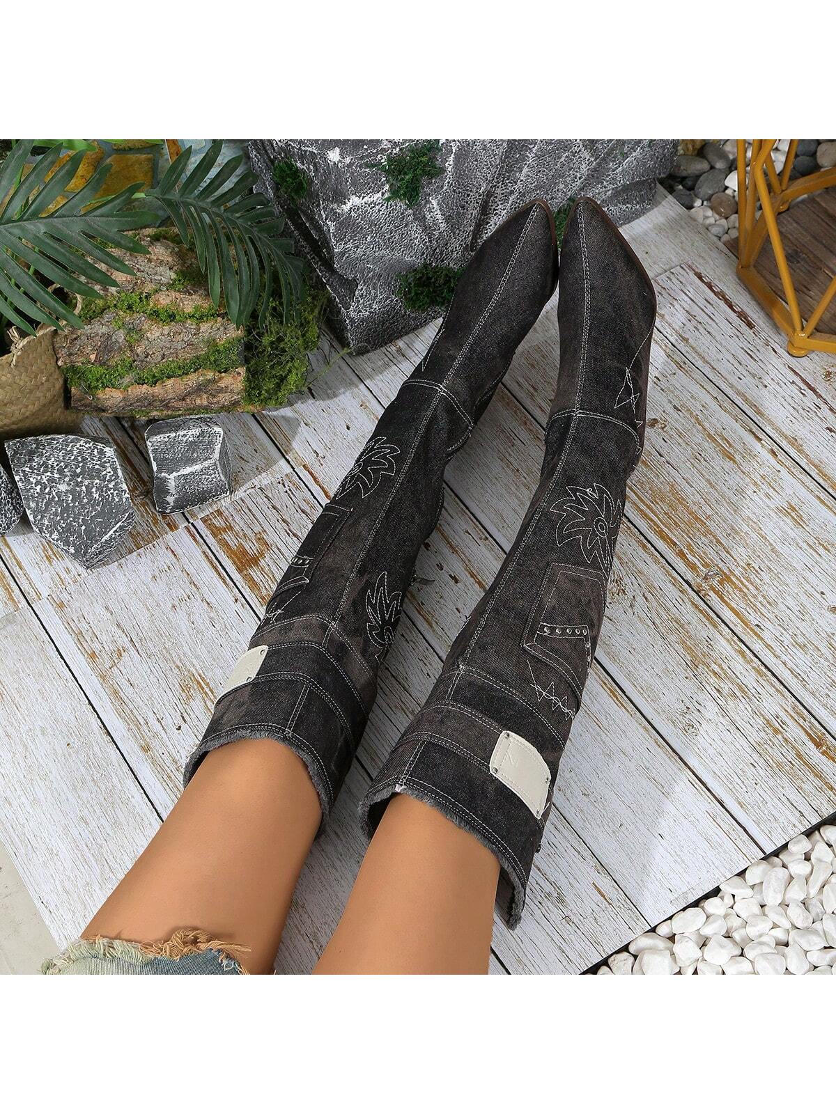 Enhance your style with our Women's Elegant Embroidered Silver Sequins Over-The-Knee Boots. These trendy and sexy boots feature elegant embroidery and shimmering sequins, elevating any outfit. Their over-the-knee length adds a touch of sophistication while still making a statement. Step out in confidence and make a fashion statement with these boots.